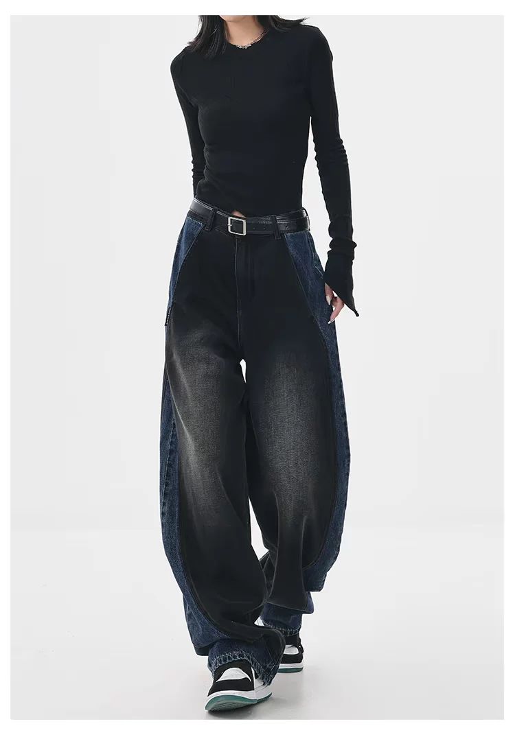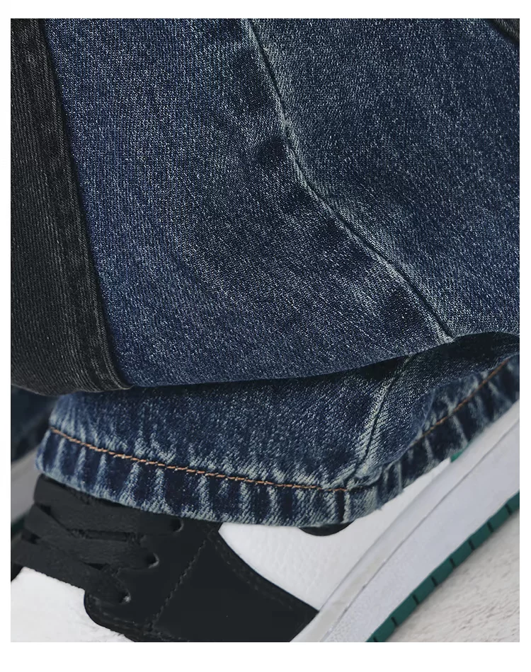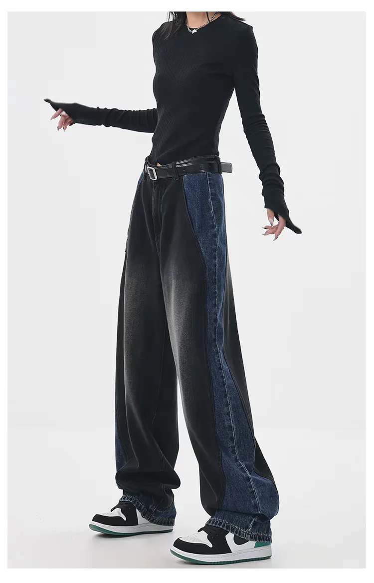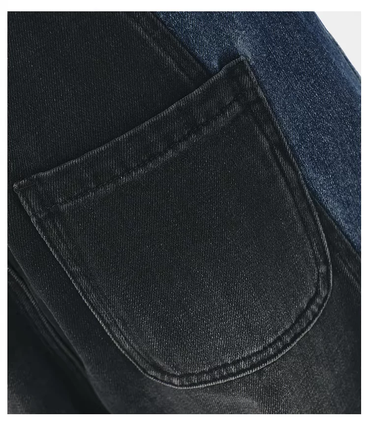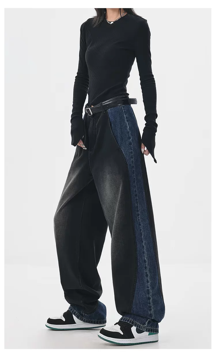 - KEN STUDIO quần jean chắp vá màu sắc cổ điển mới mùa thu đông dành cho nữ, quần ống rộng cạp cao giúp thon gọn.