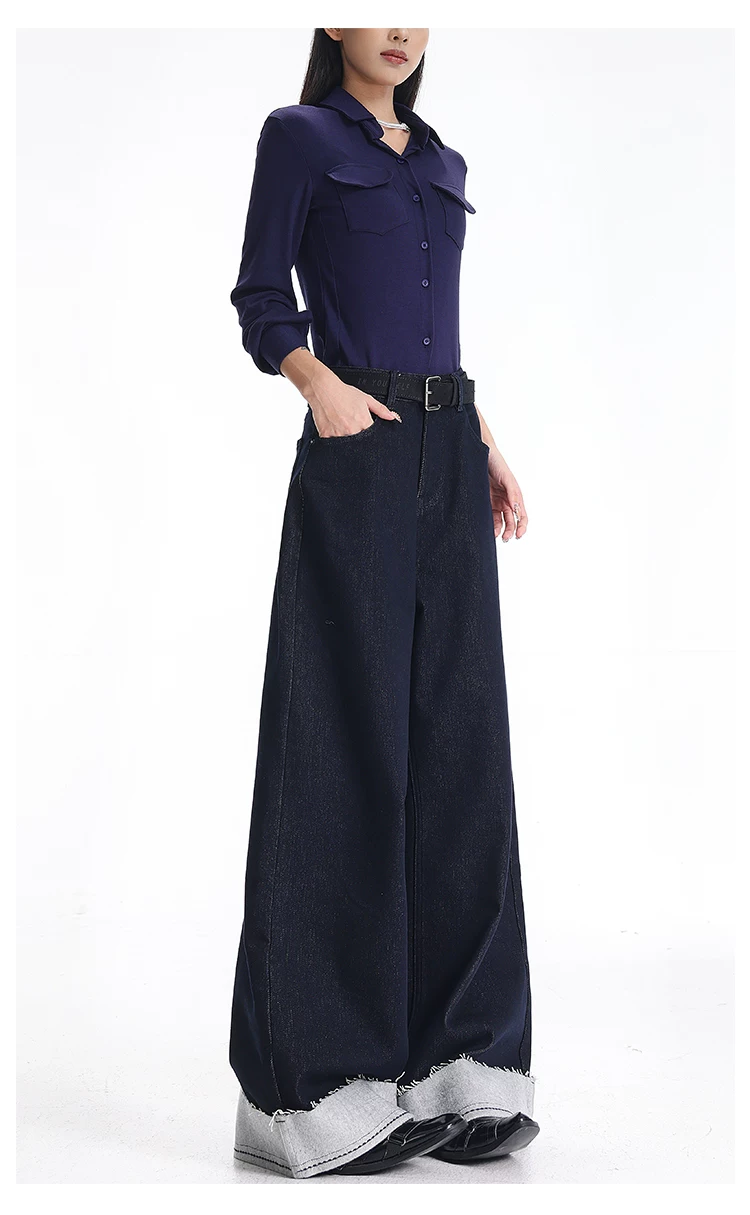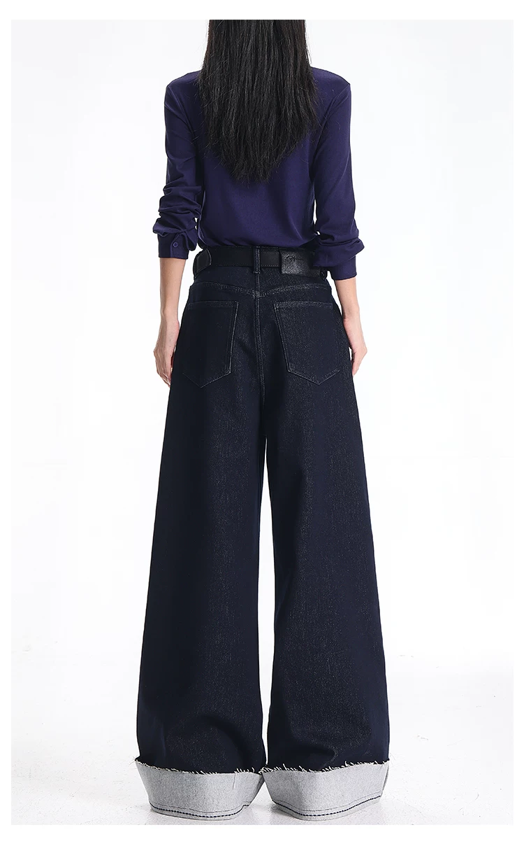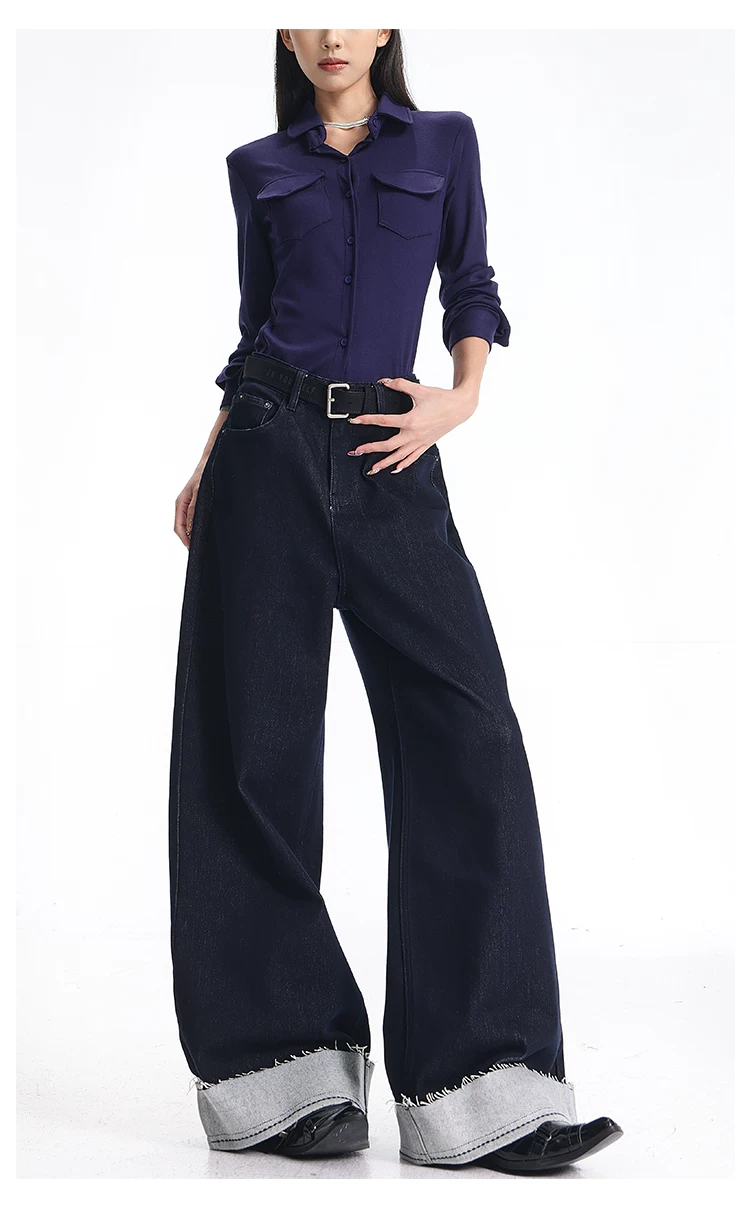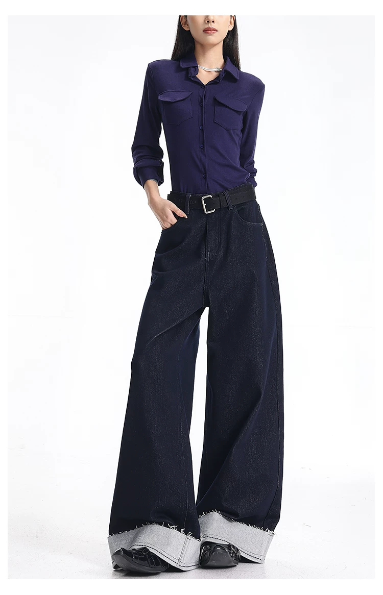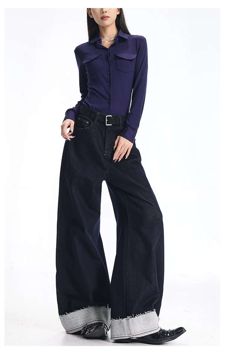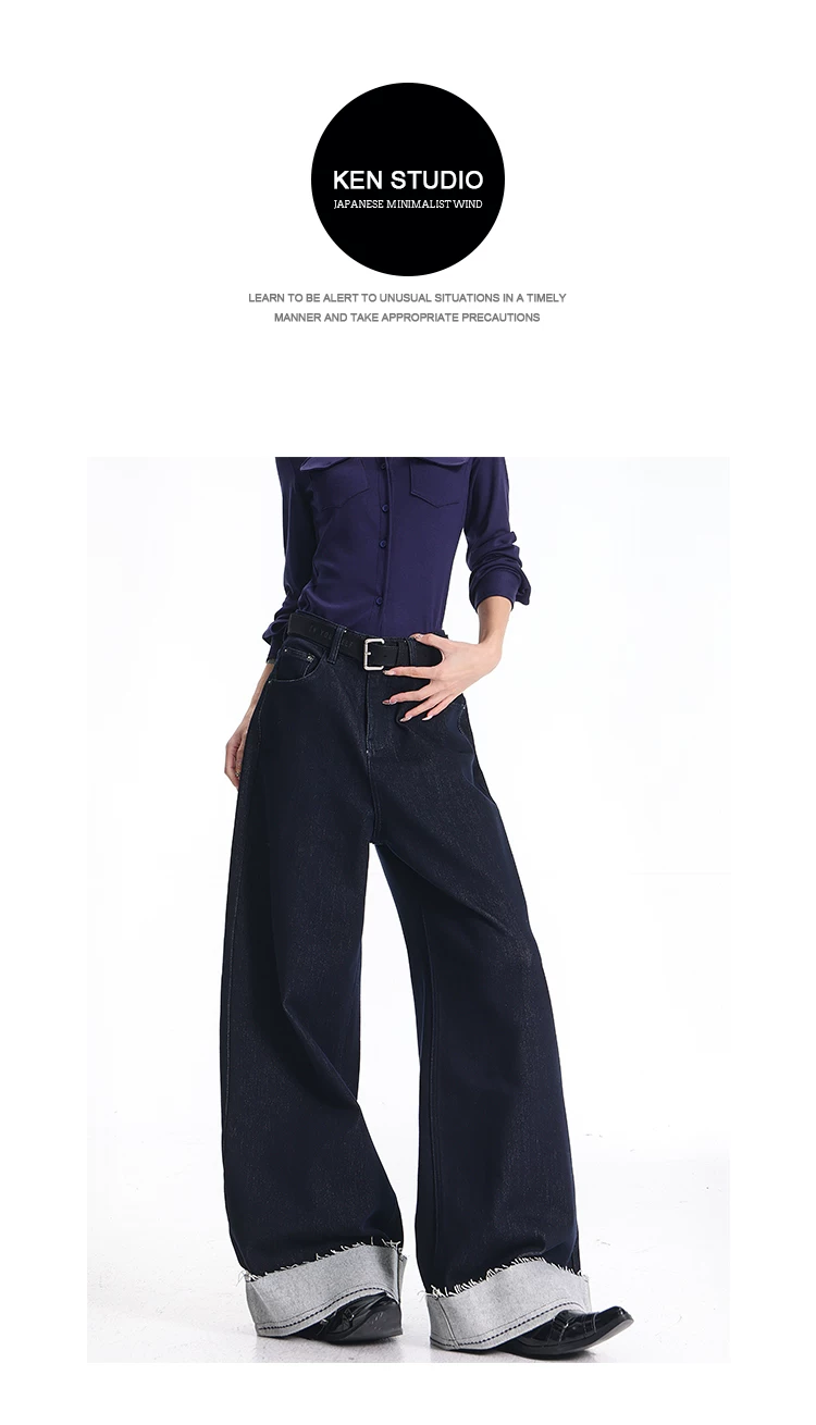 - KEN STUDIO quần jean cổ điển có lót lông cừu phong cách mới mùa thu đông dành cho nữ, quần ống rộng lưng cao dáng thẳng