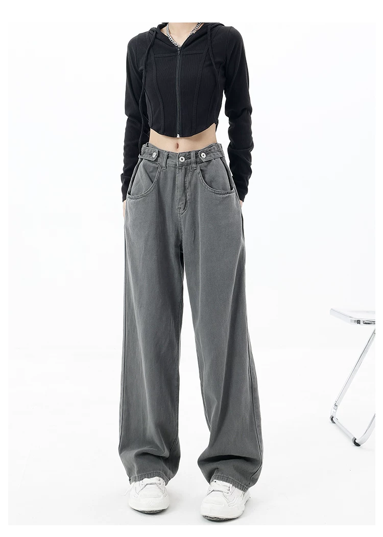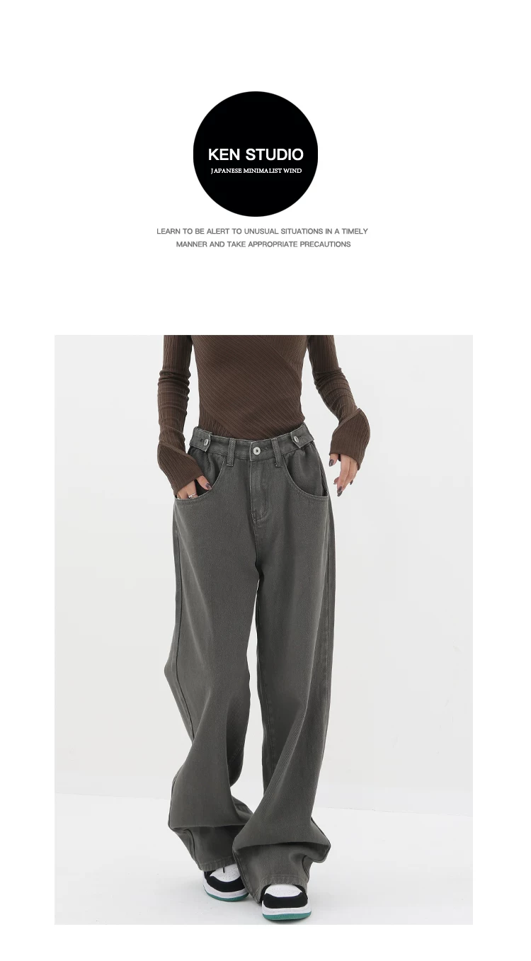 - KEN STUDIO Quần jean cổ điển lót lông mùa thu đông dành cho nữ, quần ống rộng lưng thấp, quần ống rộng, quần thường ngày.