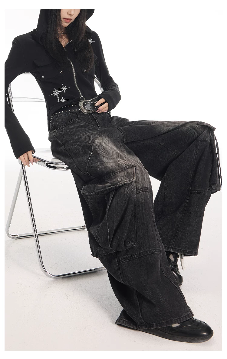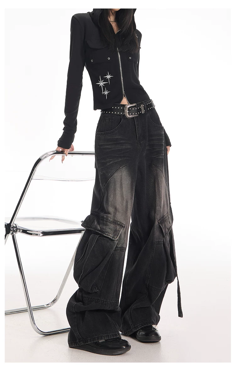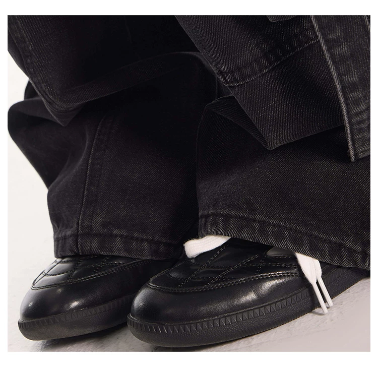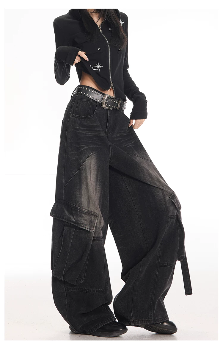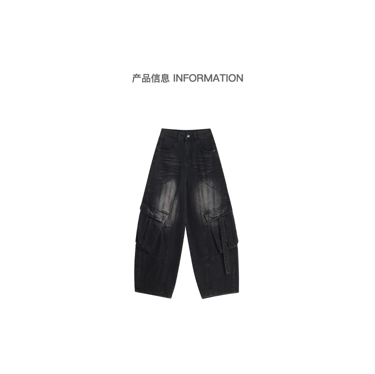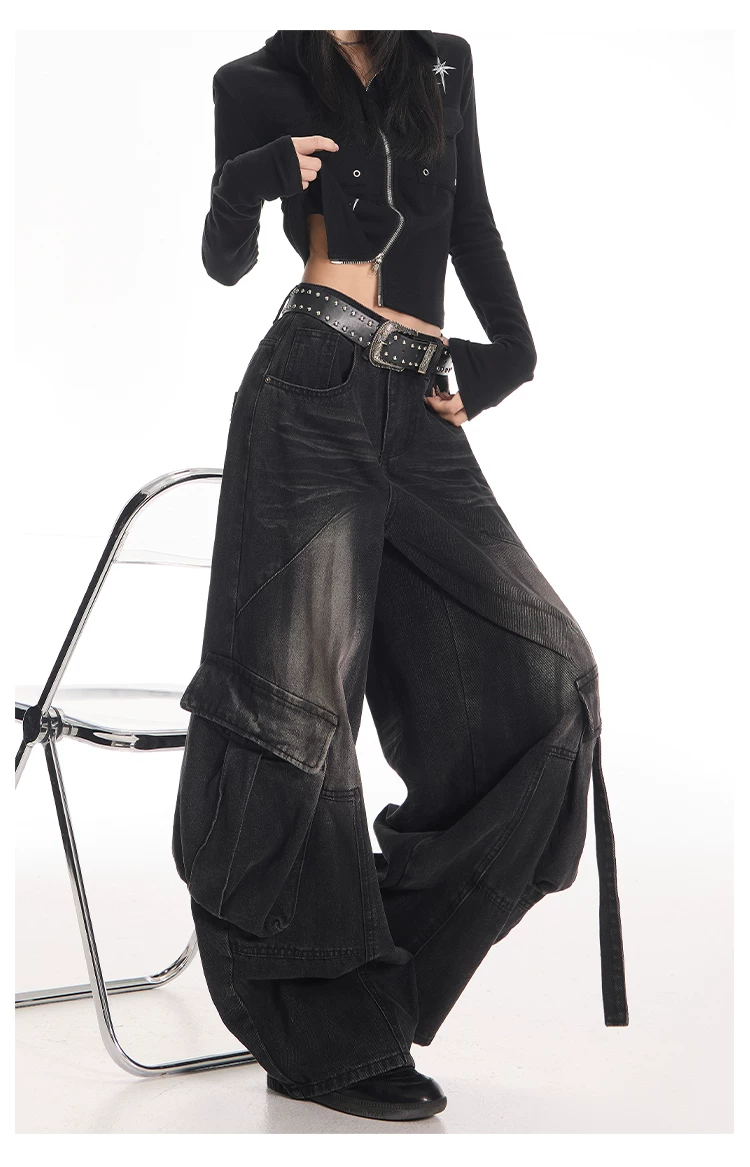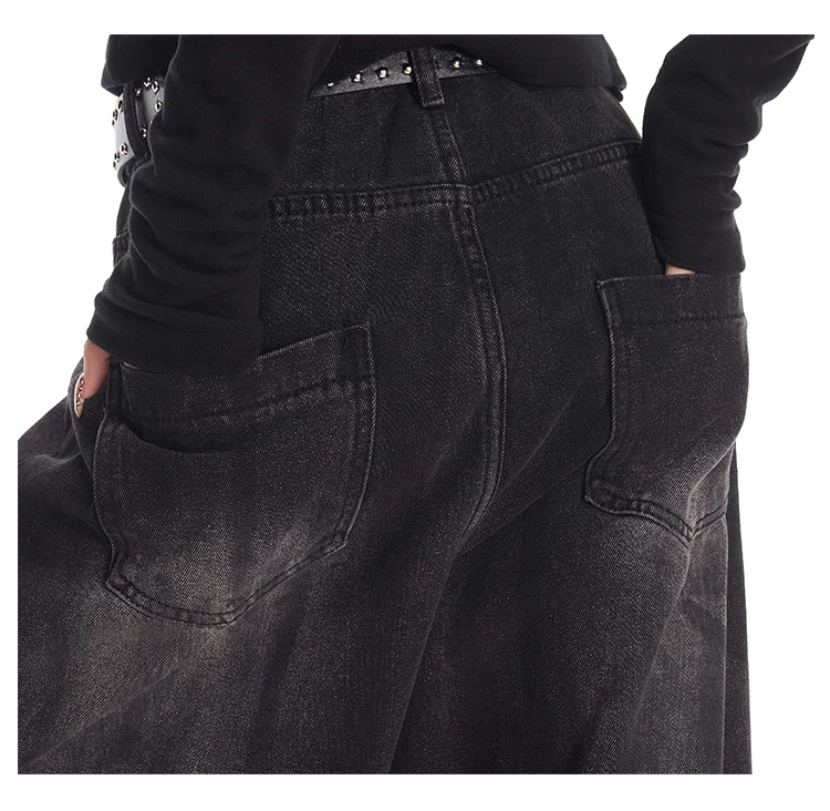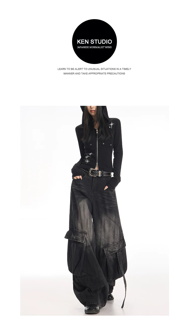 - KEN STUDIO Quần jean công sở kiểu Mỹ cổ điển, bền chắc, được xử lý làm cũ dành cho nữ, quần ống rộng dáng lửng mùa thu.