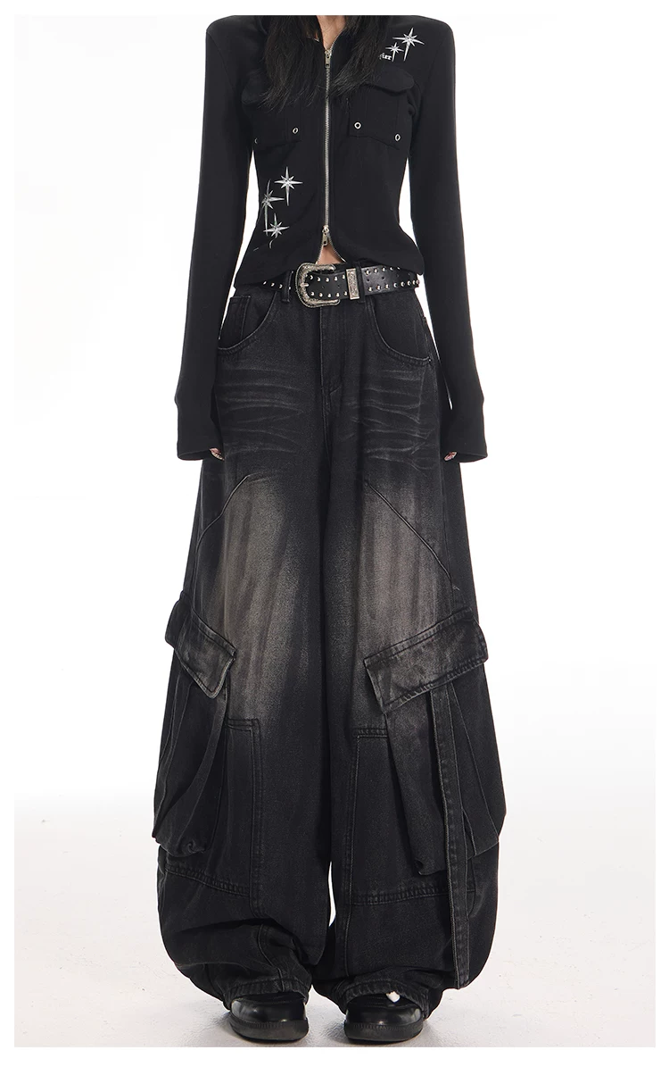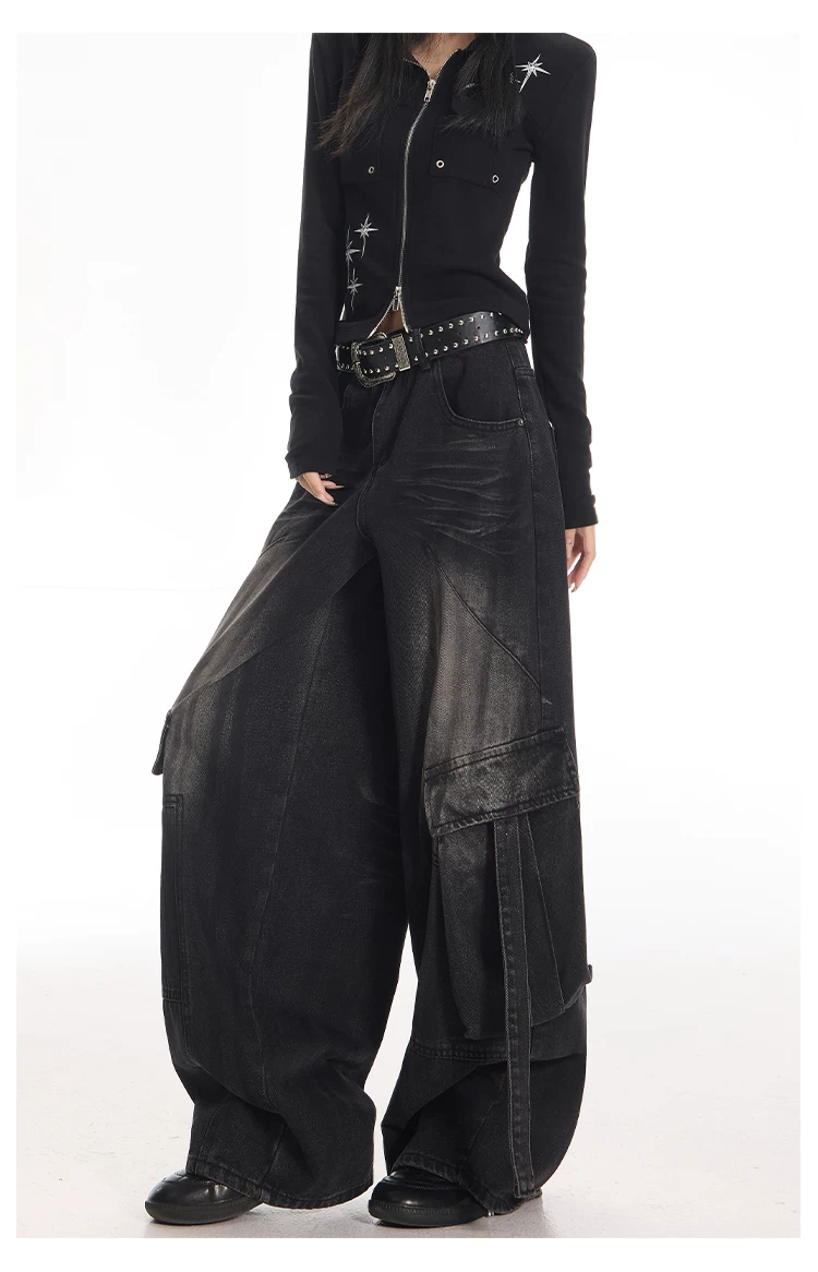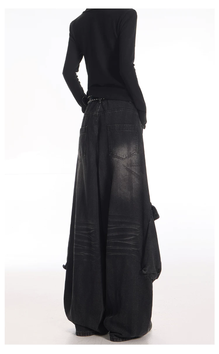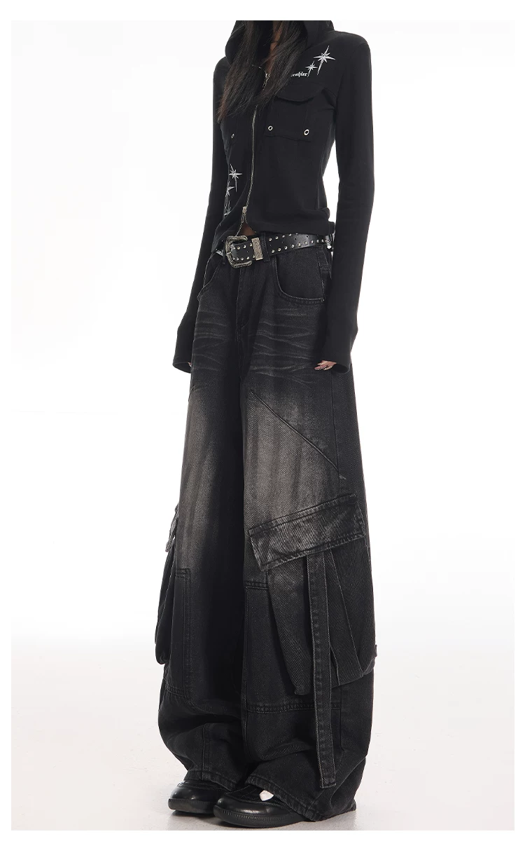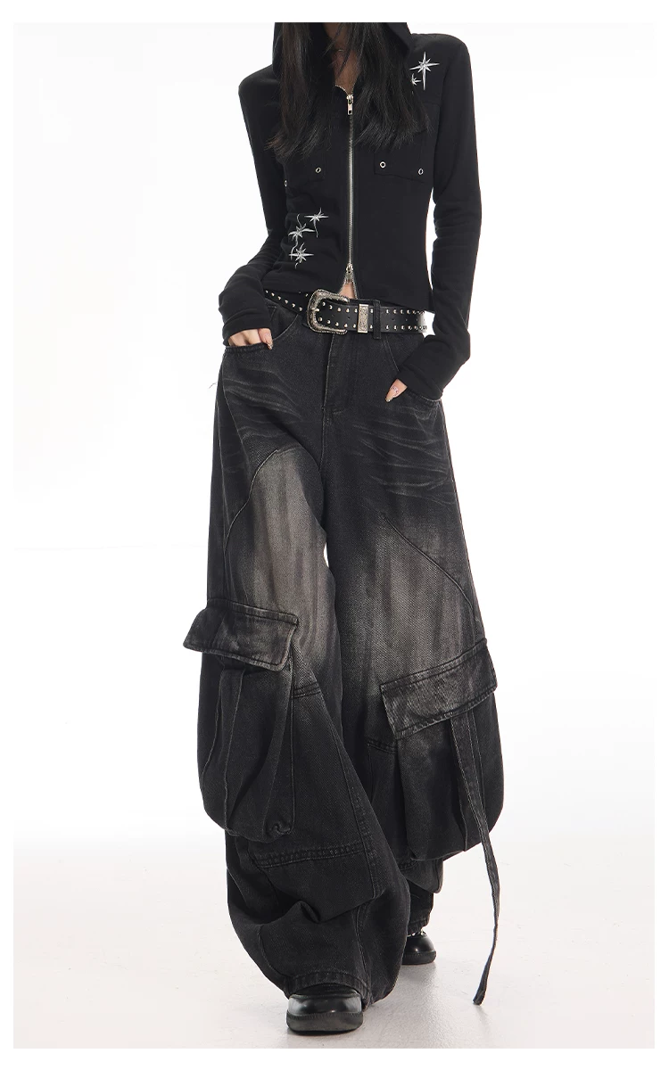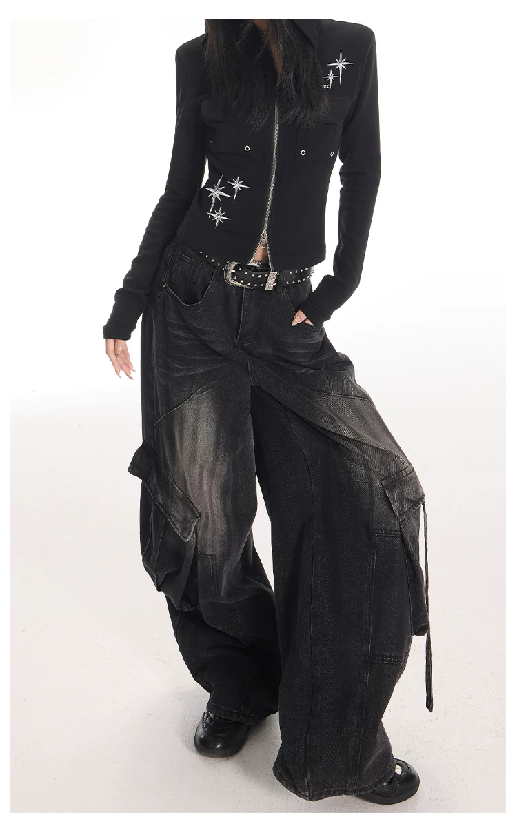 - KEN STUDIO Quần jean công sở kiểu Mỹ cổ điển, bền chắc, được xử lý làm cũ dành cho nữ, quần ống rộng dáng lửng mùa thu.