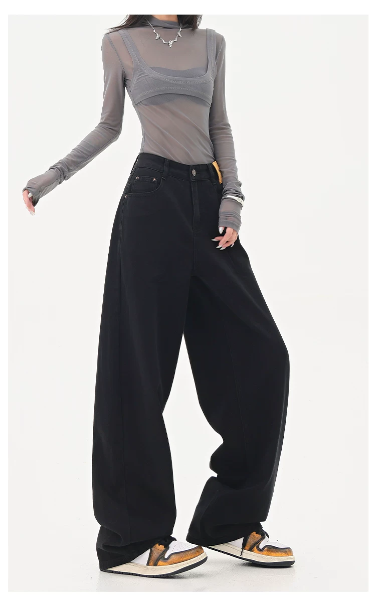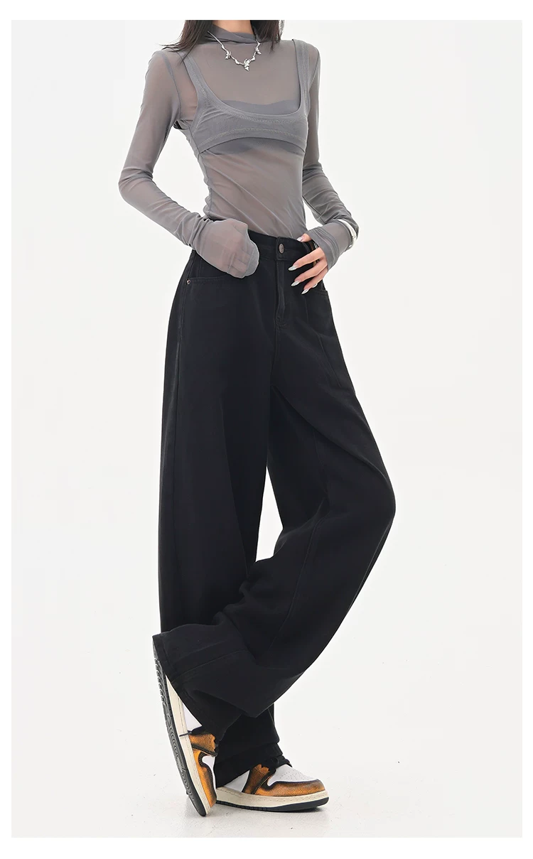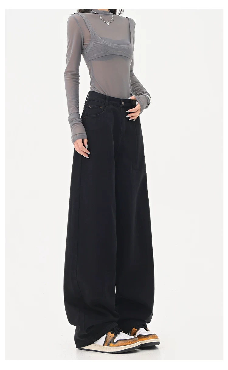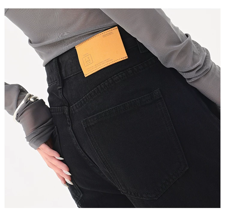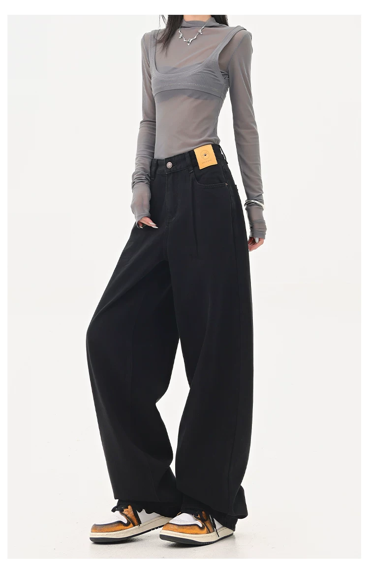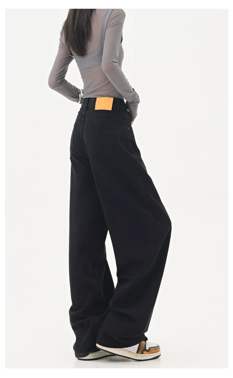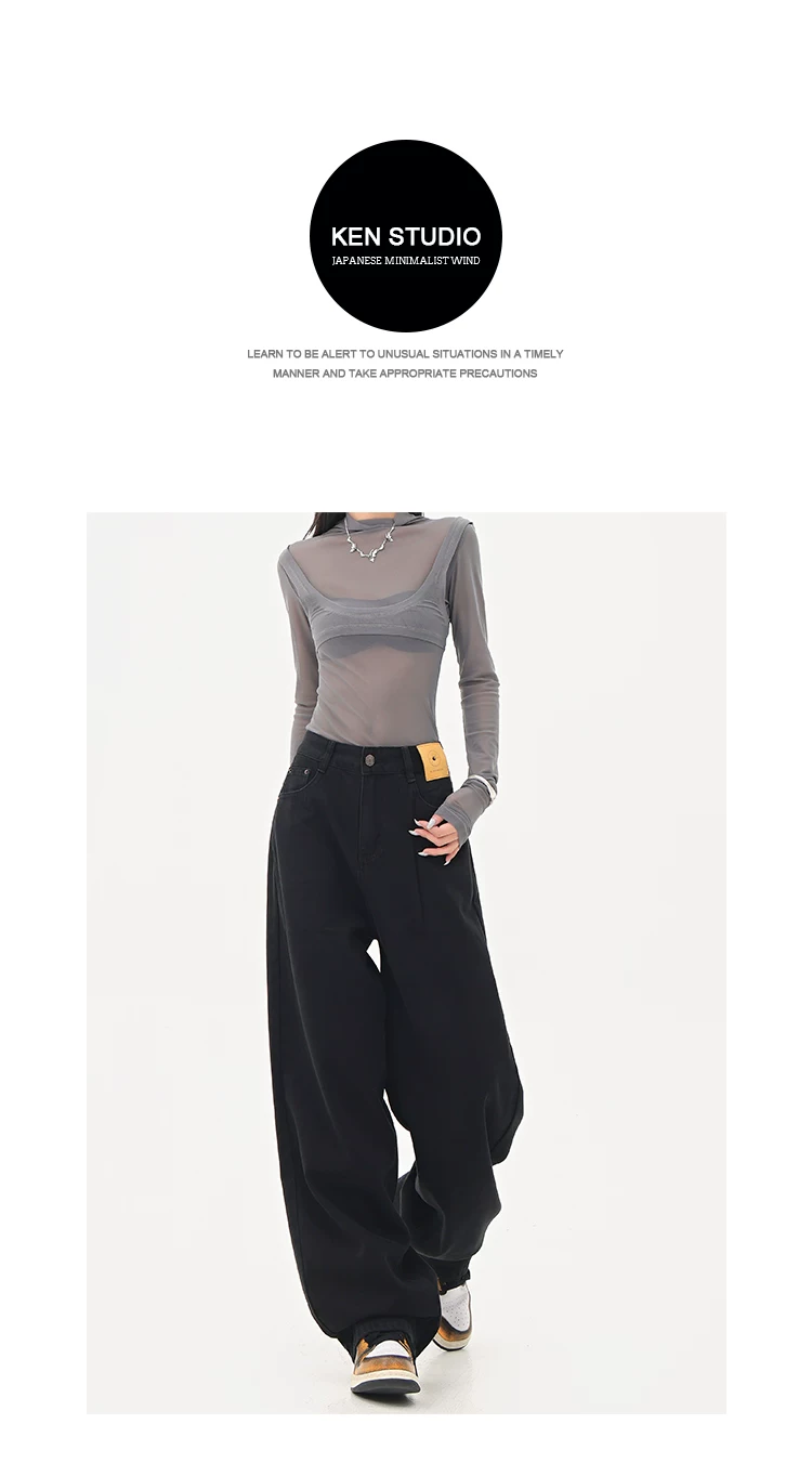 - KEN STUDIO Quần jean ống đứng màu đen phong cách Mỹ dành cho nữ, quần ống rộng dáng rộng mới mùa thu đông.