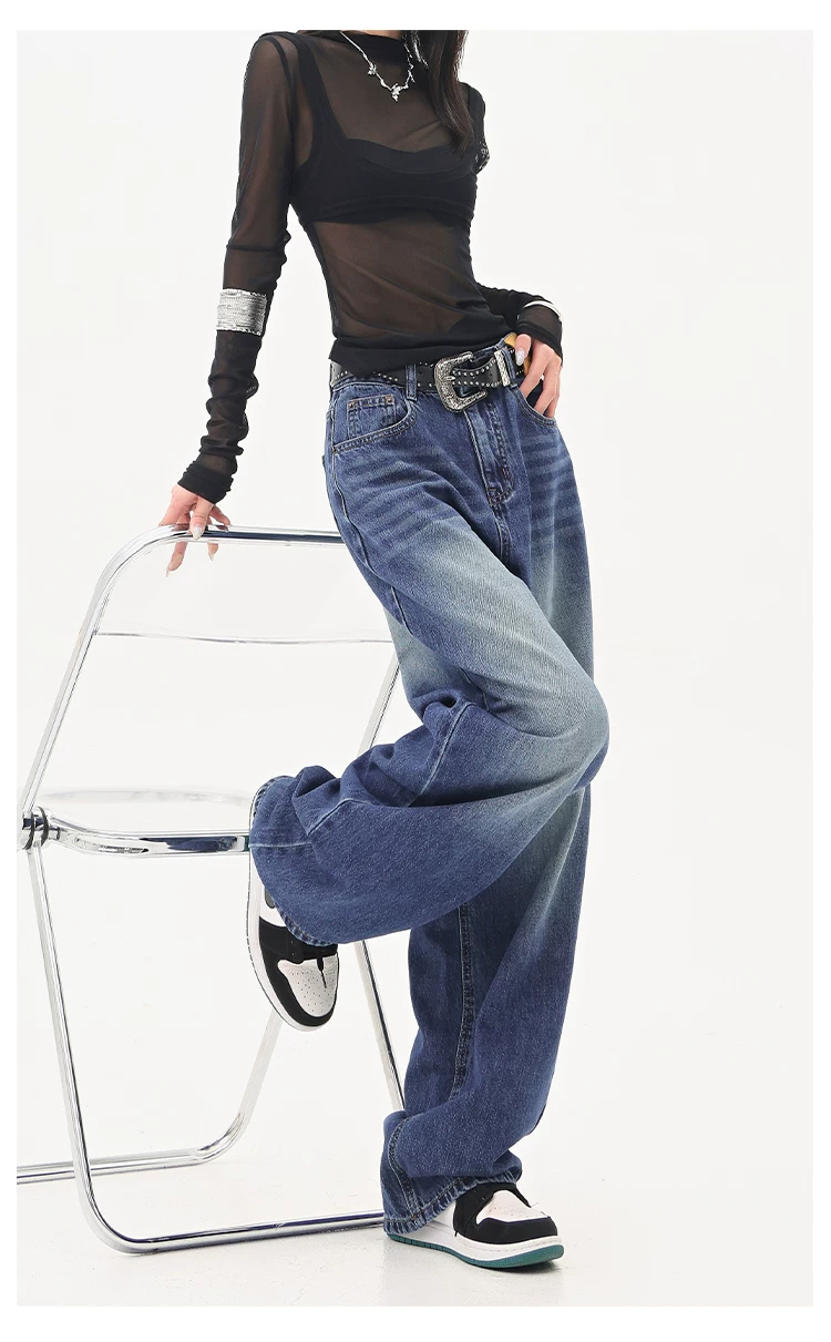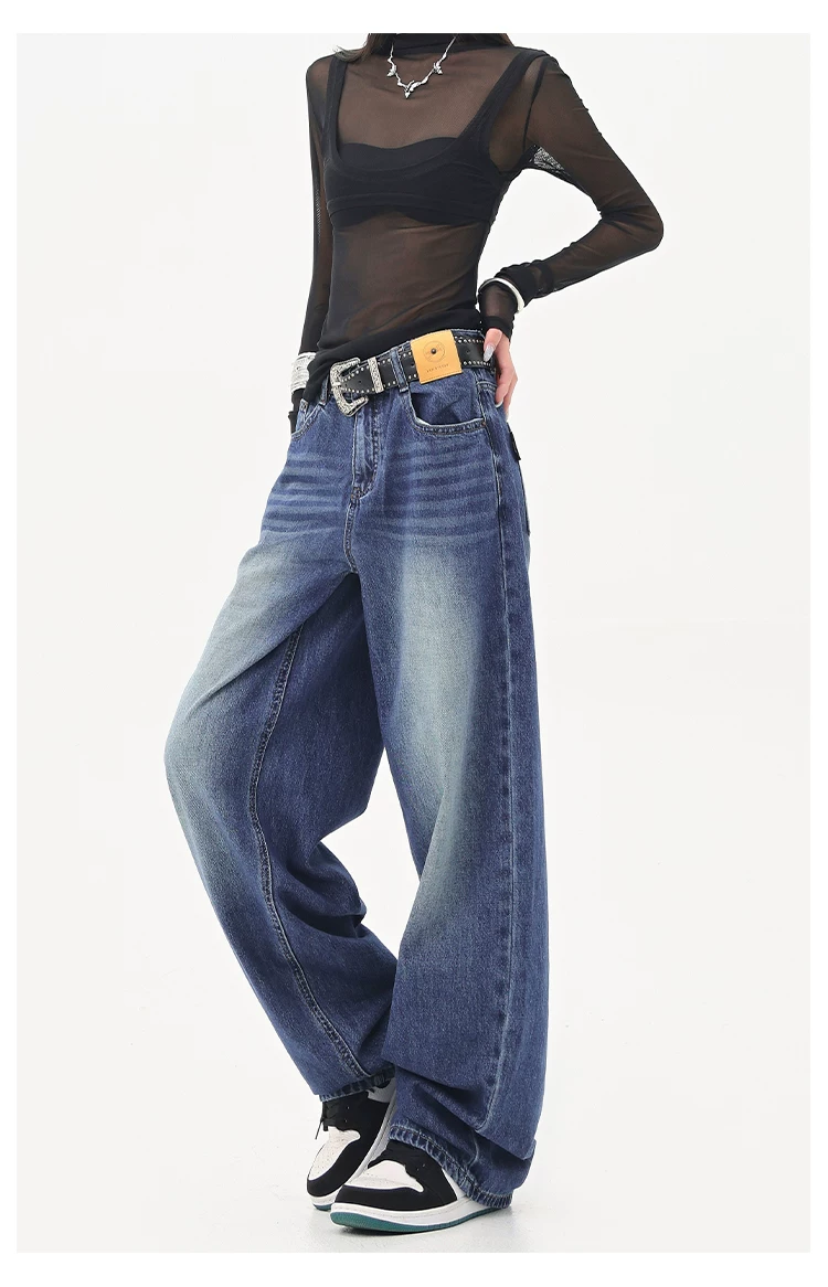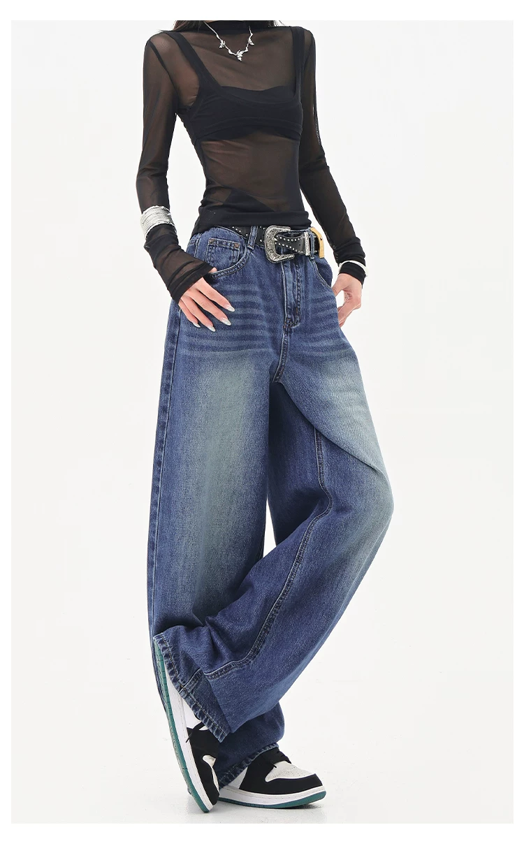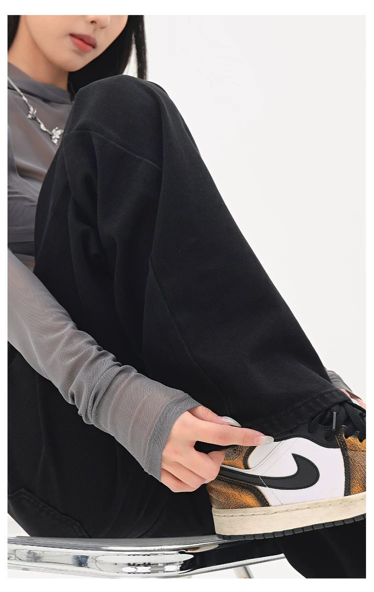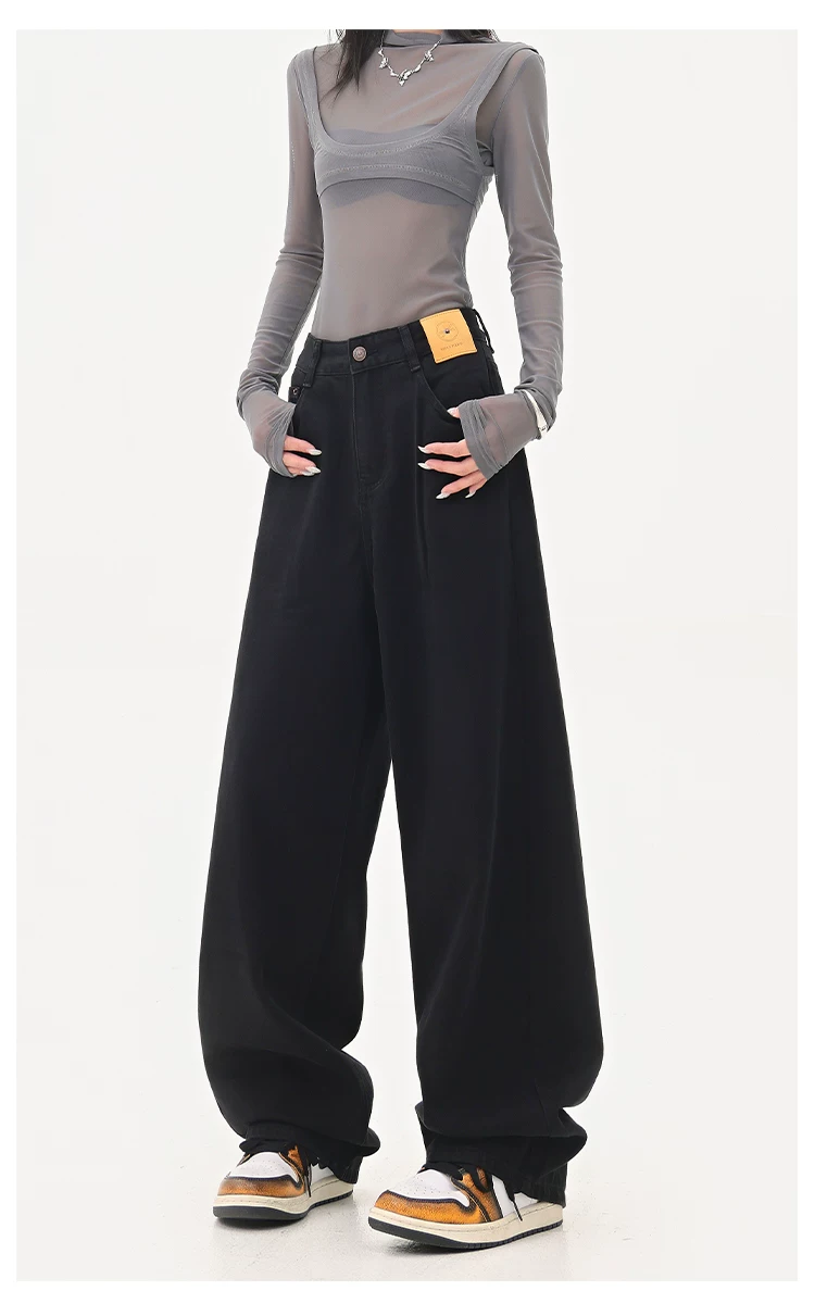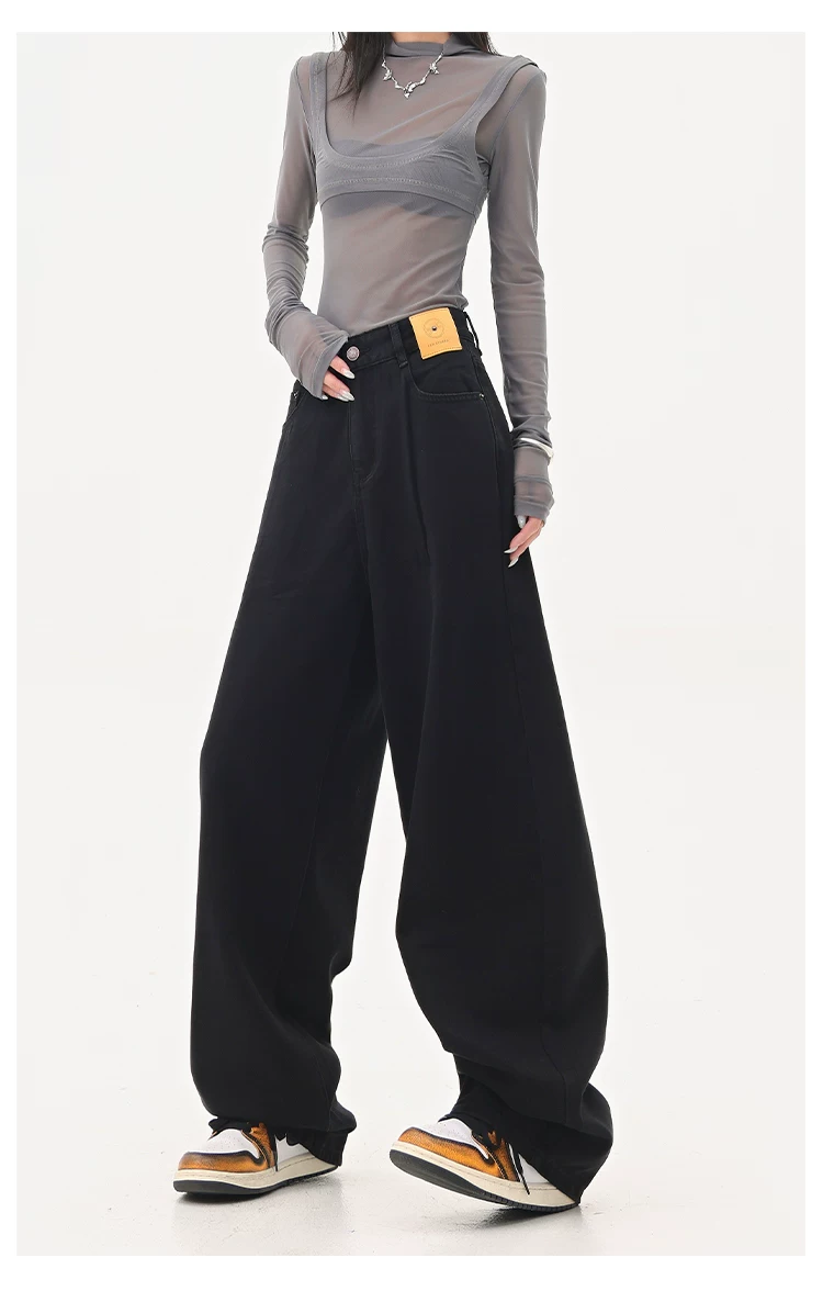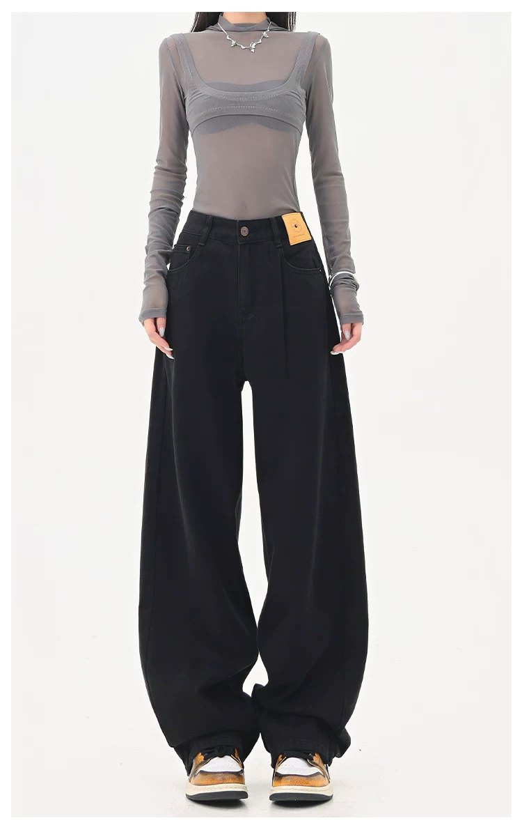 - KEN STUDIO Quần jean ống đứng màu đen phong cách Mỹ dành cho nữ, quần ống rộng dáng rộng mới mùa thu đông.