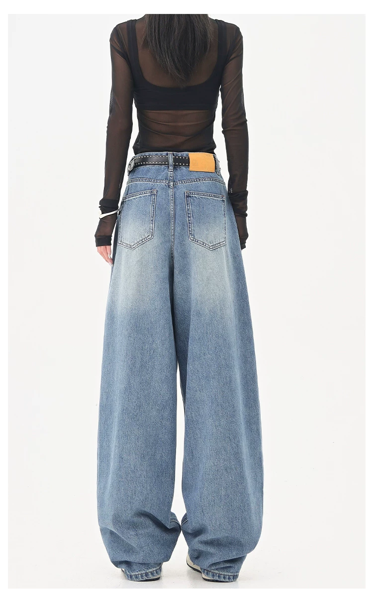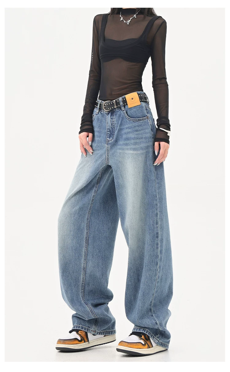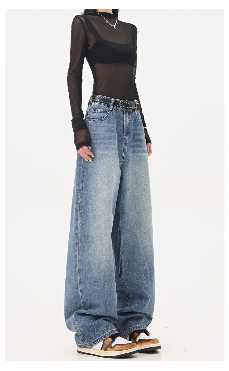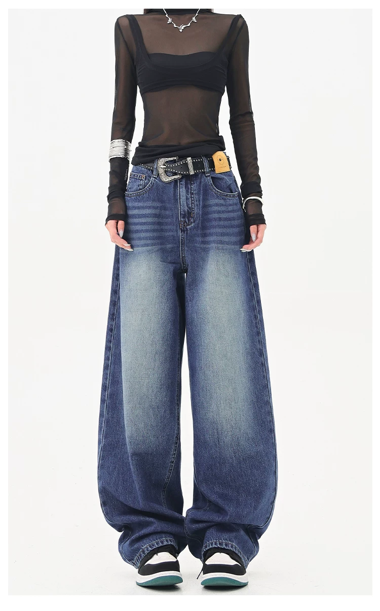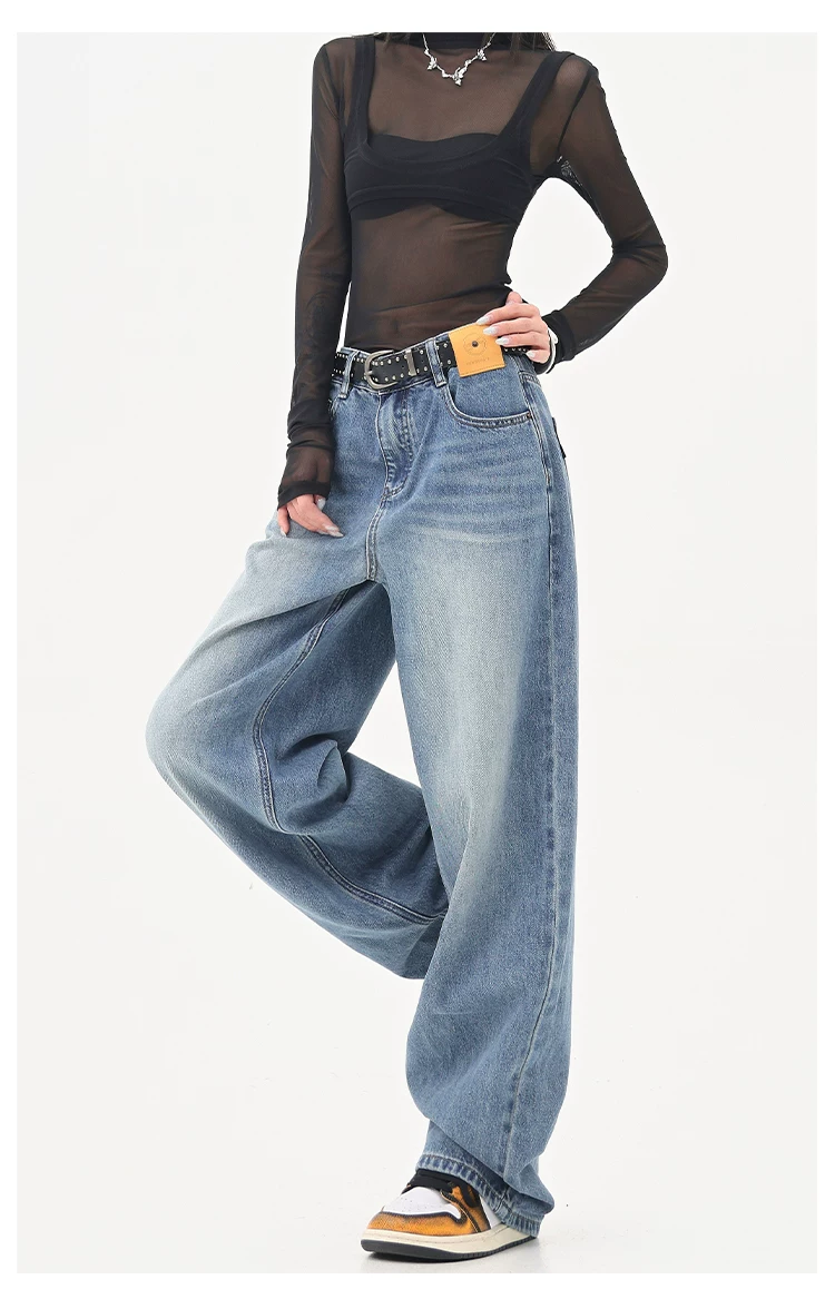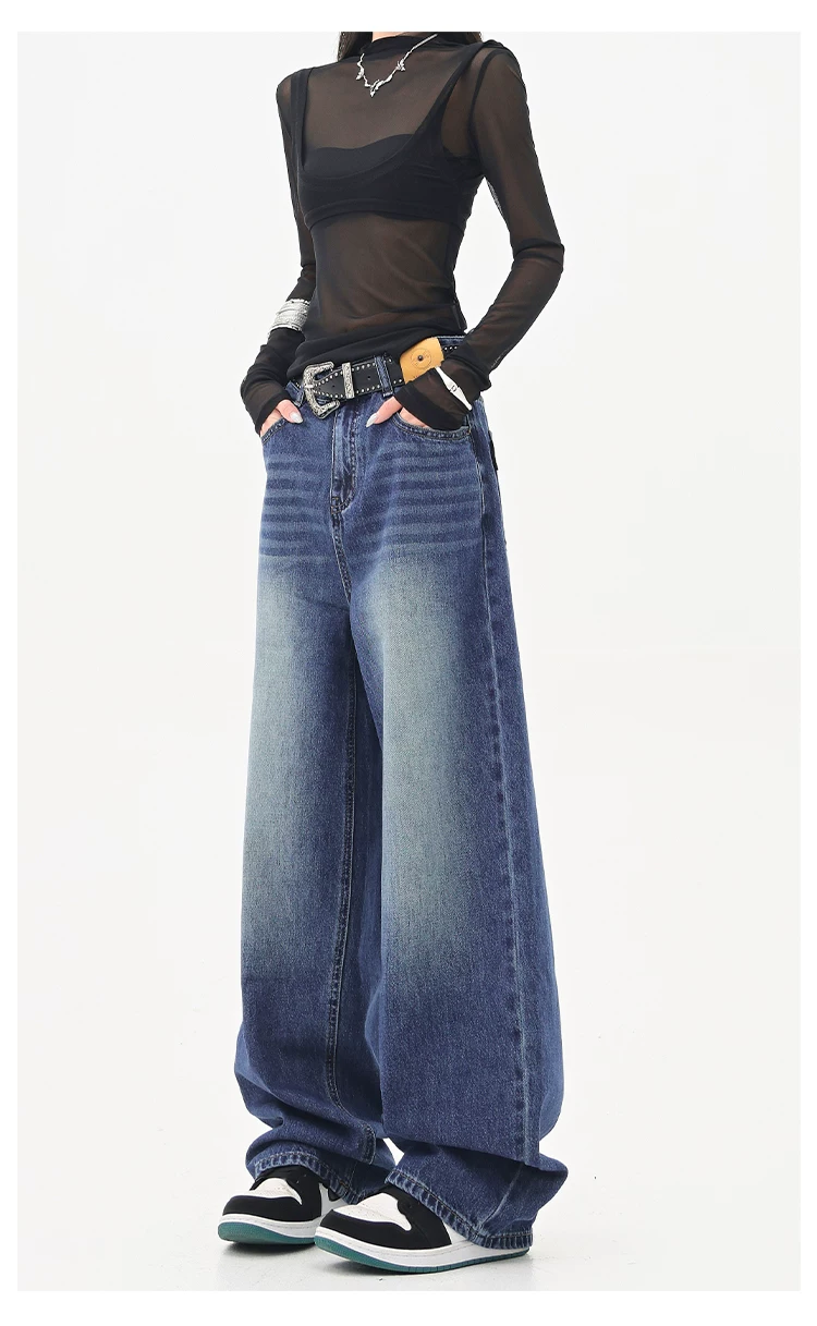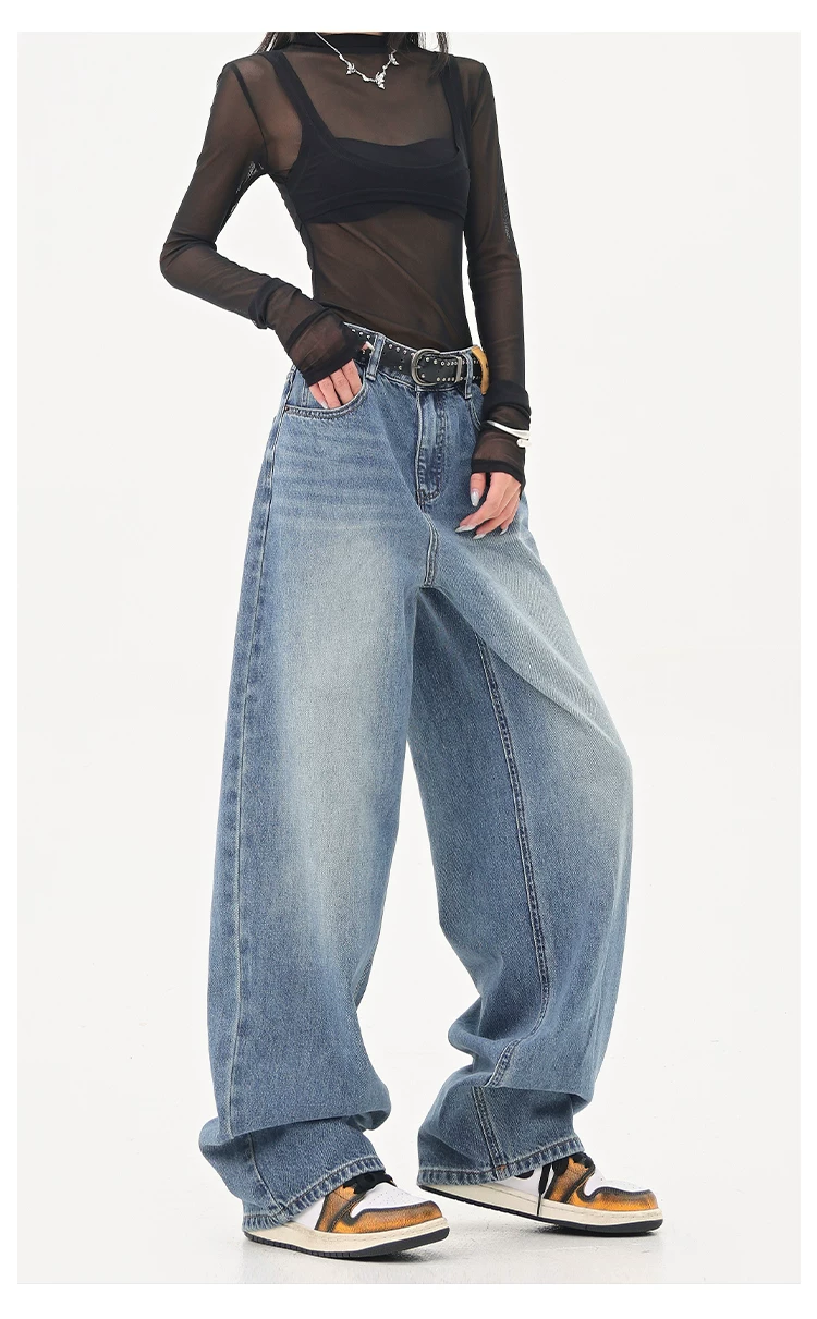 - KEN STUDIO Quần jean ống đứng màu đen phong cách Mỹ dành cho nữ, quần ống rộng dáng rộng mới mùa thu đông.