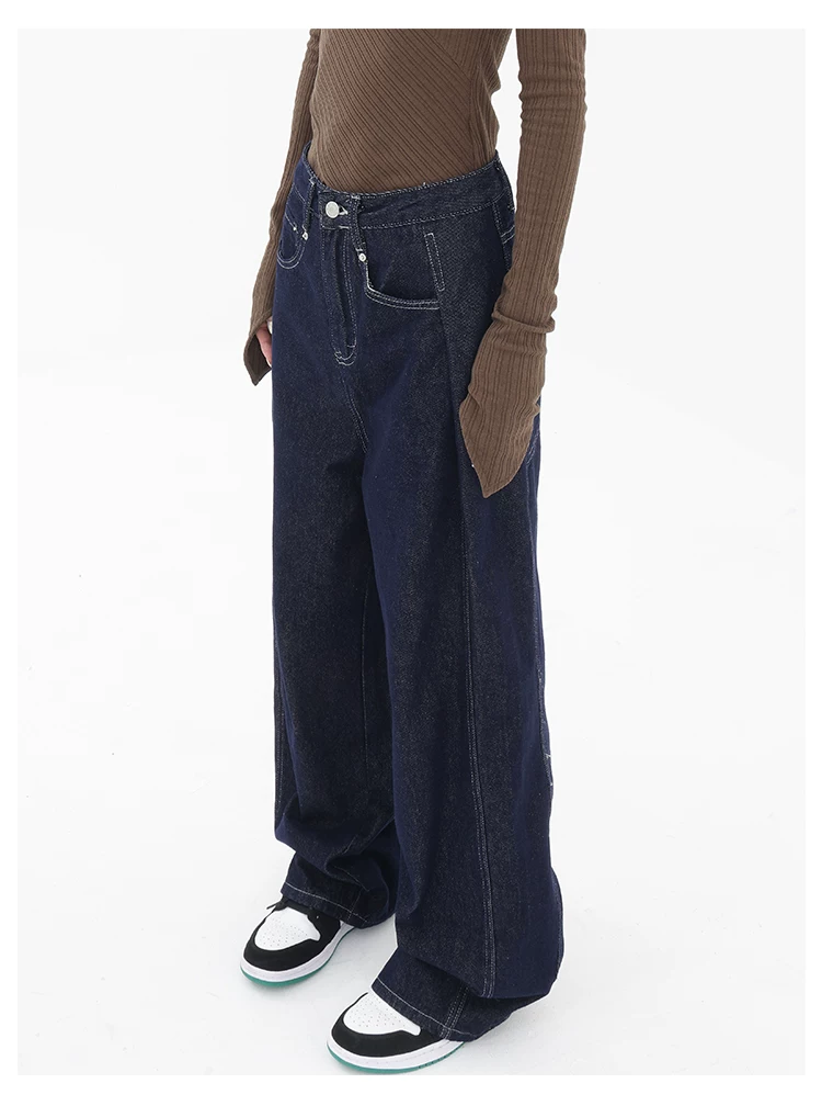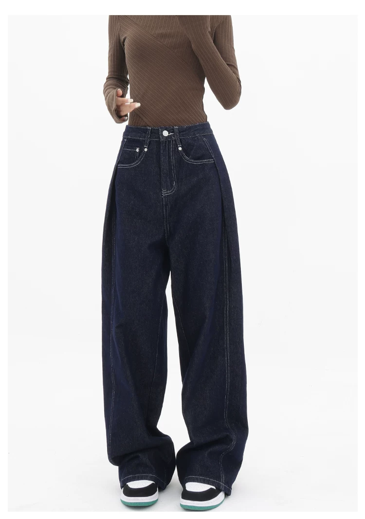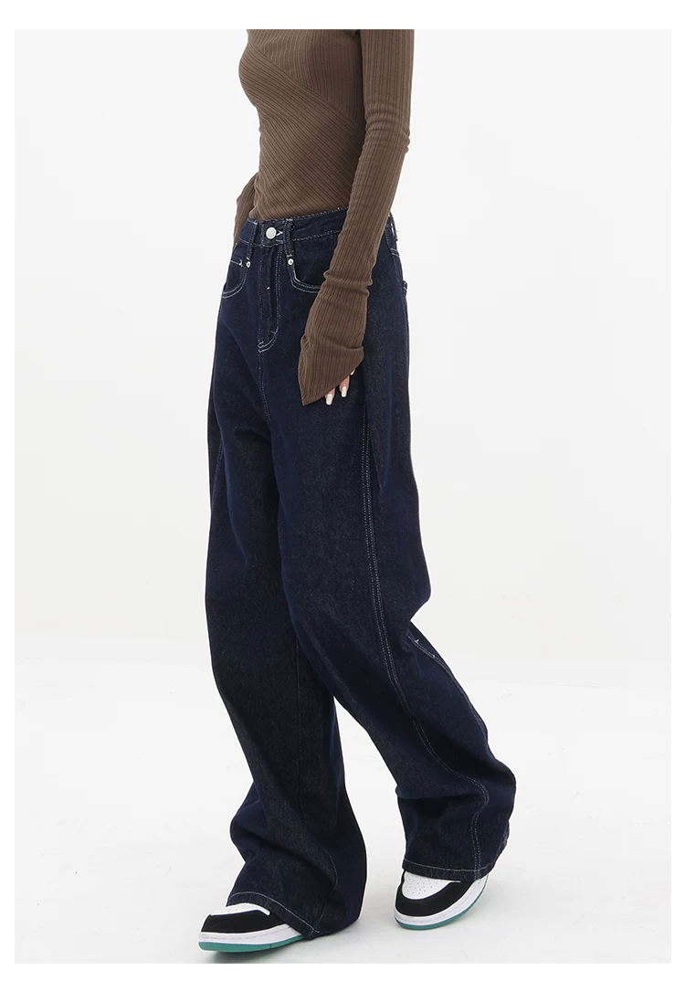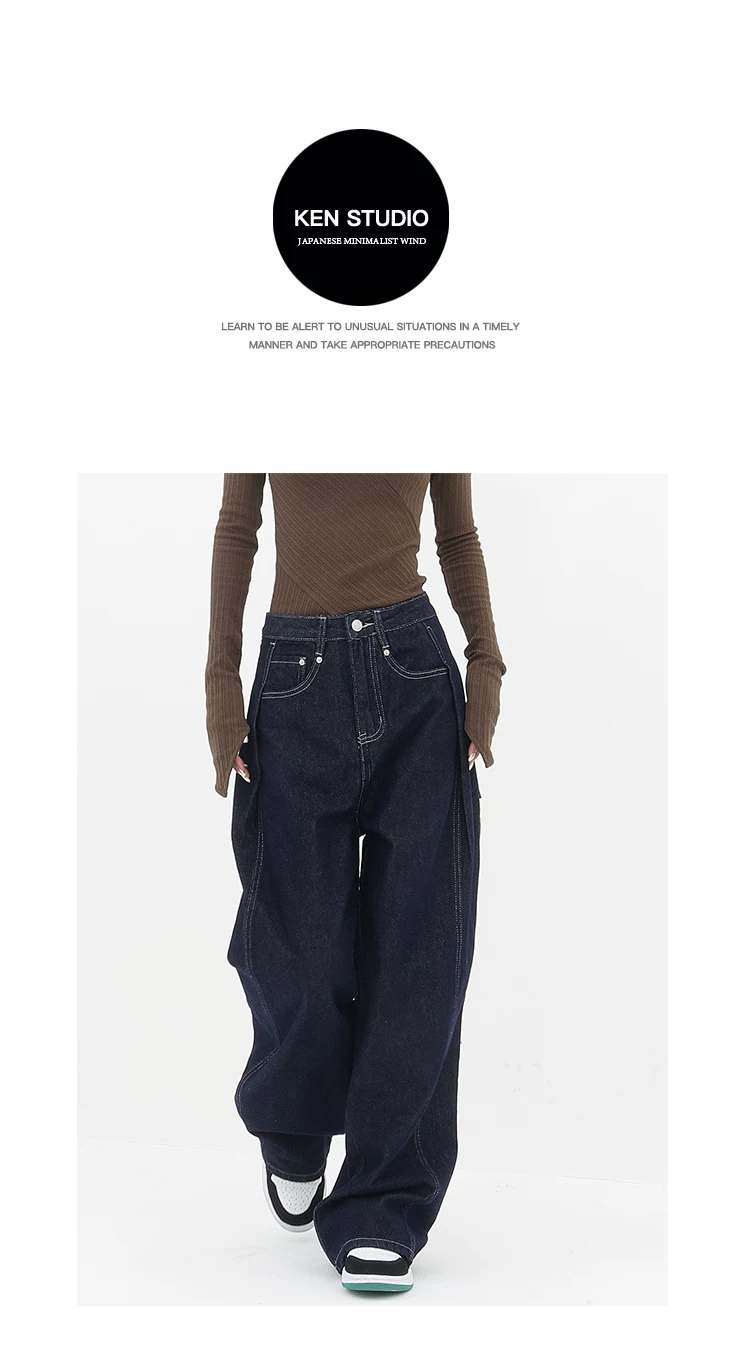 - KEN STUDIO Quần jean ống đứng mới mùa xuân thu dành cho nữ, quần ống rộng dáng rộng phong cách đường phố, quần dài cạp cao