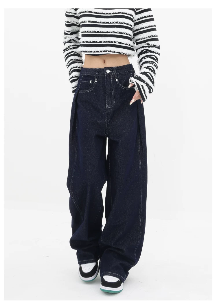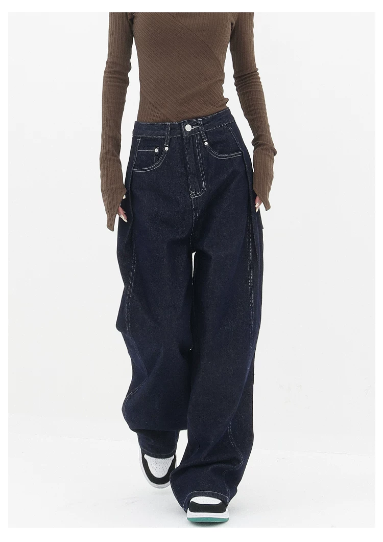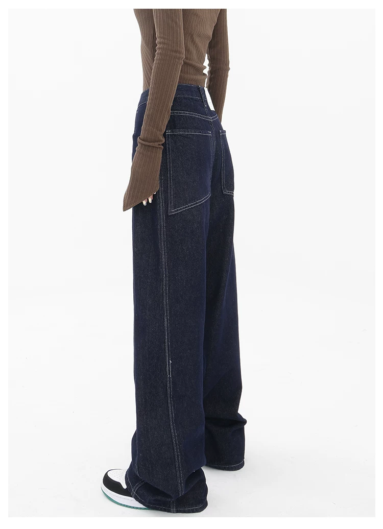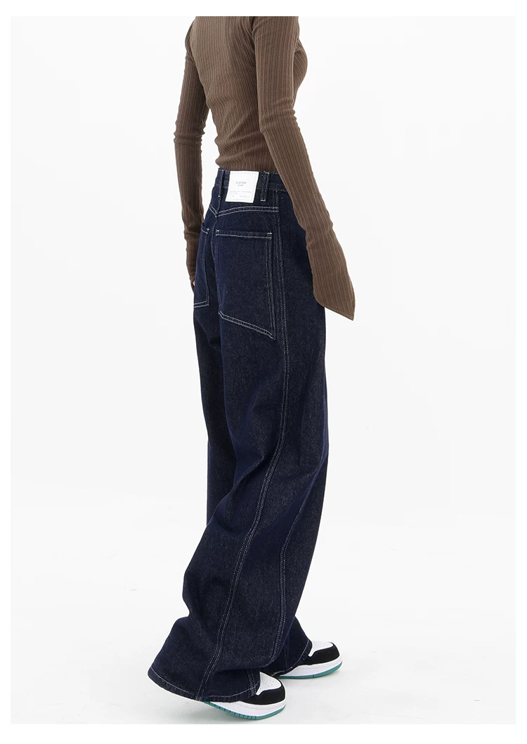 - KEN STUDIO Quần jean ống đứng mới mùa xuân thu dành cho nữ, quần ống rộng dáng rộng phong cách đường phố, quần dài cạp cao