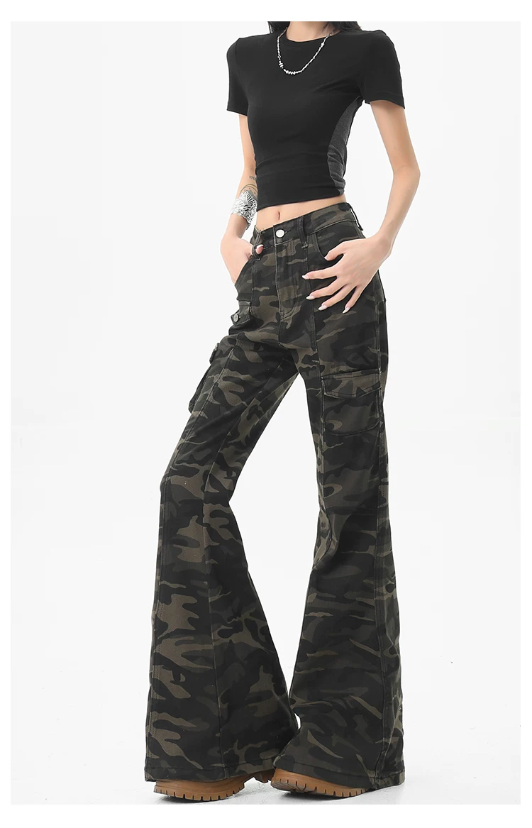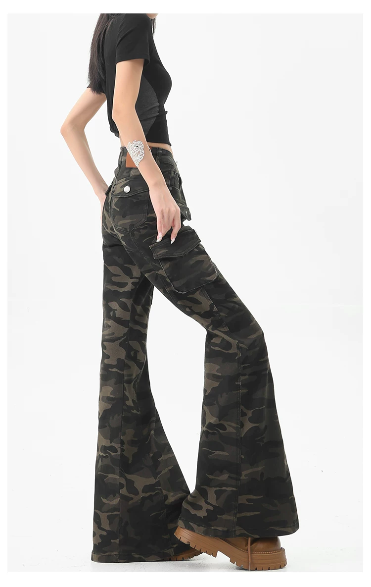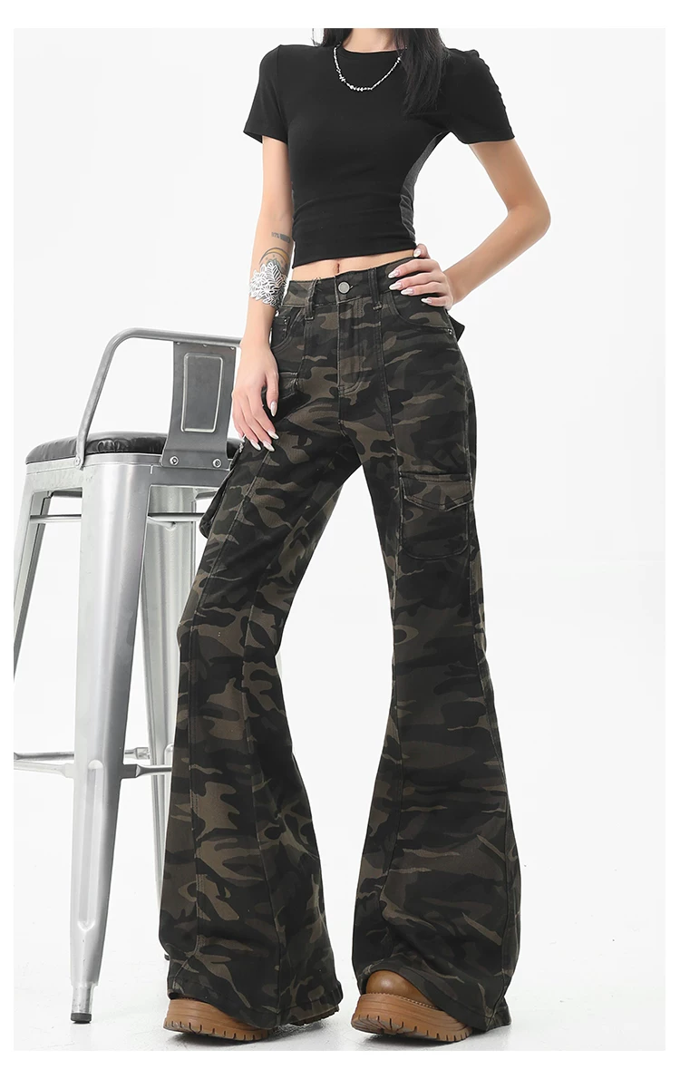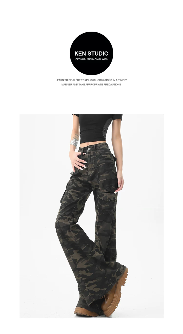 - KEN STUDIO Quần jean ống loe kiểu hot girl phong cách Mỹ dành cho nữ, quần dài ôm sát lưng cao mới mùa xuân thu