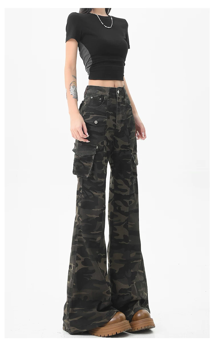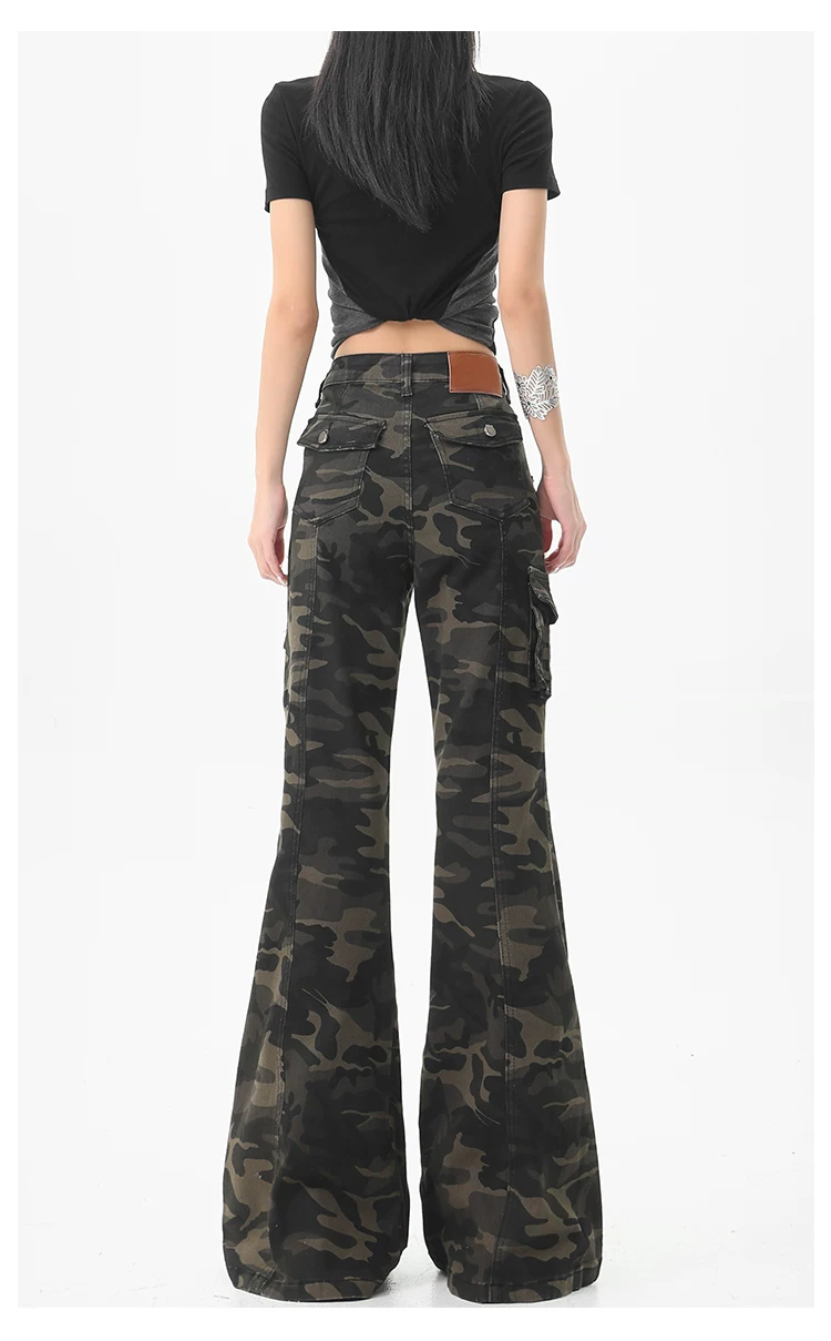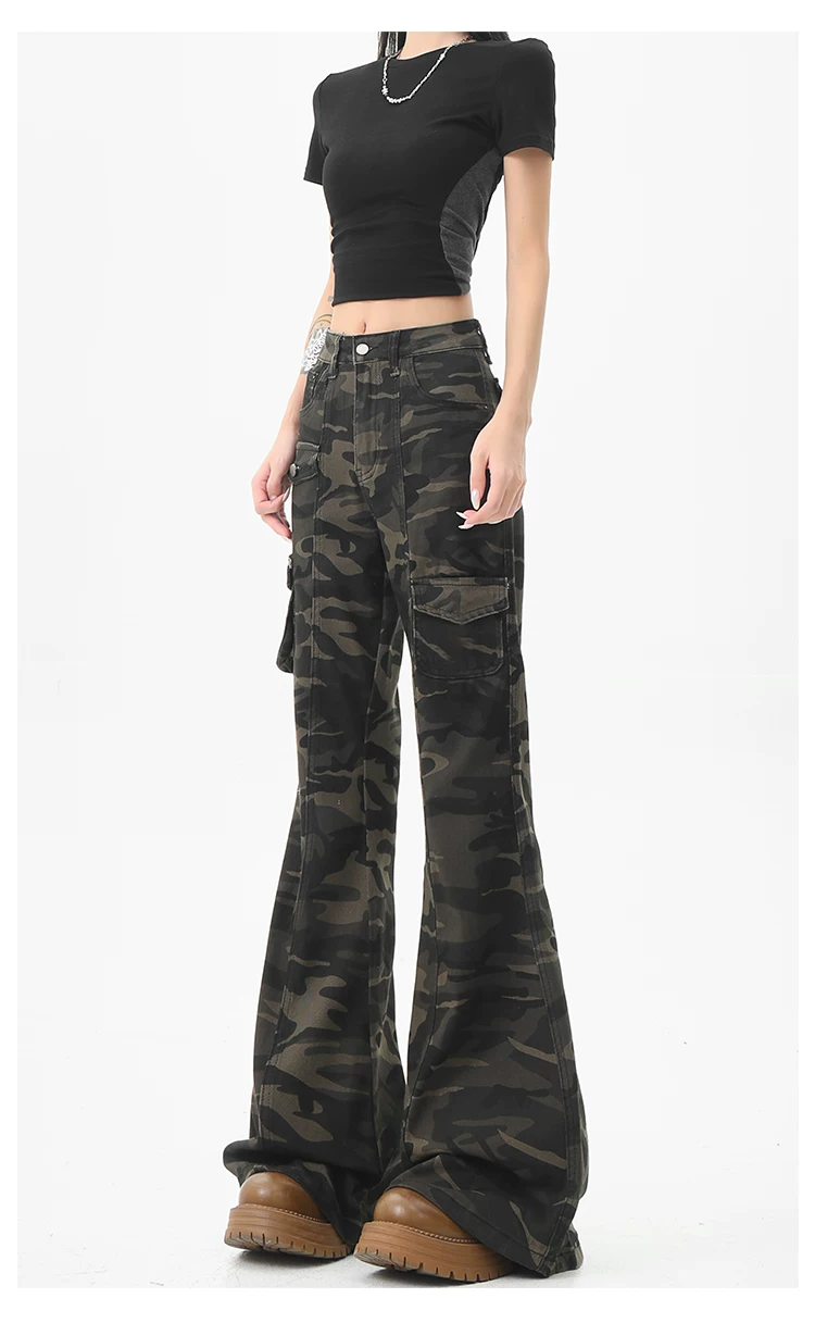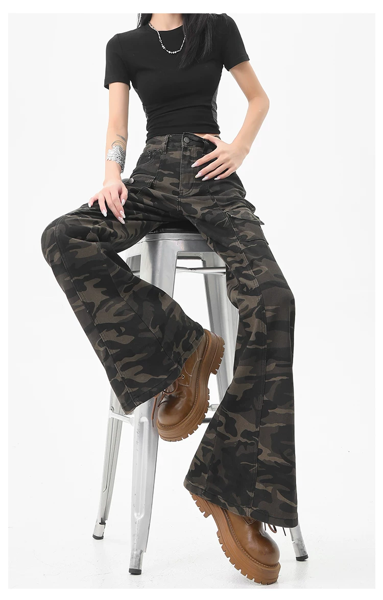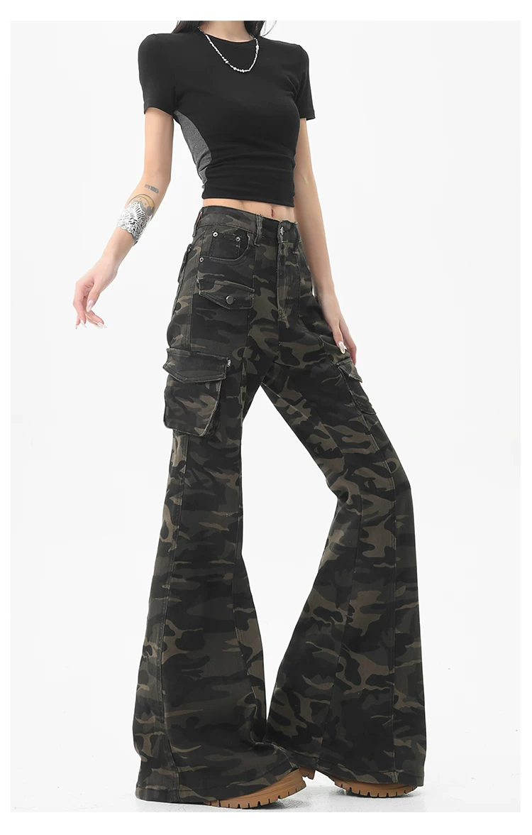 - KEN STUDIO Quần jean ống loe kiểu hot girl phong cách Mỹ dành cho nữ, quần dài ôm sát lưng cao mới mùa xuân thu