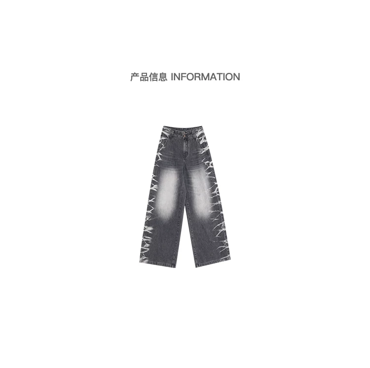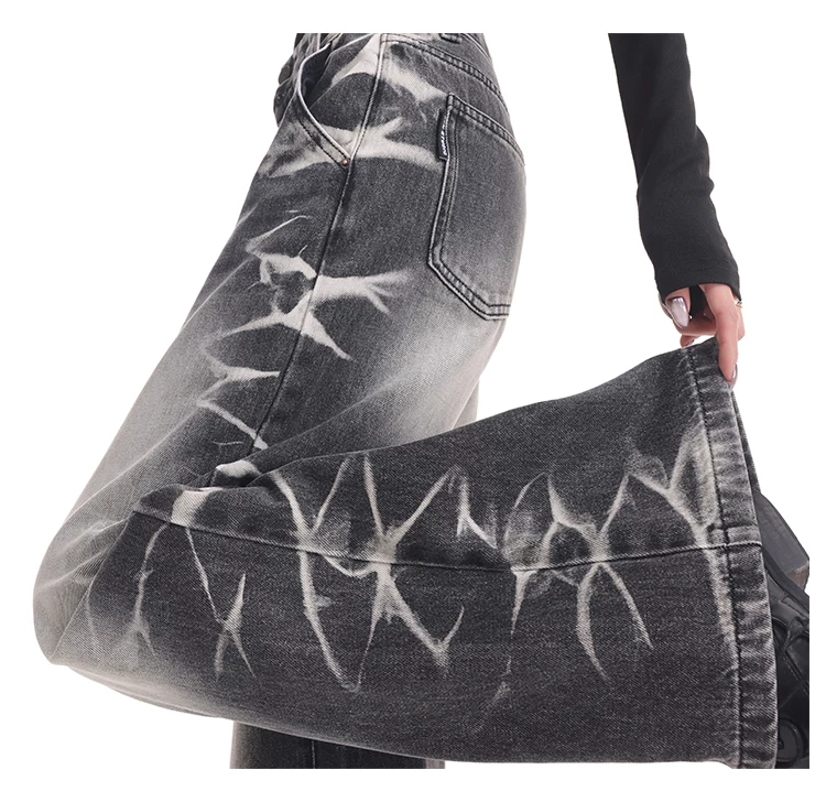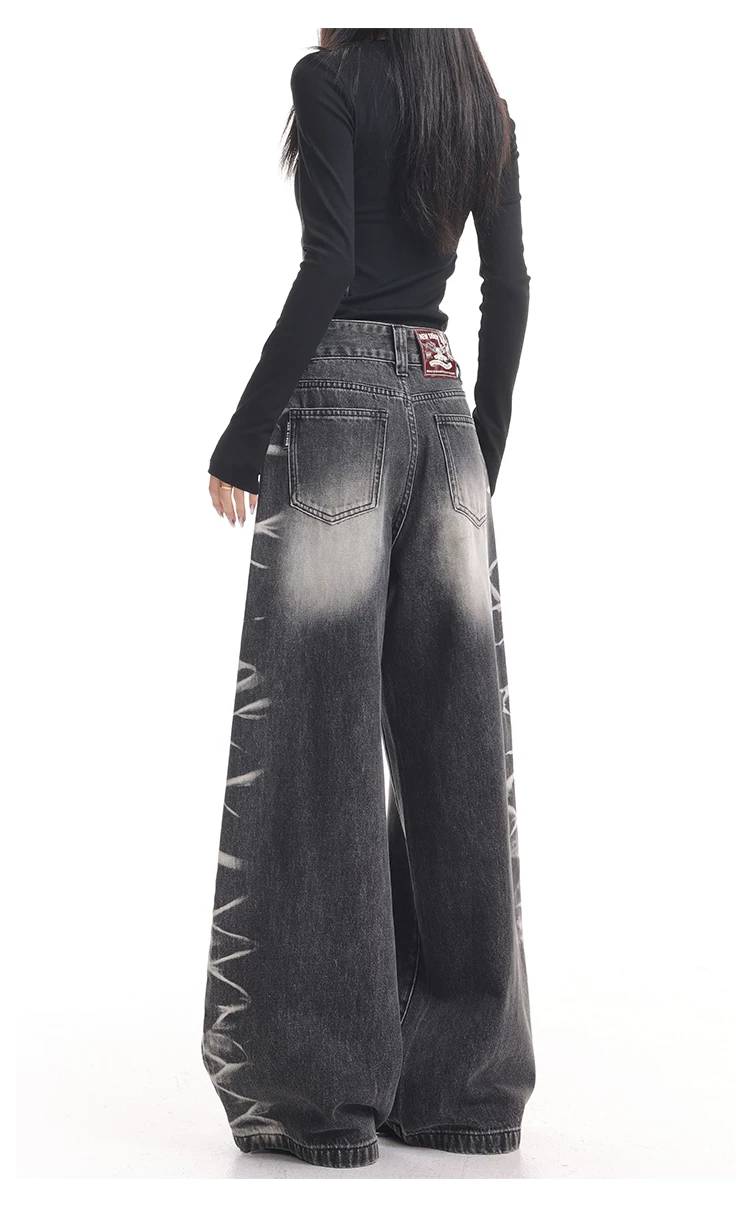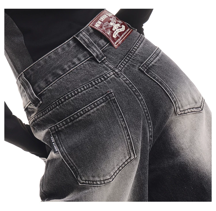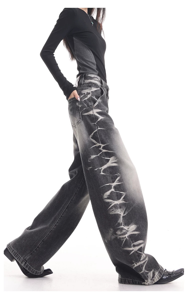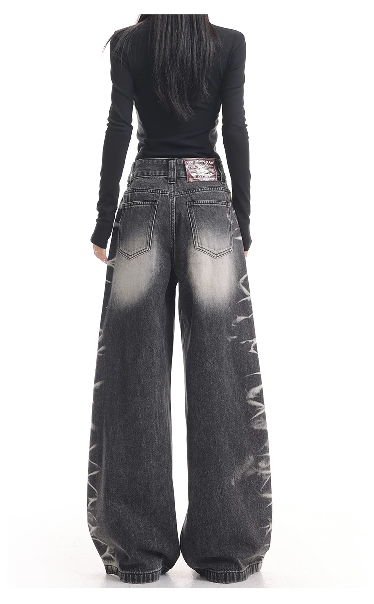 - KEN STUDIO quần jean ống rộng màu đen cổ điển mới mùa thu đông dành cho nữ, quần dài màu phối màu đã qua xử lý, quần dài rộng đến sàn