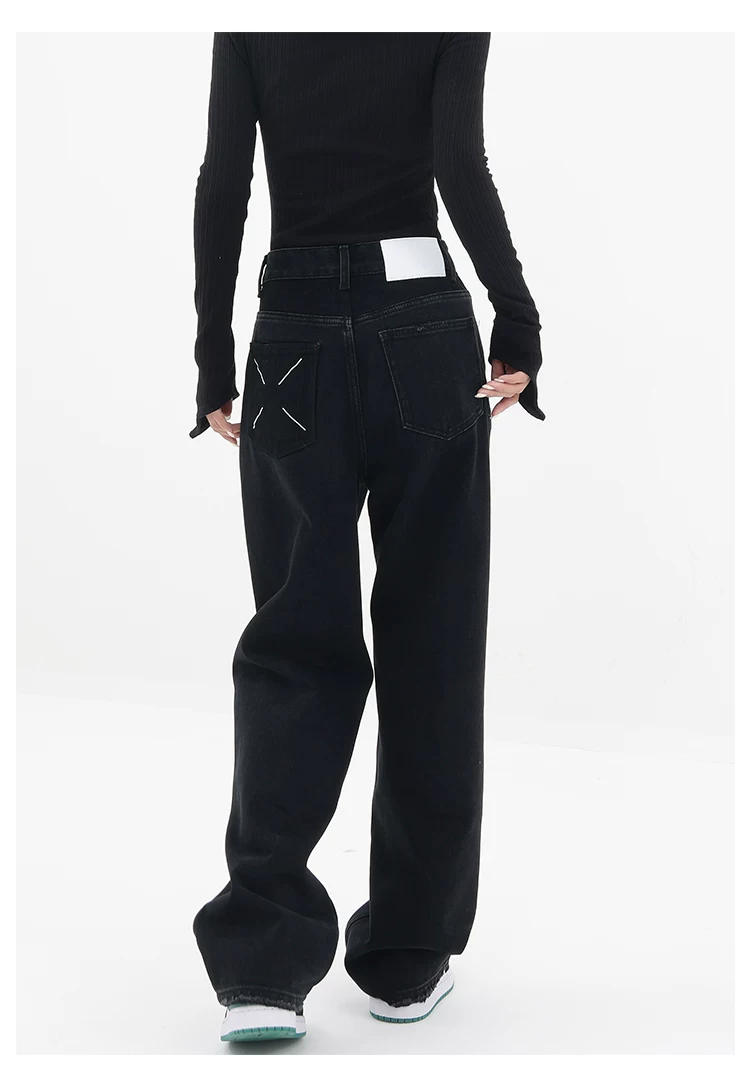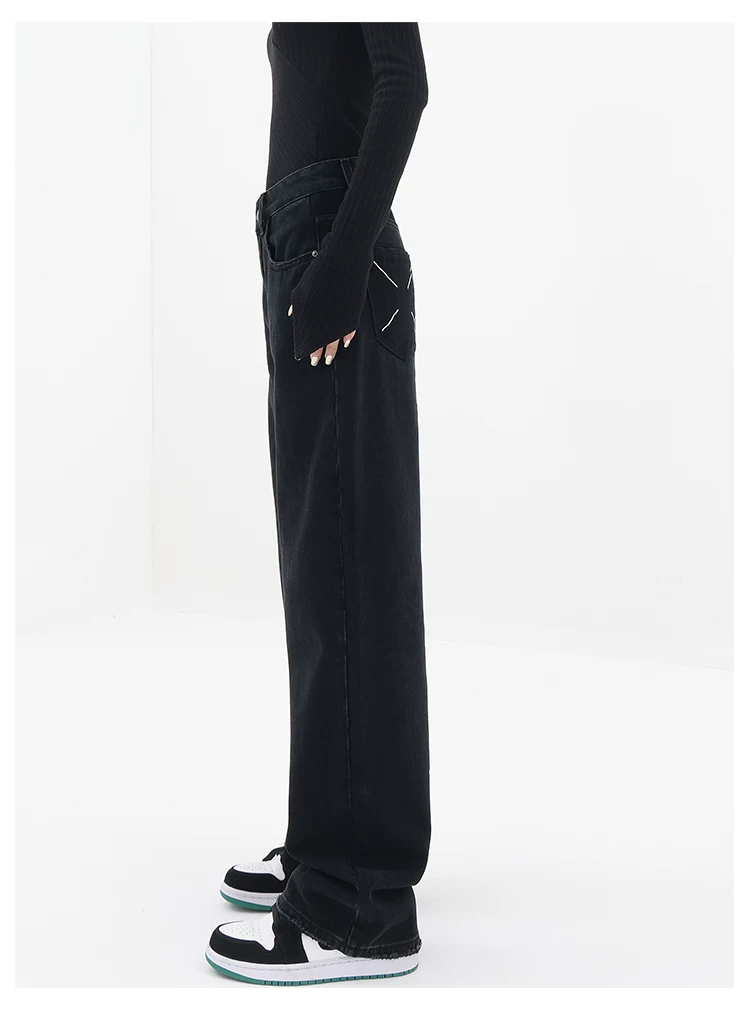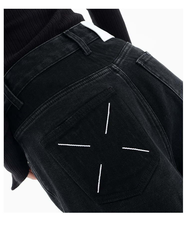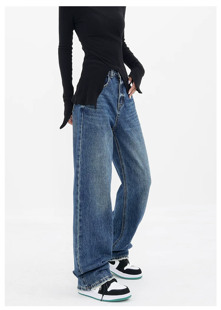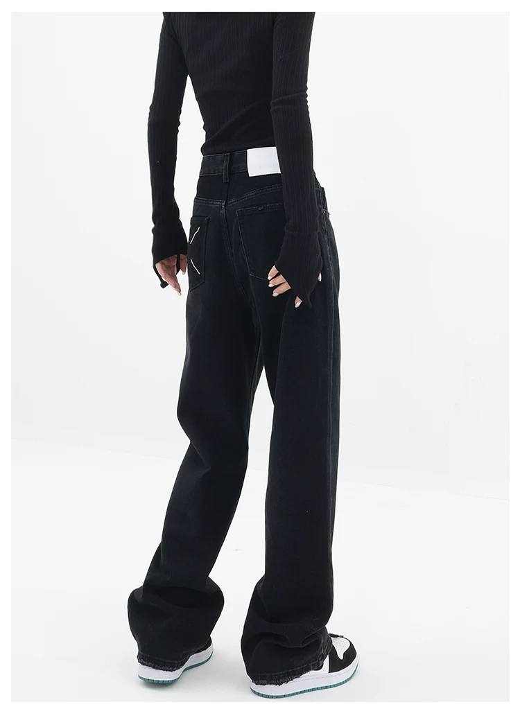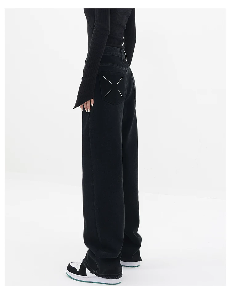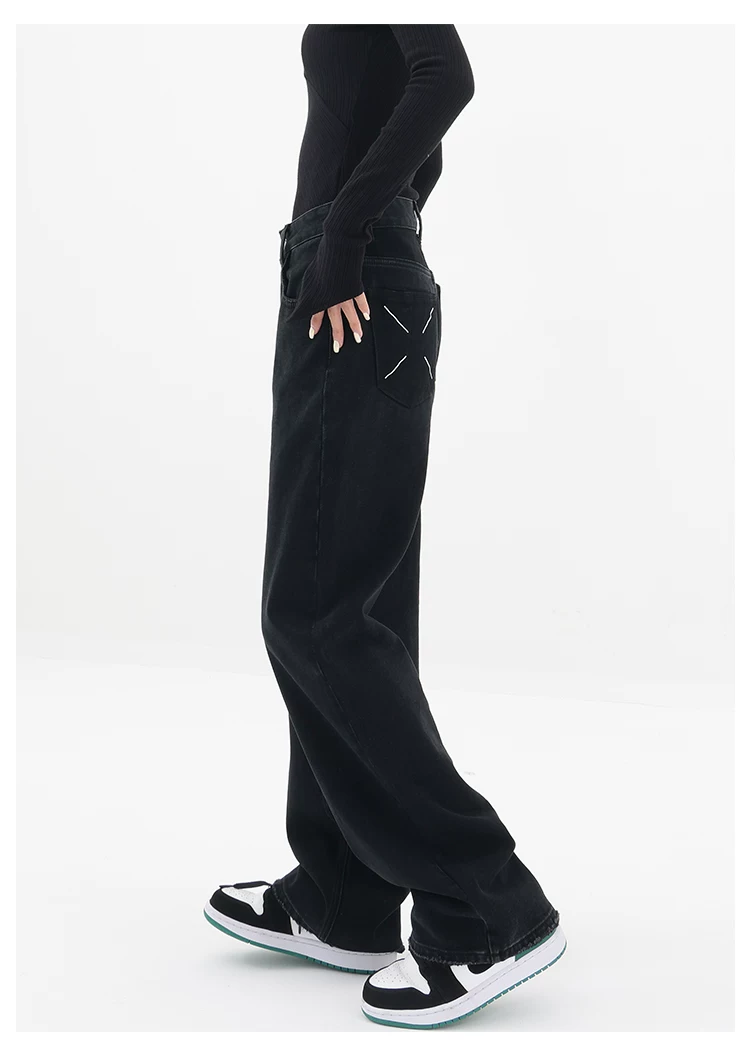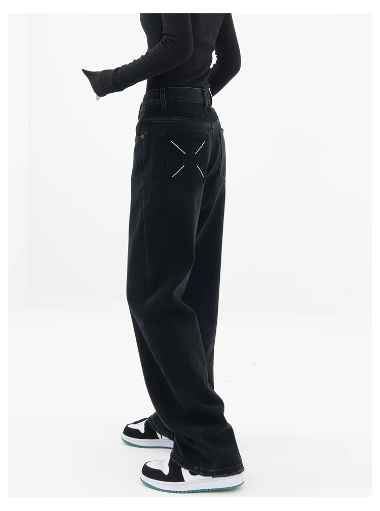- KEN STUDIO Quần jean ống rộng màu đen lót lông cừu mùa thu đông dành cho nữ, quần ống đứng cạp cao, quần dài, quần thường ngày.