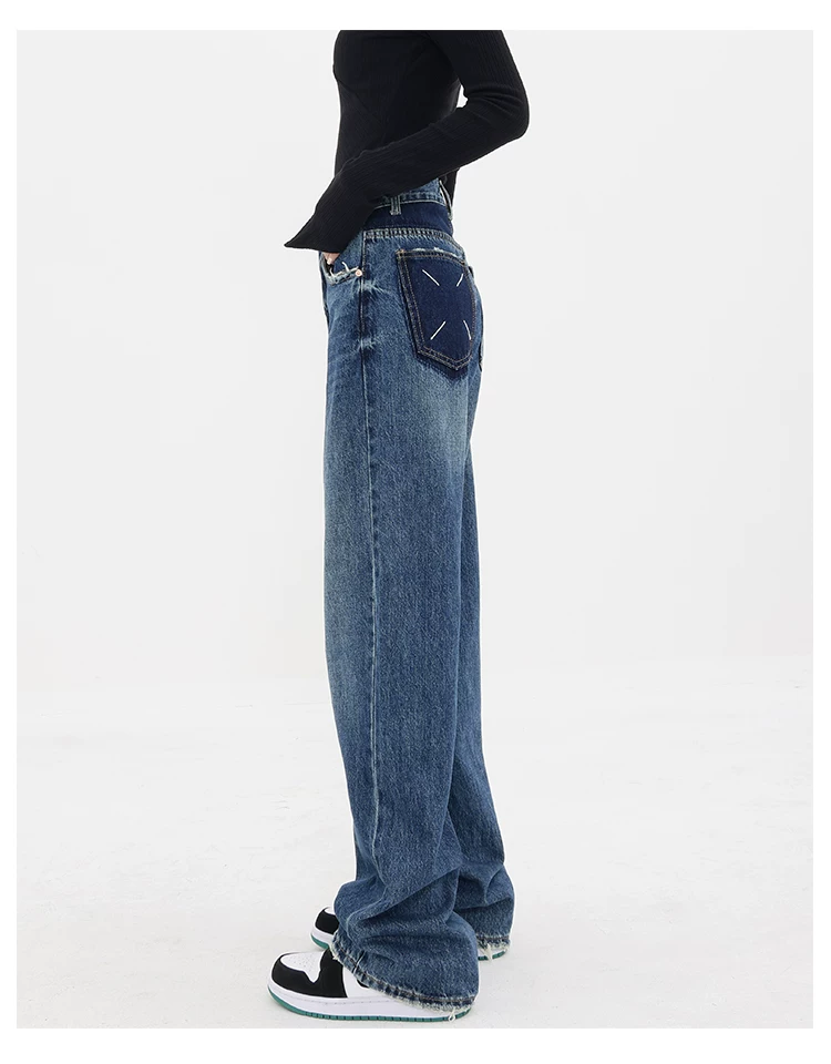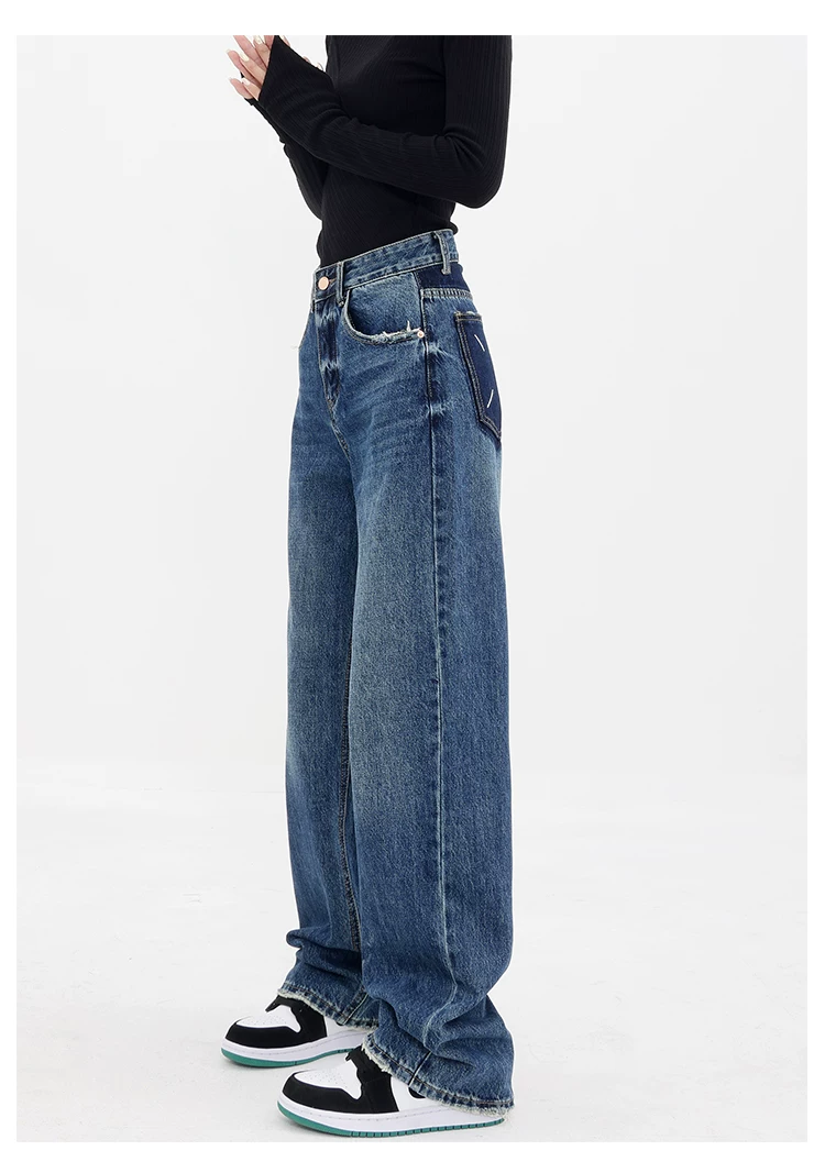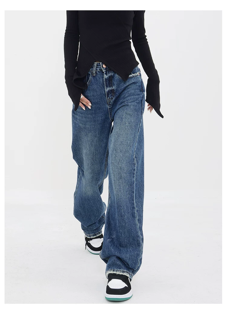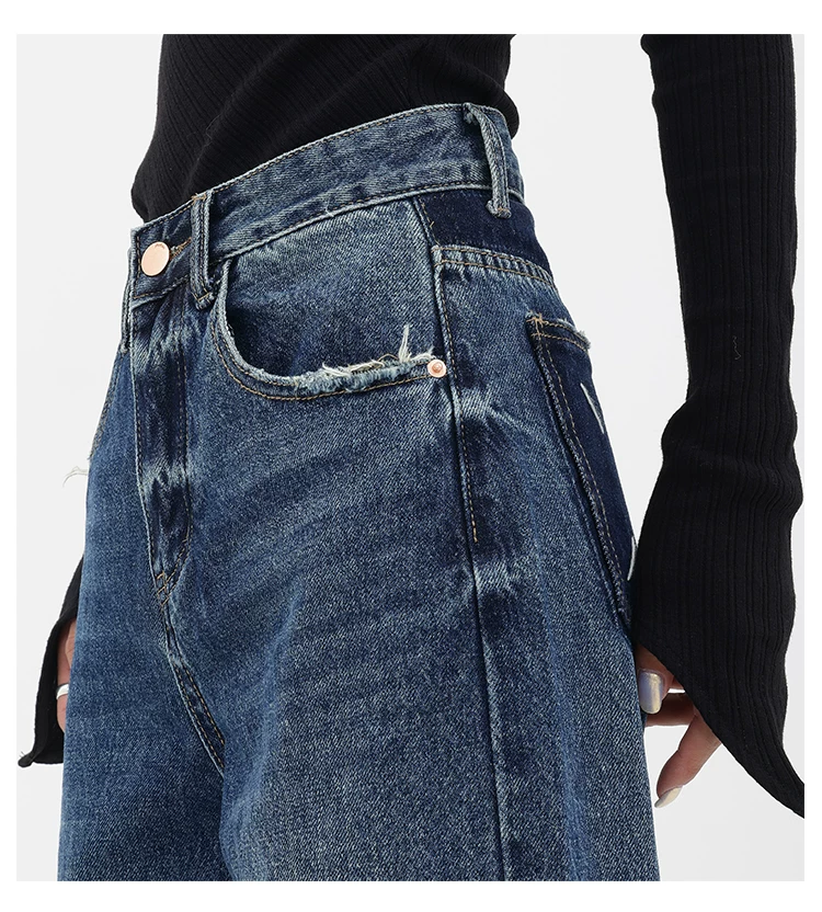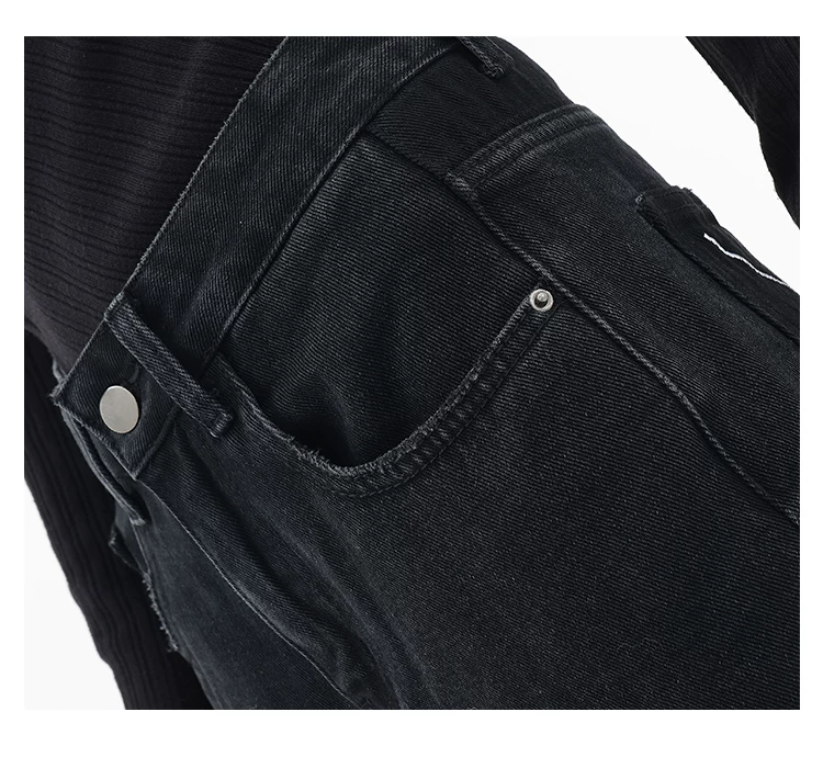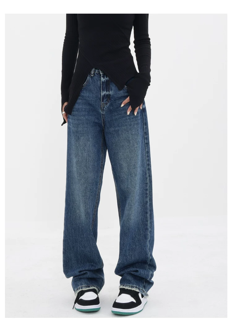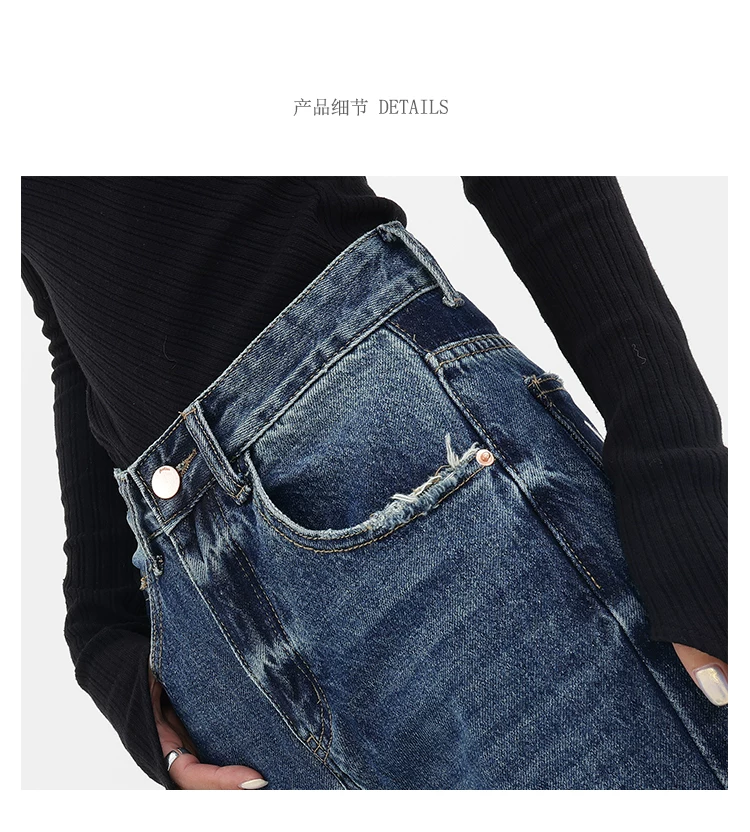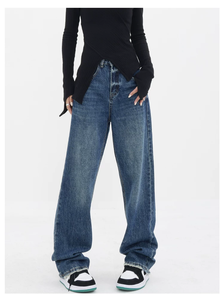 - KEN STUDIO Quần jean ống rộng màu đen lót lông cừu mùa thu đông dành cho nữ, quần ống đứng cạp cao, quần dài, quần thường ngày.