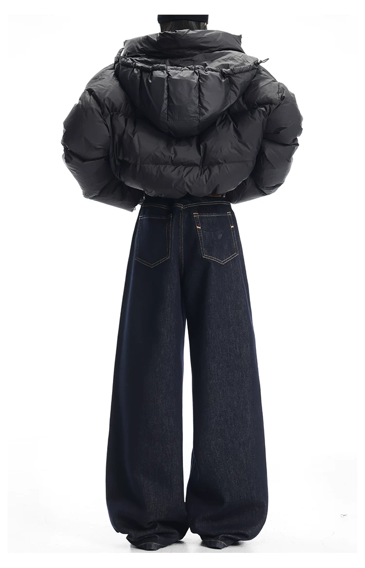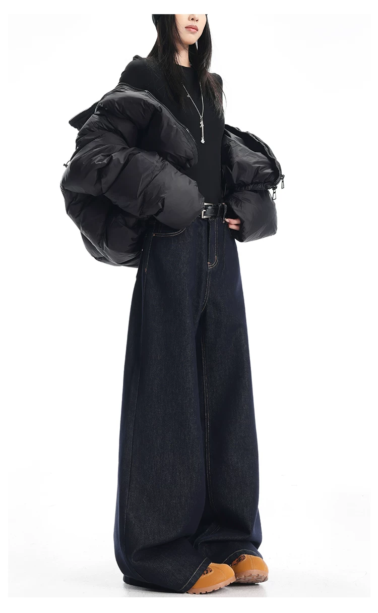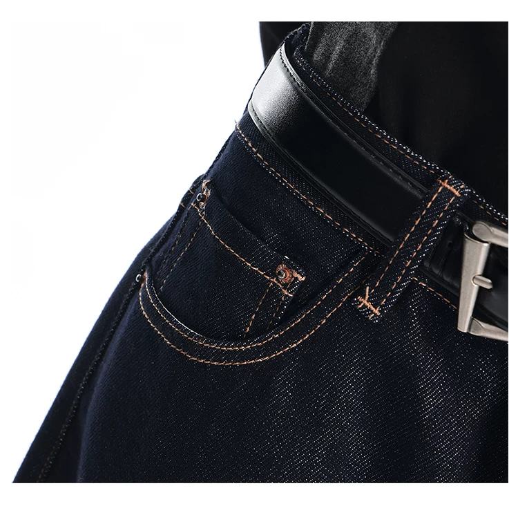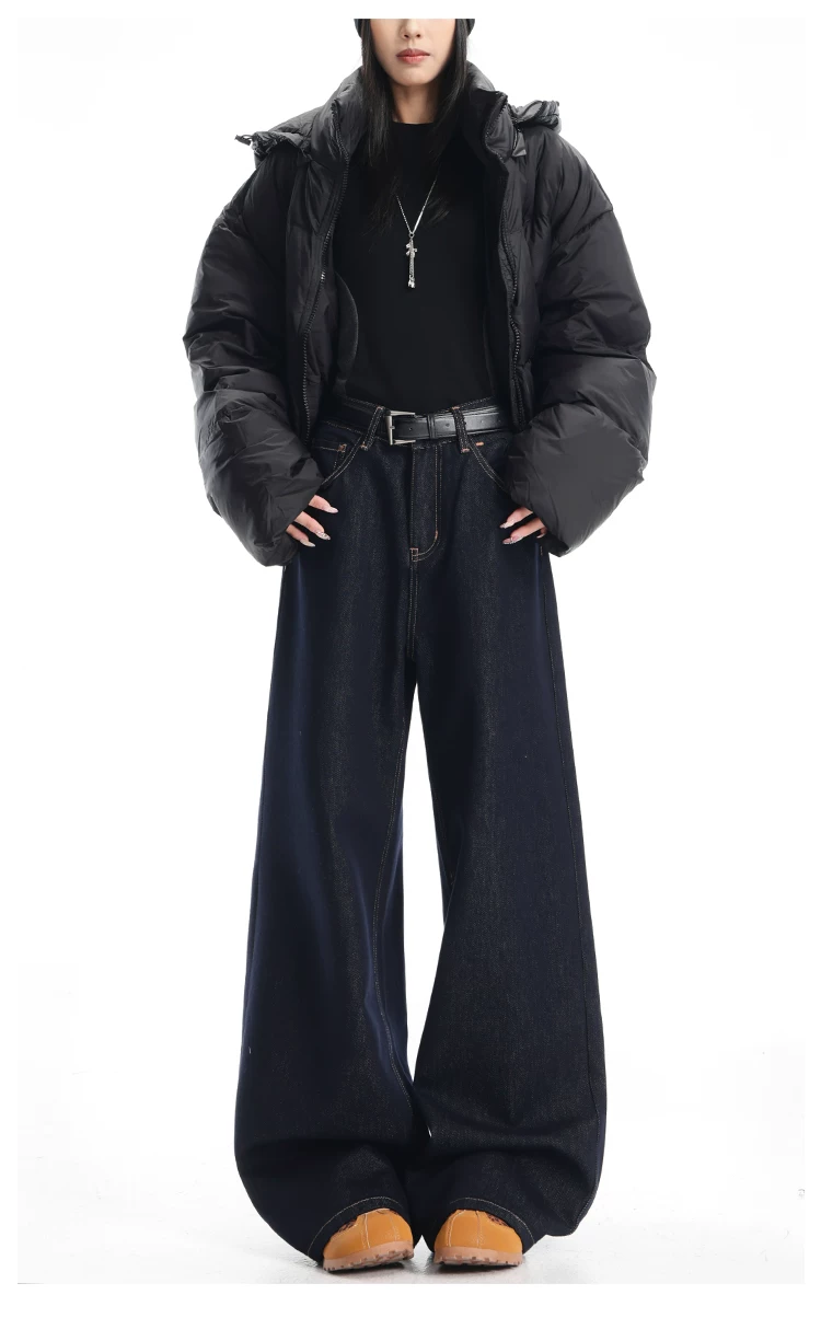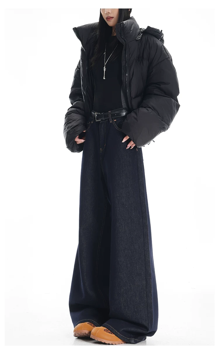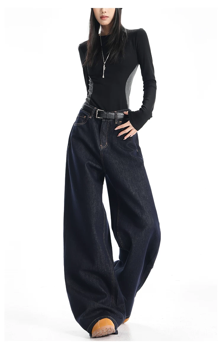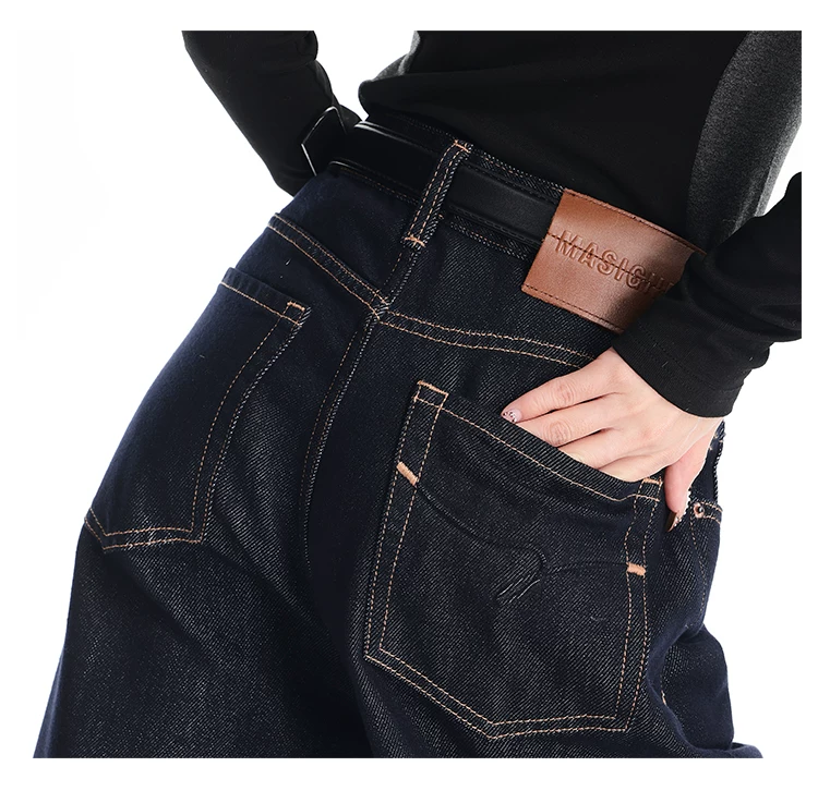 - KEN STUDIO quần jean ống rộng màu xanh đậm có lót lông cừu mùa thu đông dành cho nữ quần dài ống rộng lưng cao dáng rộng