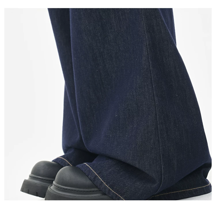 KEN STUDIO Quần jean ống rộng màu xanh đậm theo phong cách retro của Mỹ dành cho nữ, quần ống rộng cạp cao kiểu dáng mùa hè mới, quần ống rộng dáng thẳng