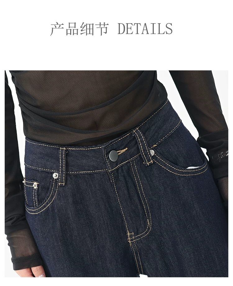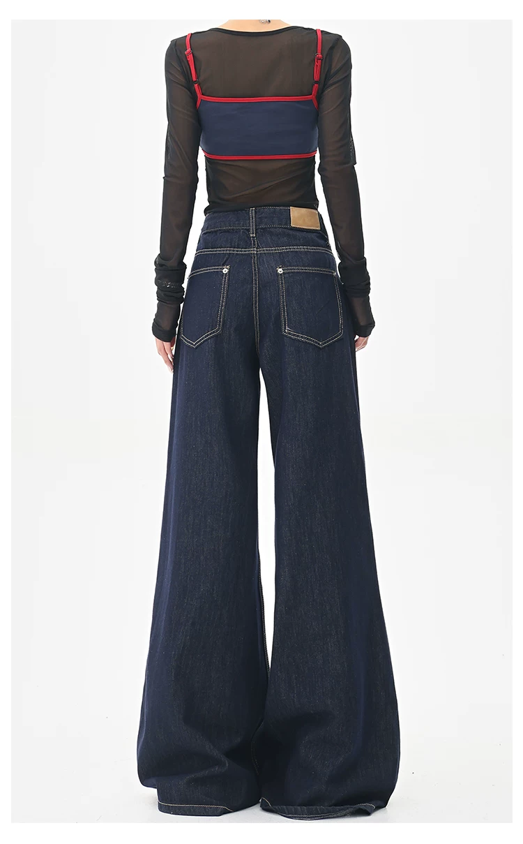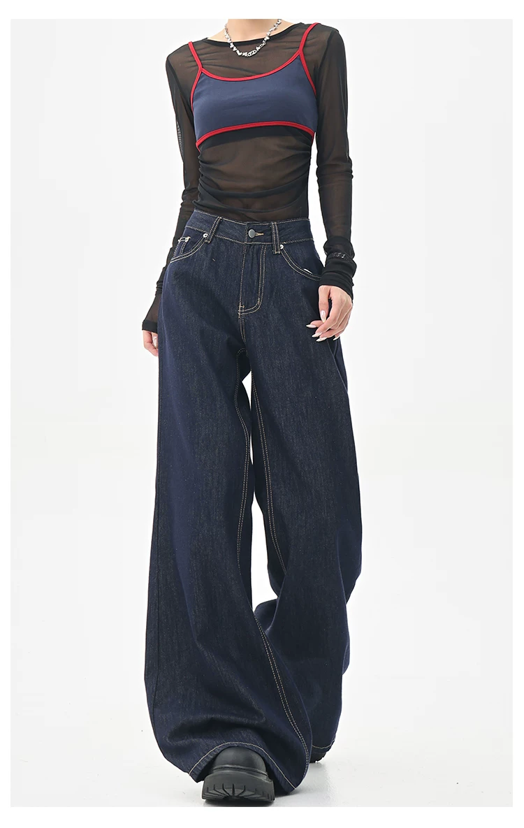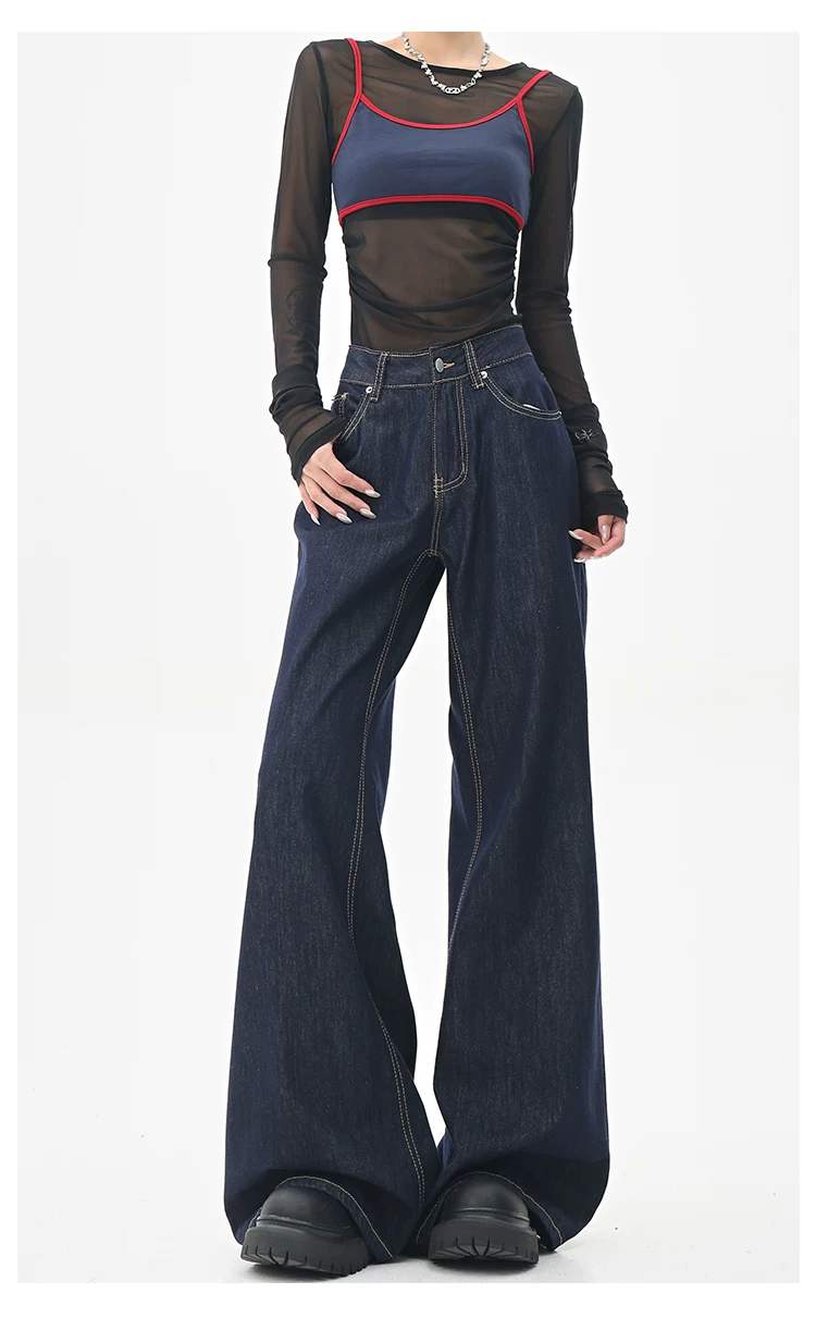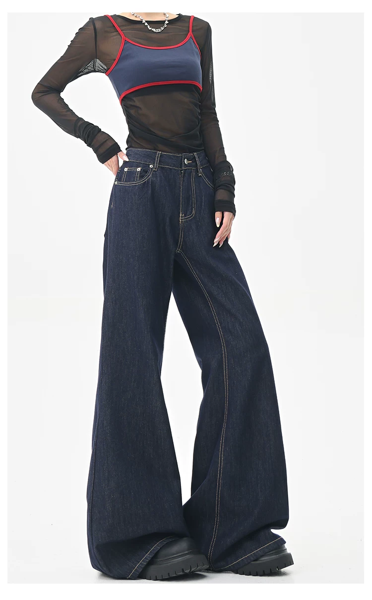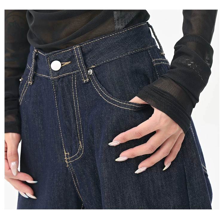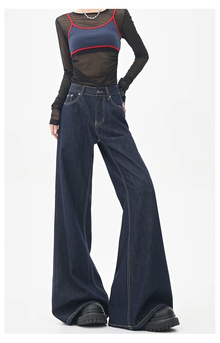 - KEN STUDIO Quần jean ống rộng màu xanh đậm theo phong cách retro của Mỹ dành cho nữ, quần ống rộng cạp cao kiểu dáng mùa hè mới, quần ống rộng dáng thẳng