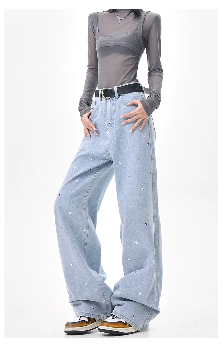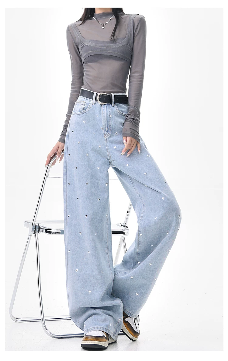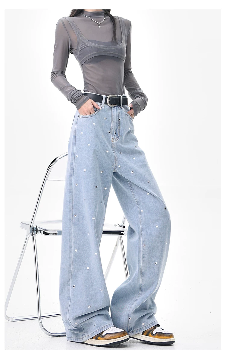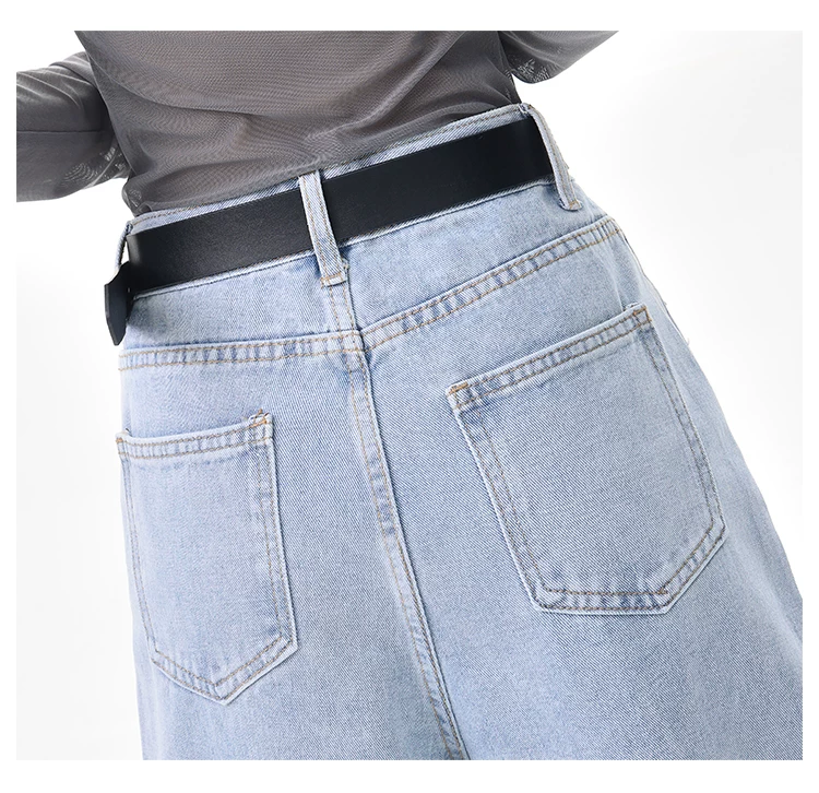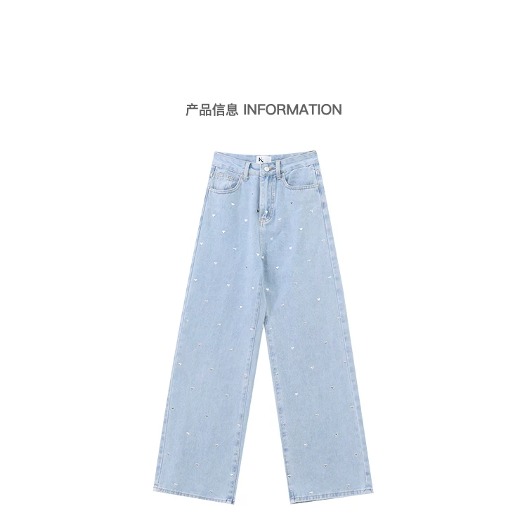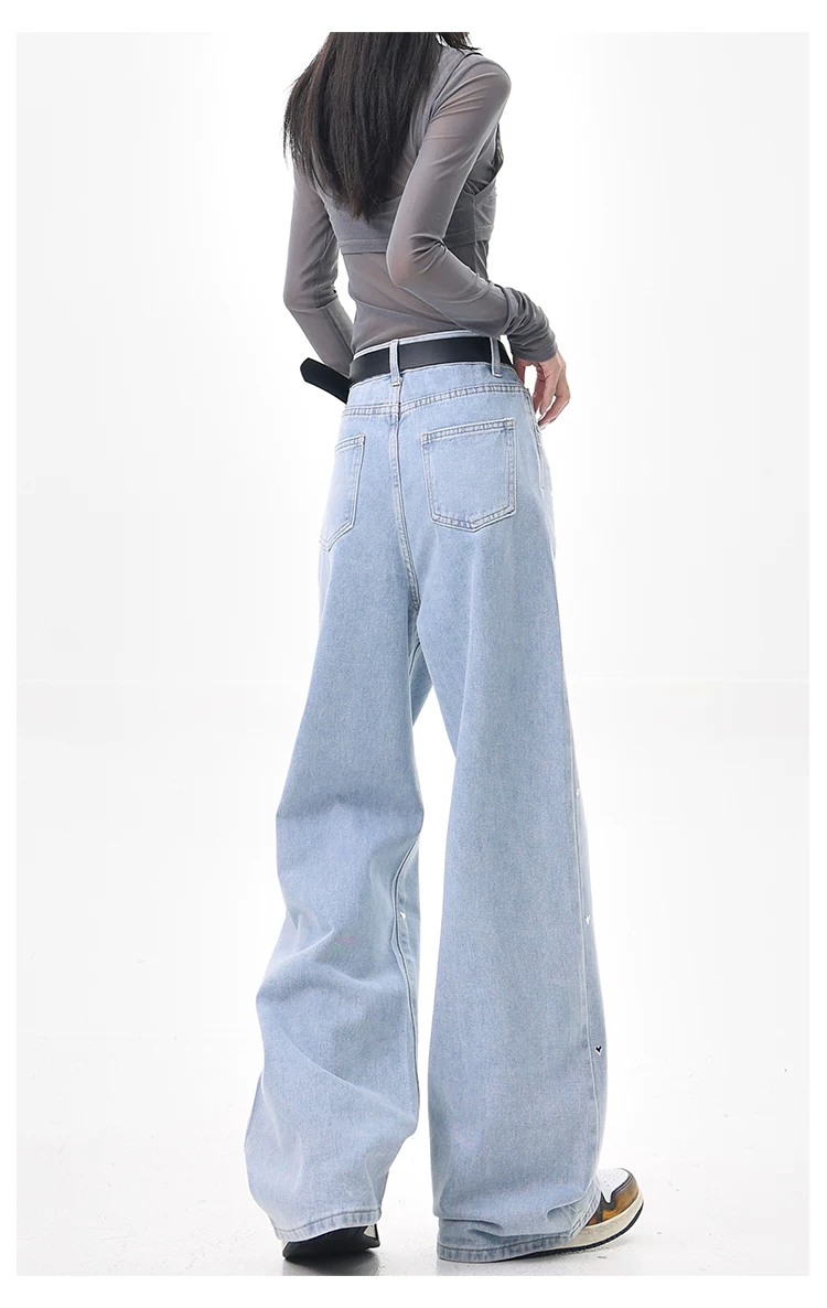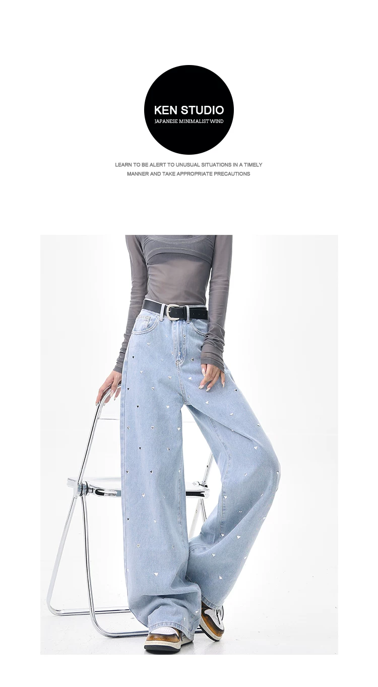 - KEN STUDIO quần jean ống rộng màu xanh lam cổ điển dành cho nữ mùa hè và mùa thu quần ống rộng dáng rộng thông thường