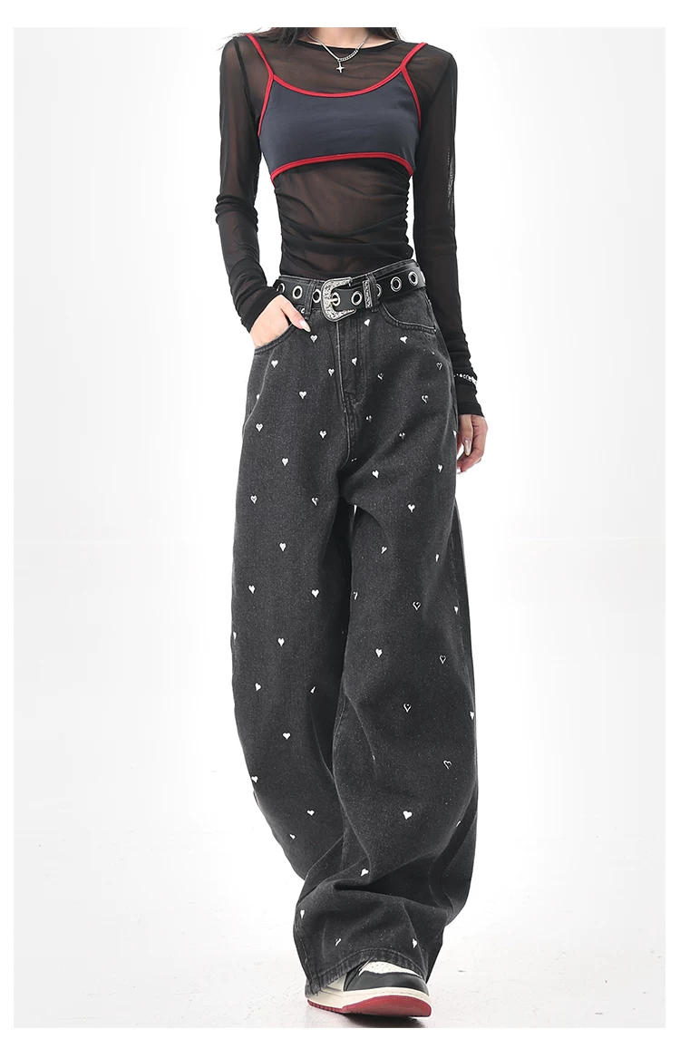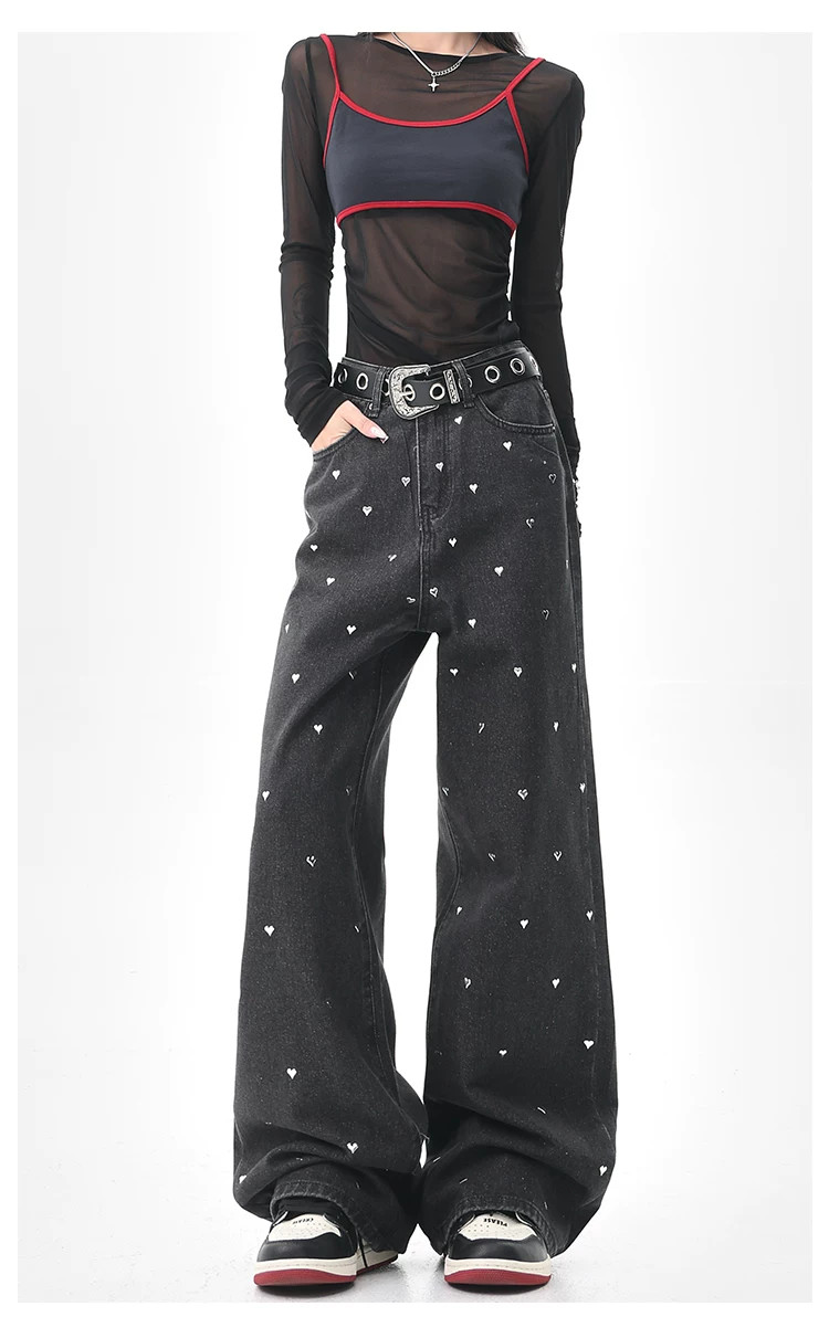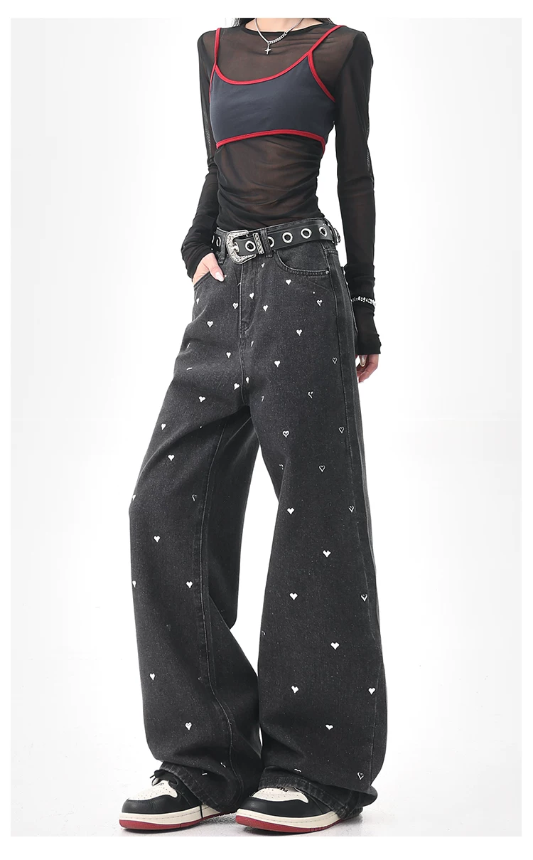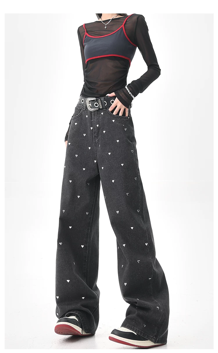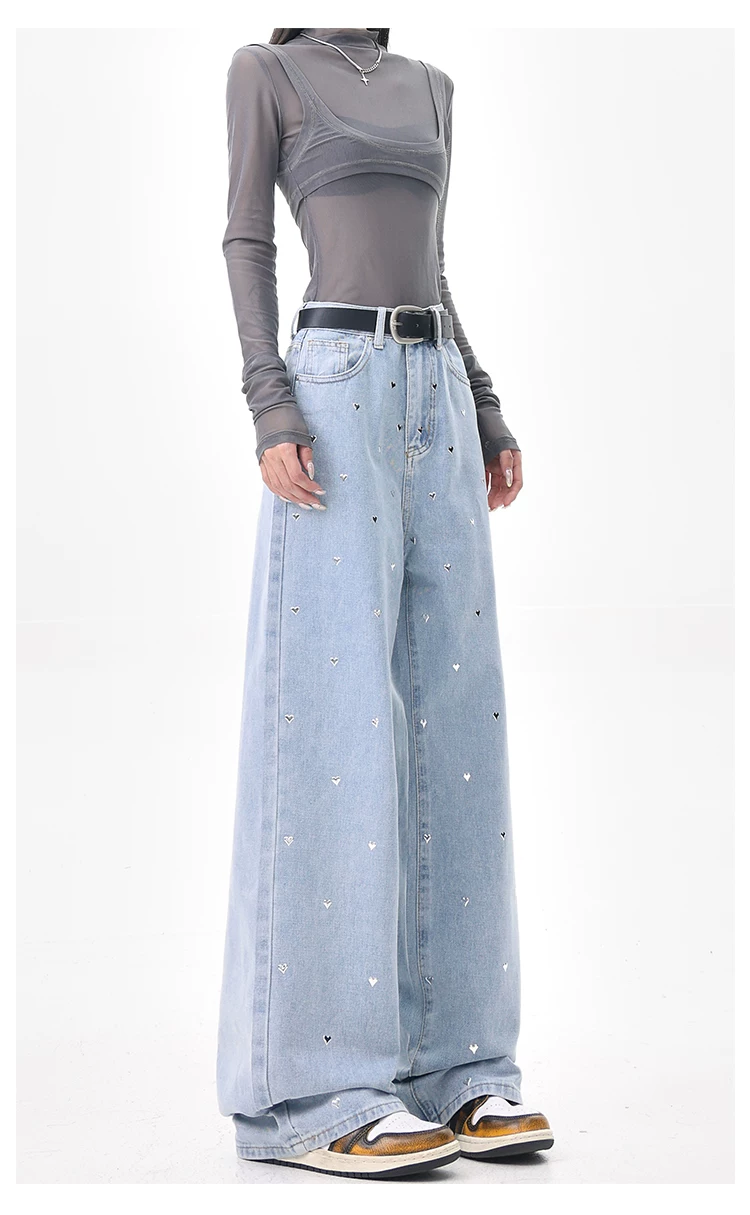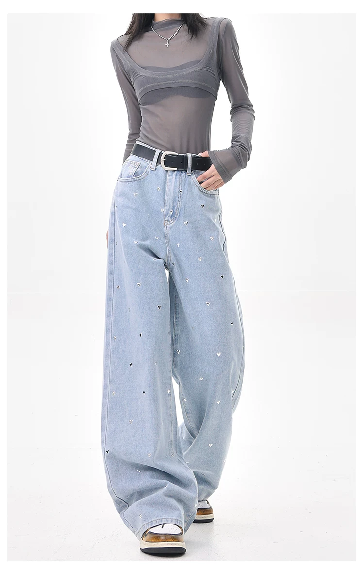 - KEN STUDIO quần jean ống rộng màu xanh lam cổ điển dành cho nữ mùa hè và mùa thu quần ống rộng dáng rộng thông thường