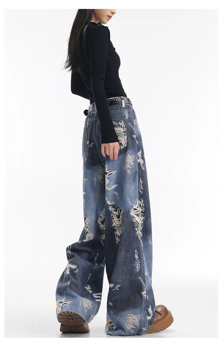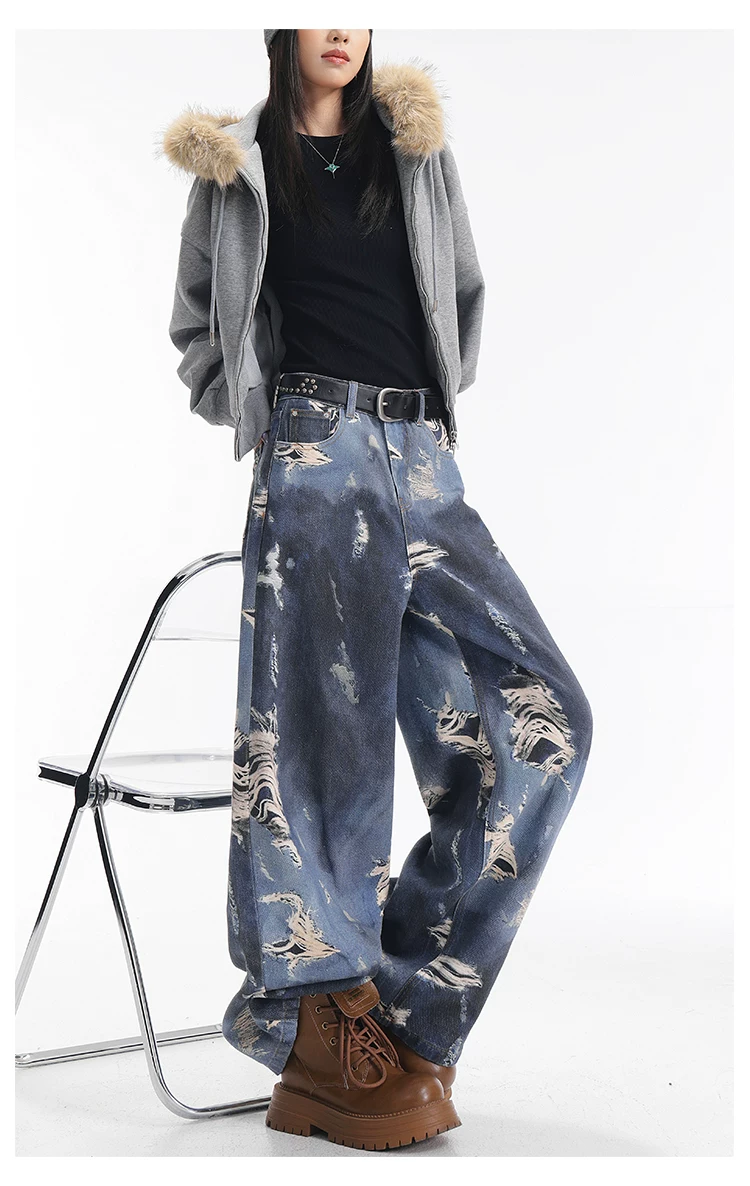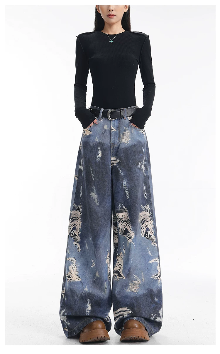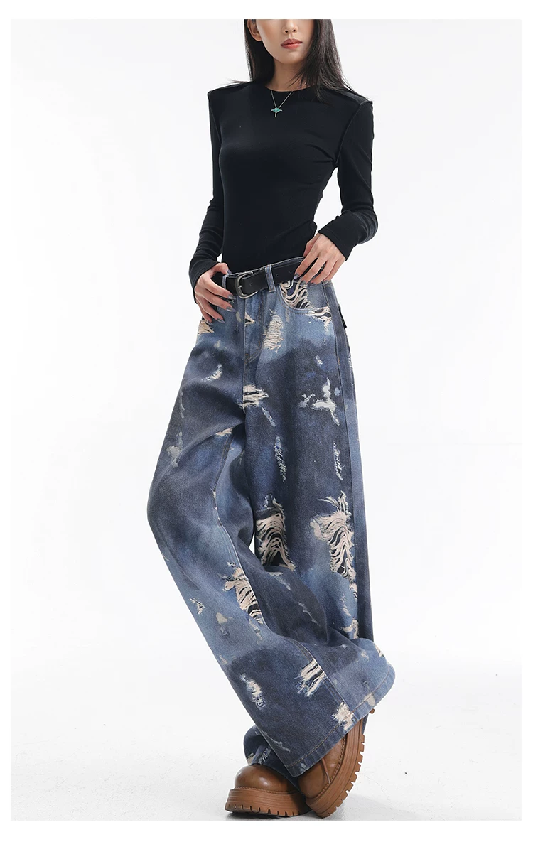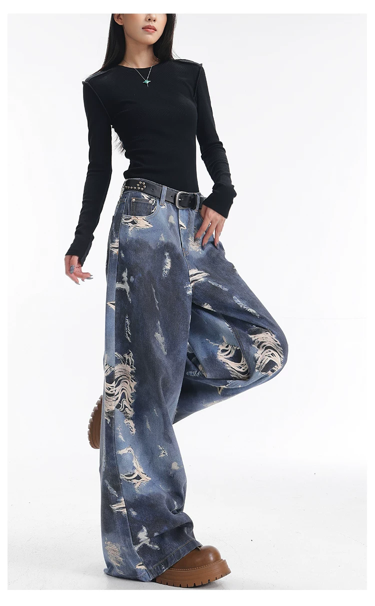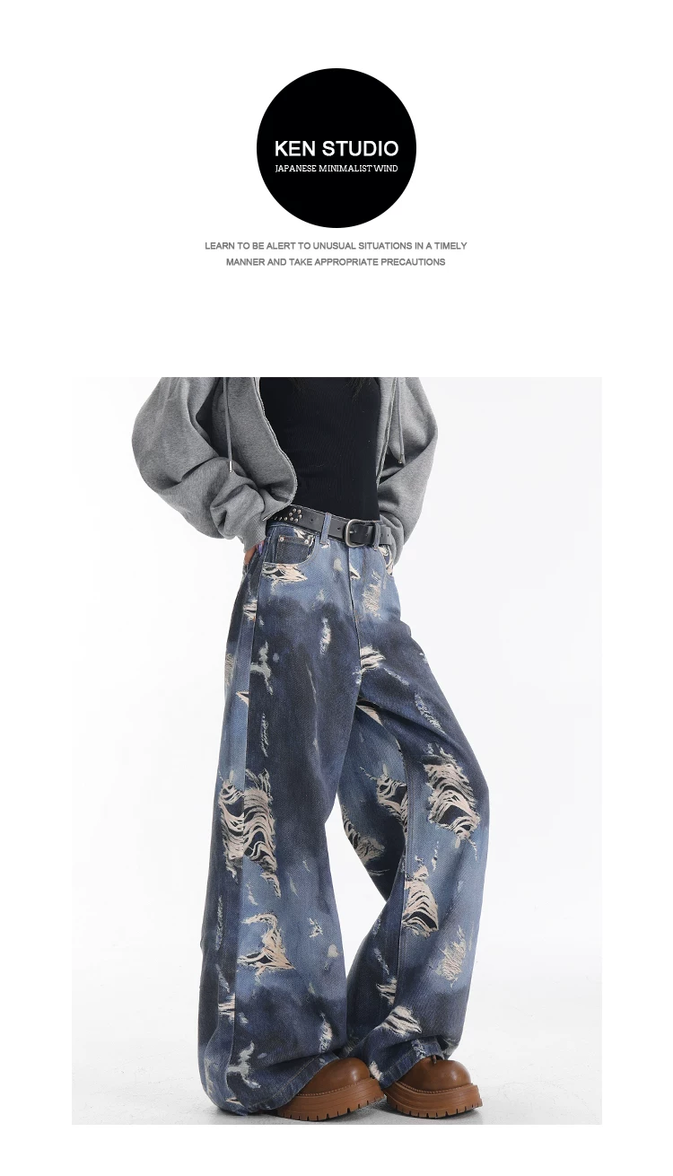 - KEN STUDIO quần jean ống rộng nhuộm màu theo phong cách cổ điển Mỹ mới dành cho nữ, quần dài dáng rộng và tôn dáng