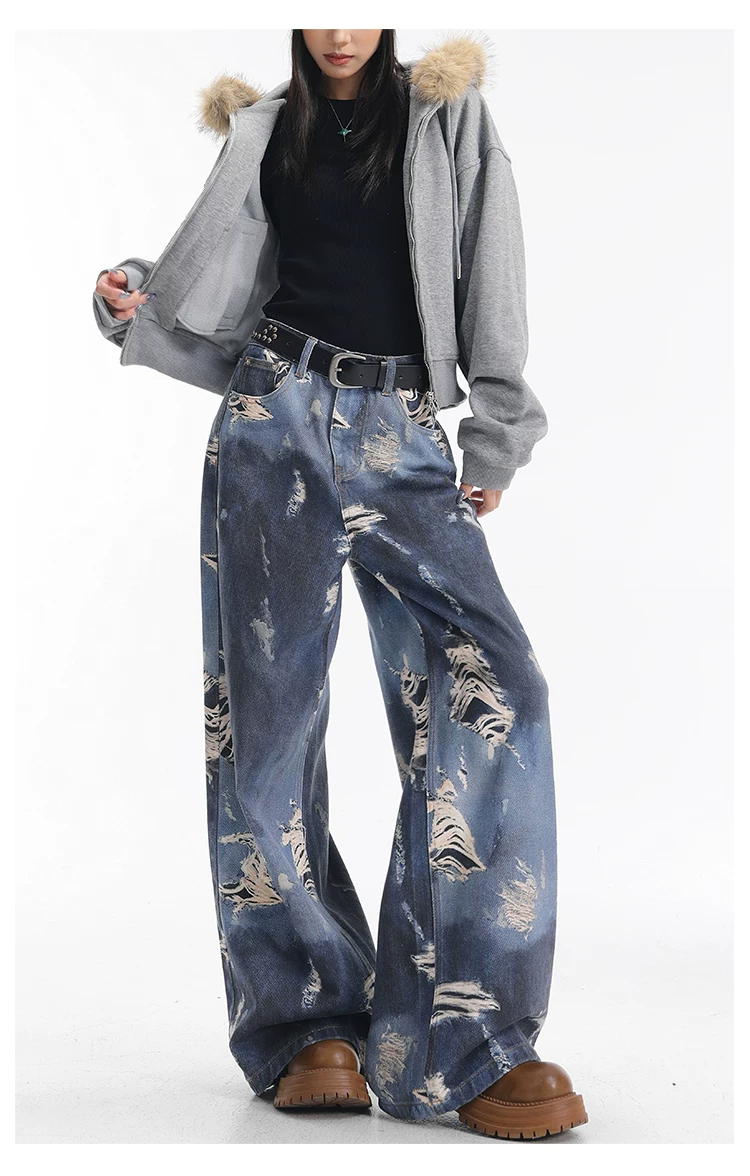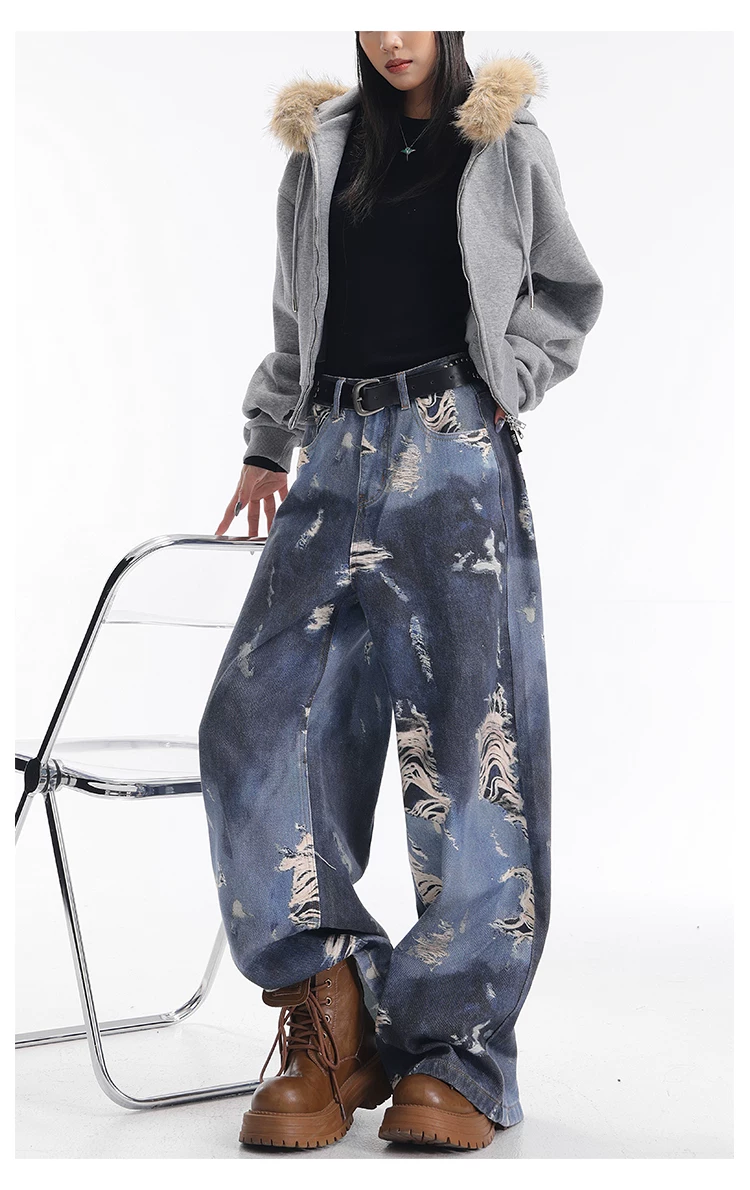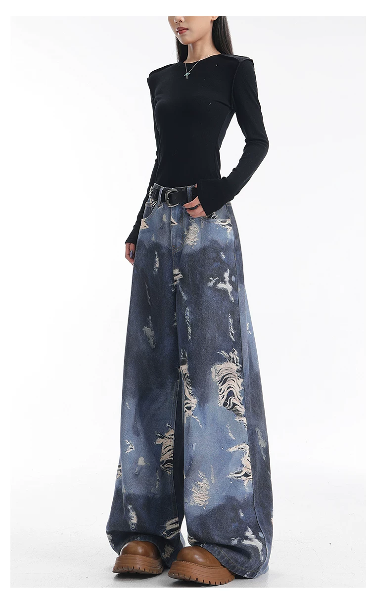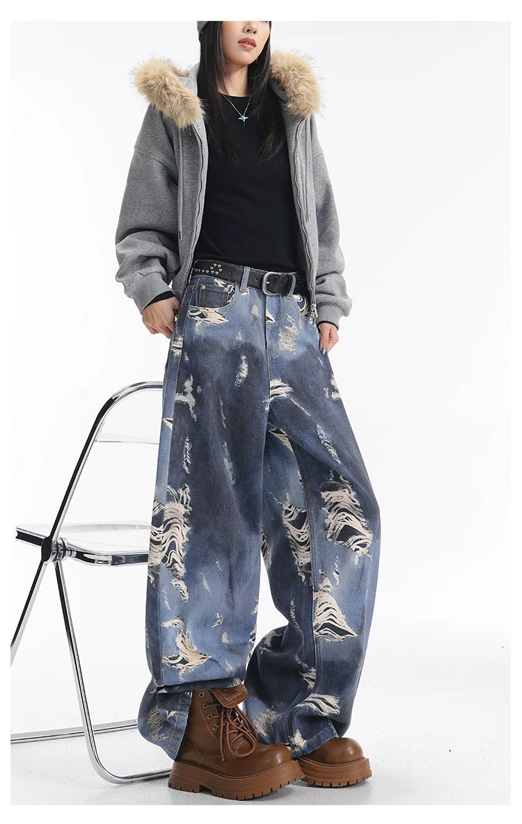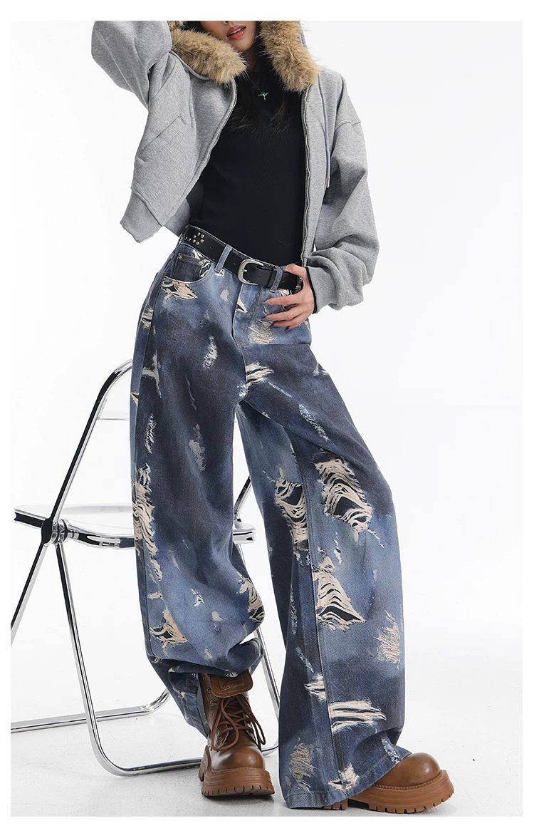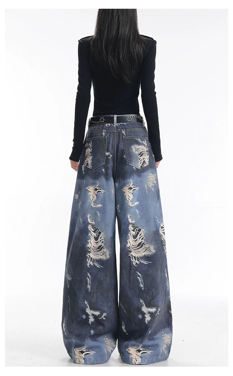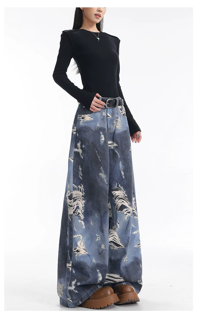- KEN STUDIO quần jean ống rộng nhuộm màu theo phong cách cổ điển Mỹ mới dành cho nữ, quần dài dáng rộng và tôn dáng