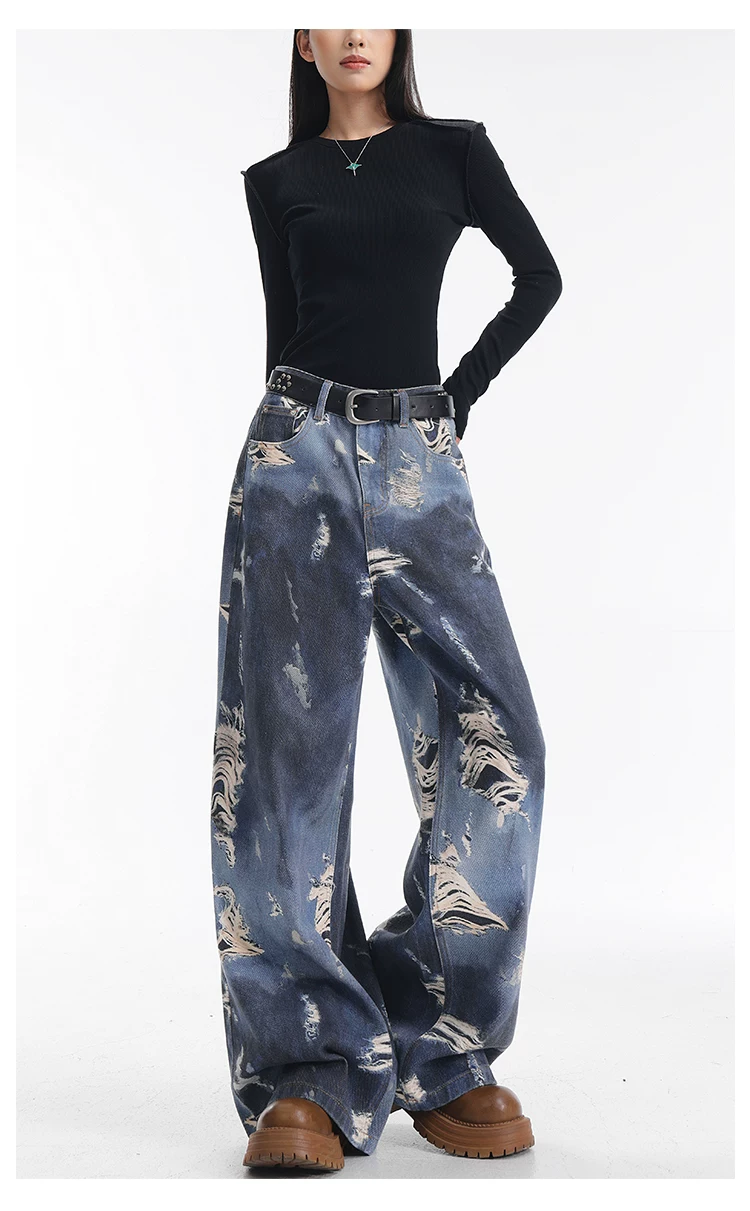 KEN STUDIO quần jean ống rộng nhuộm màu theo phong cách cổ điển Mỹ mới dành cho nữ, quần dài dáng rộng và tôn dáng