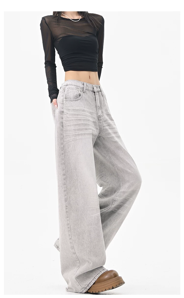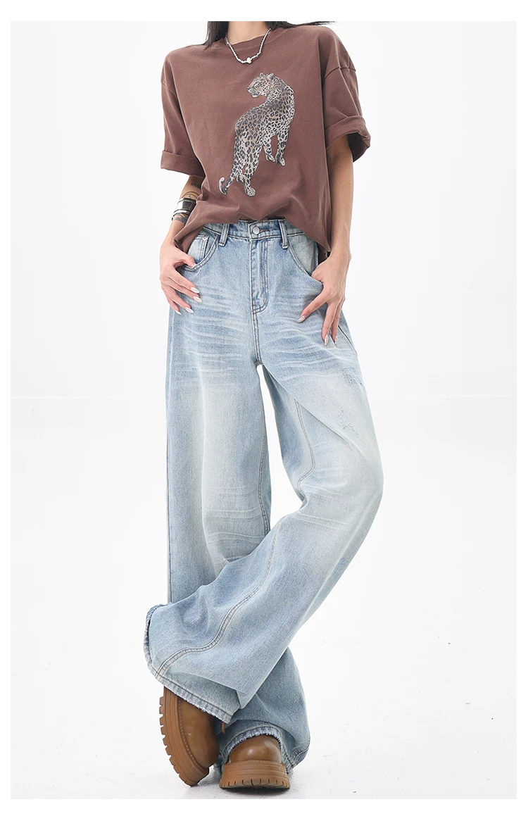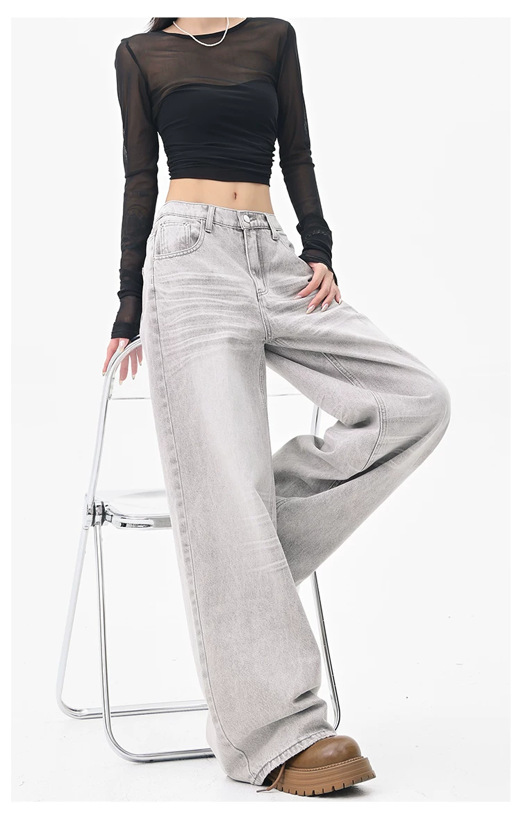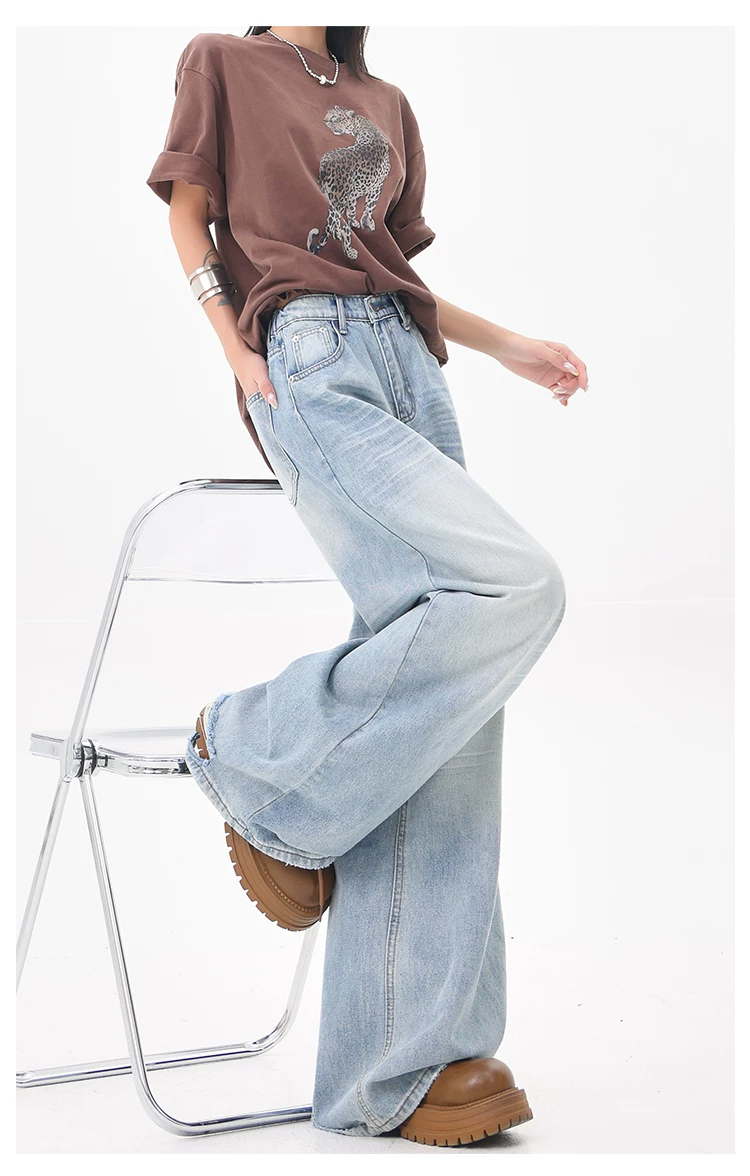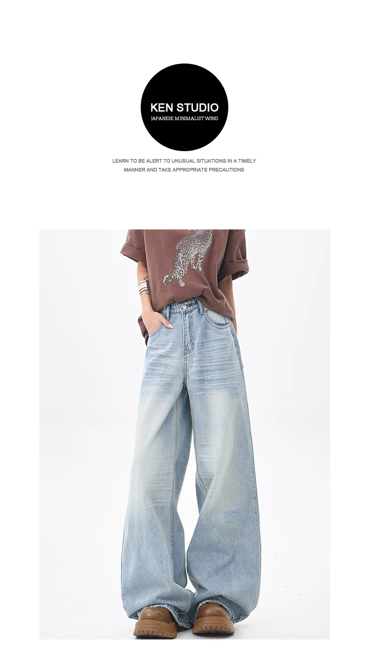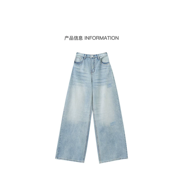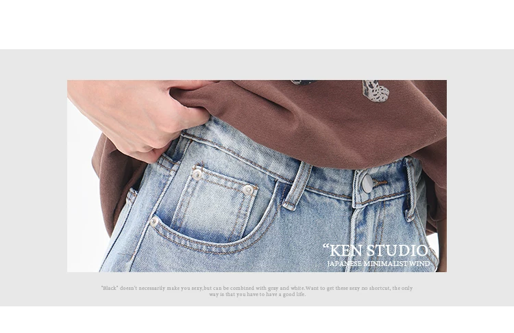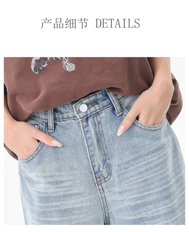 - KEN STUDIO Quần jean ống thẳng màu xanh cổ điển của Mỹ dành cho nữ, quần ống rộng cạp cao giảm béo mùa hè mới