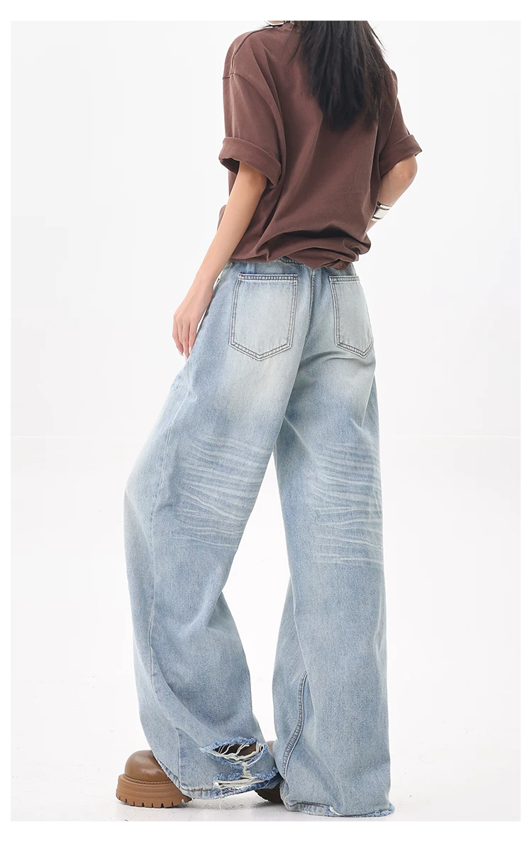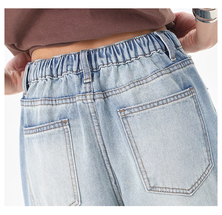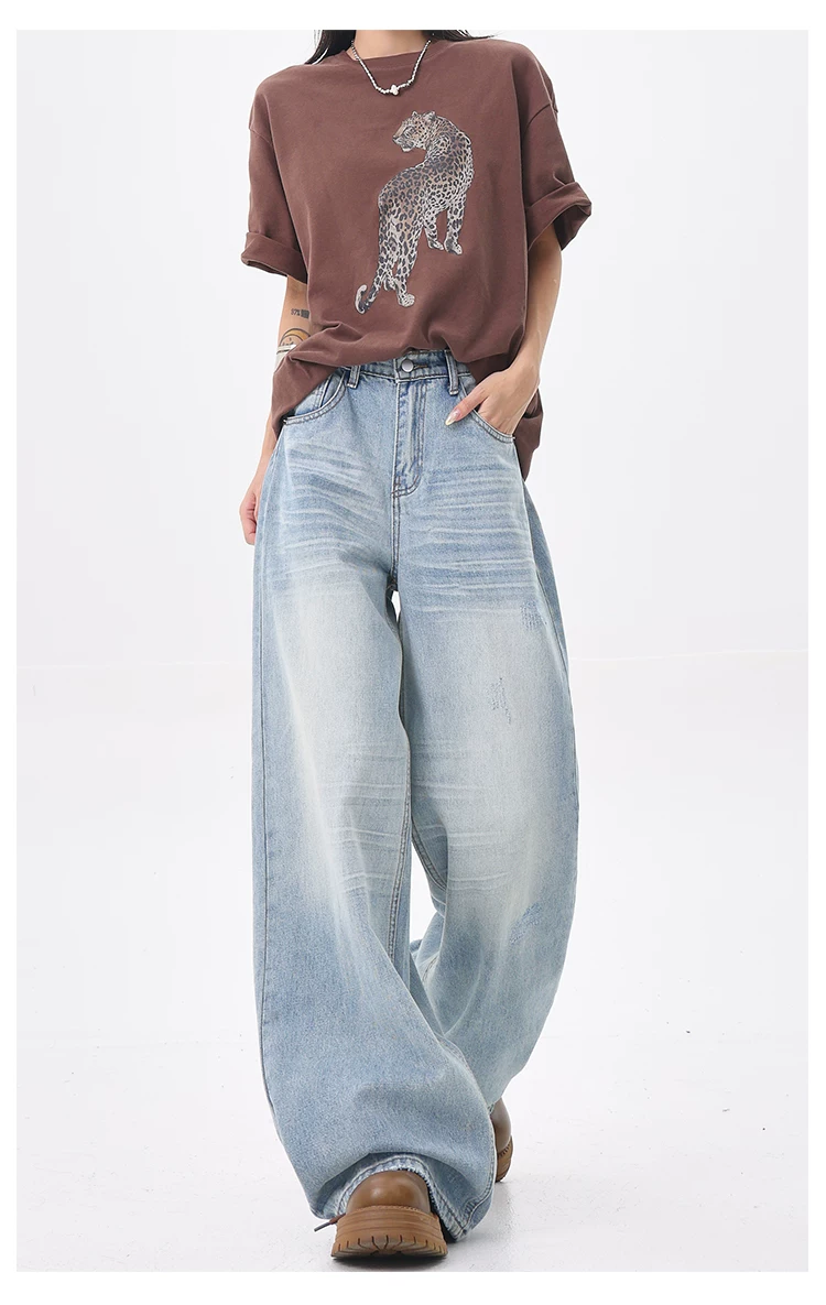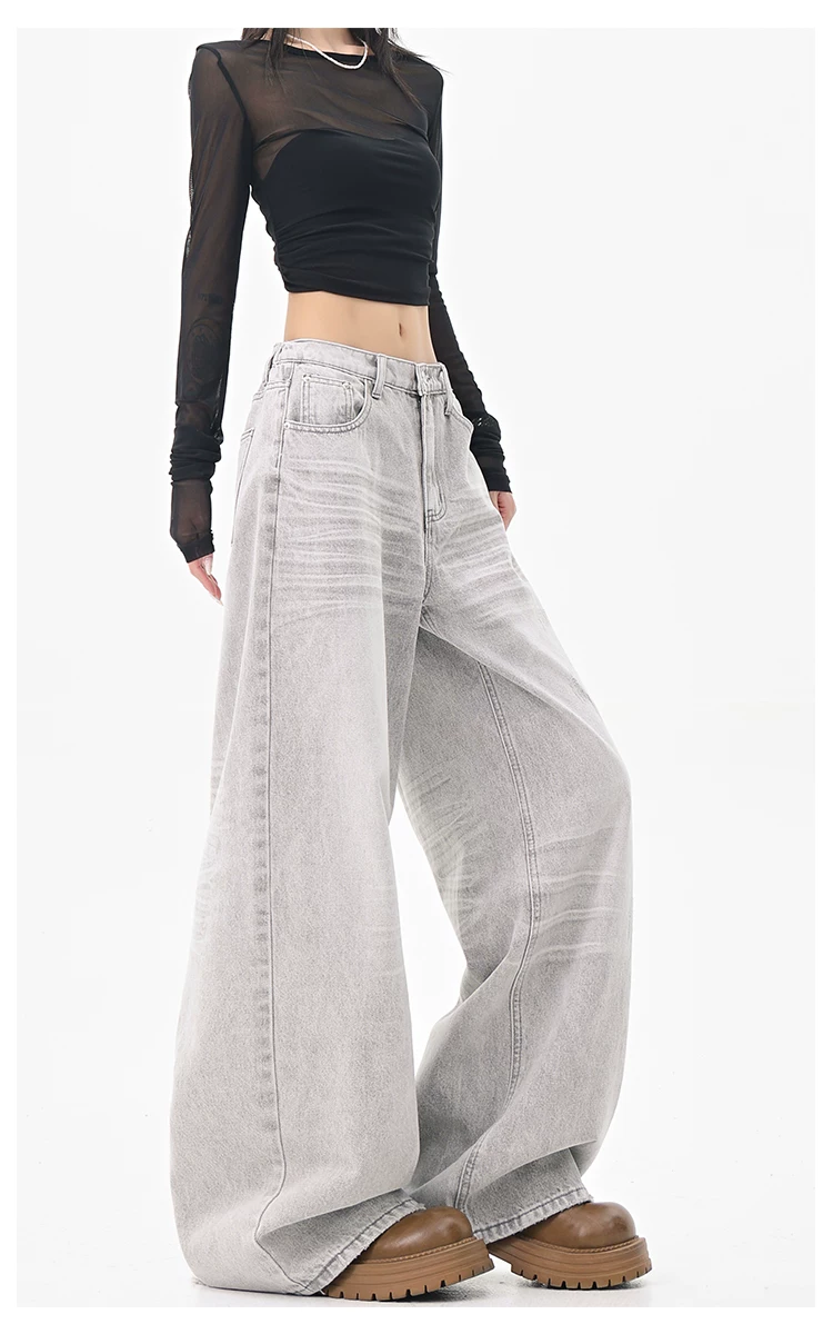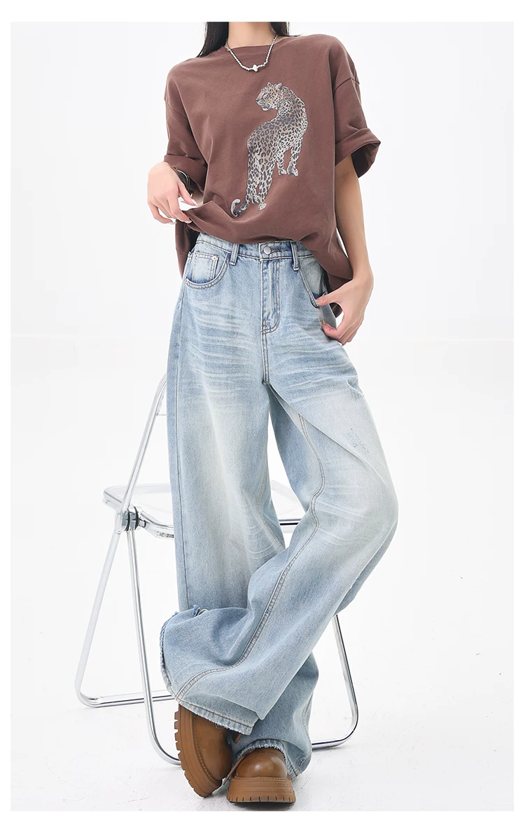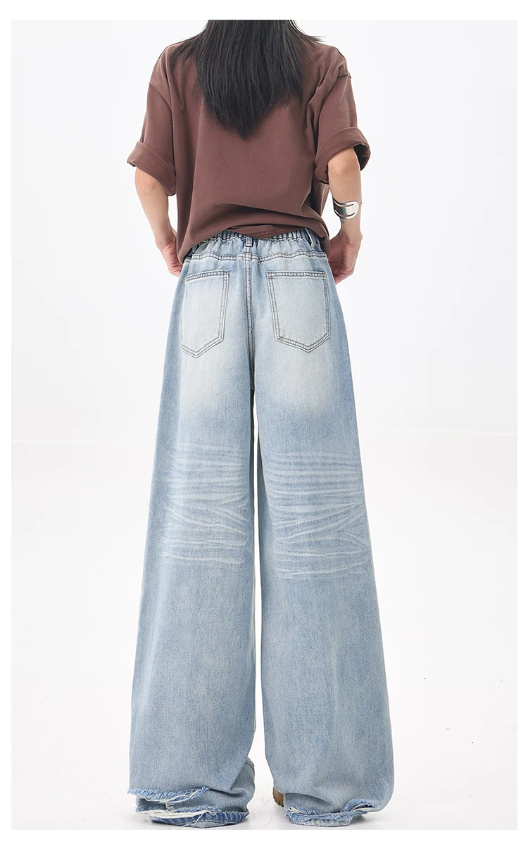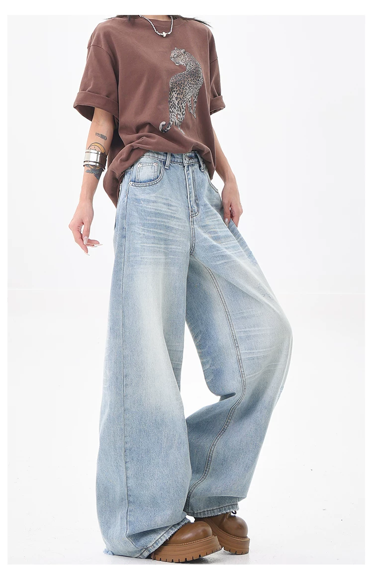 - KEN STUDIO Quần jean ống thẳng màu xanh cổ điển của Mỹ dành cho nữ, quần ống rộng cạp cao giảm béo mùa hè mới