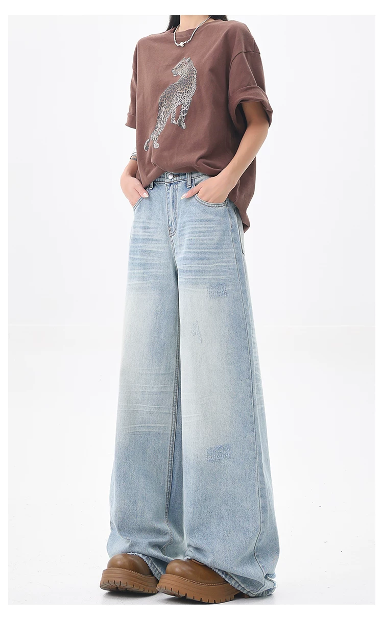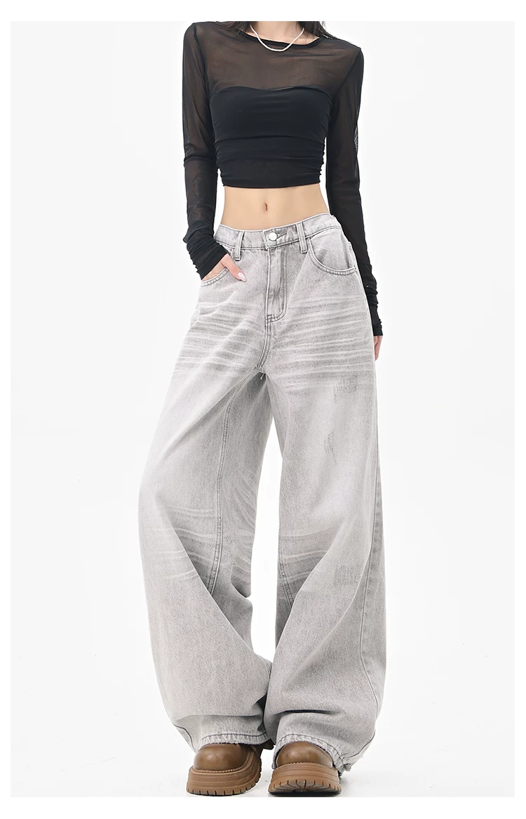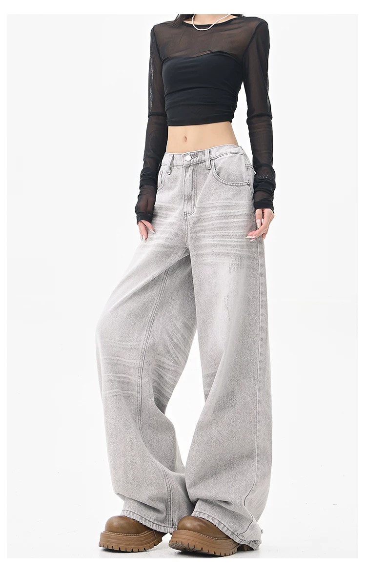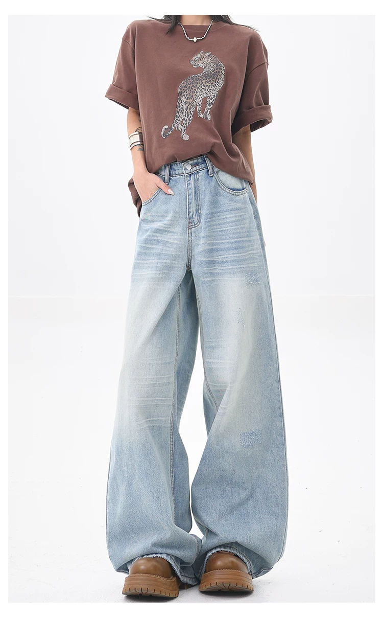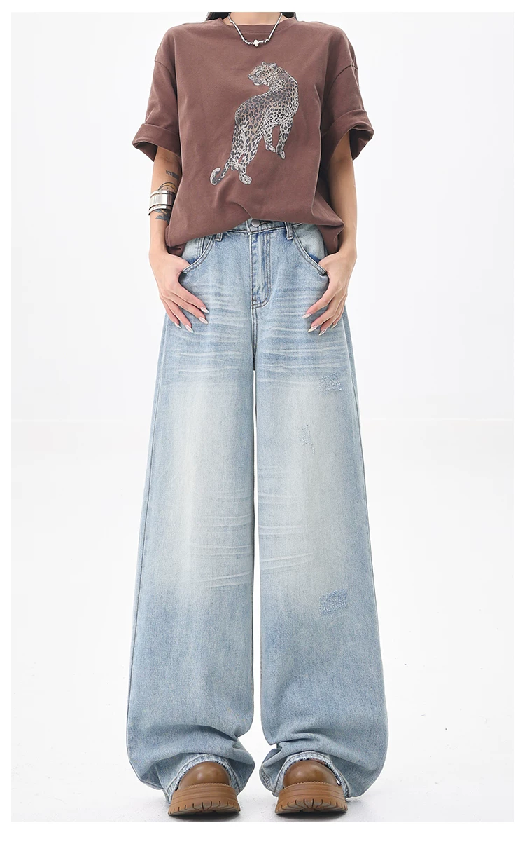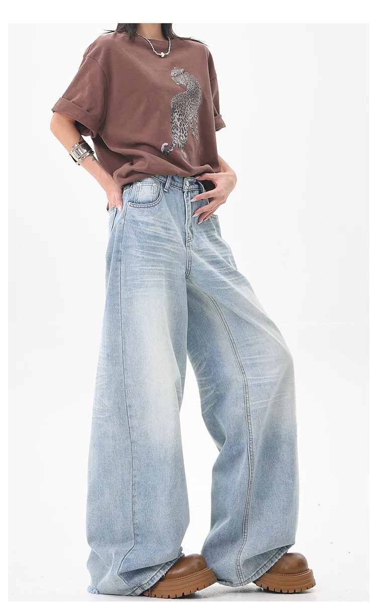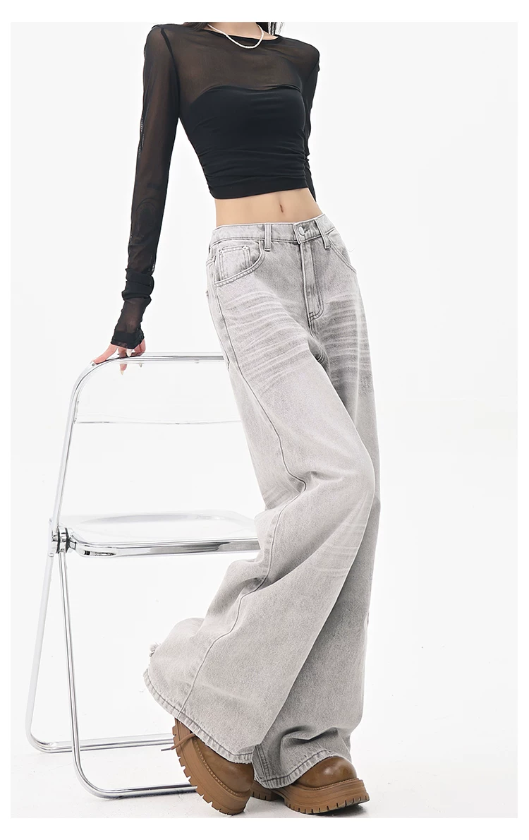 - KEN STUDIO Quần jean ống thẳng màu xanh cổ điển của Mỹ dành cho nữ, quần ống rộng cạp cao giảm béo mùa hè mới