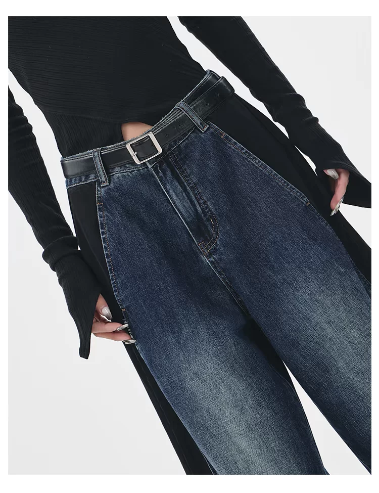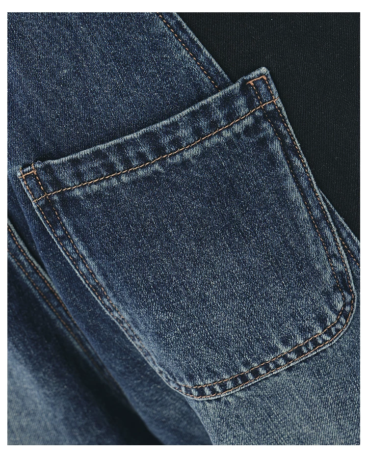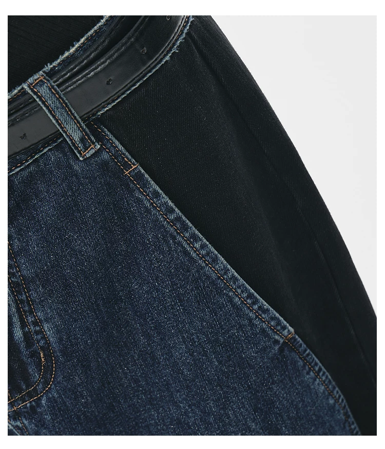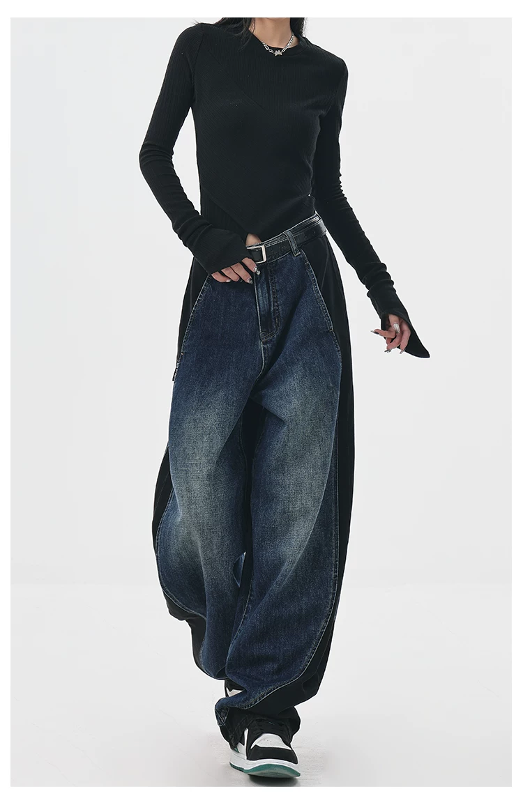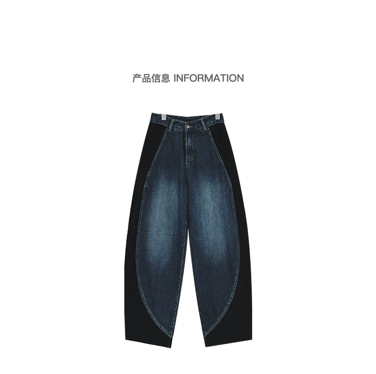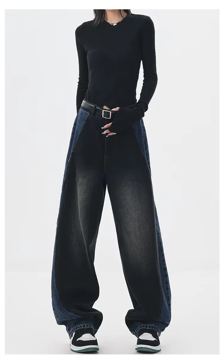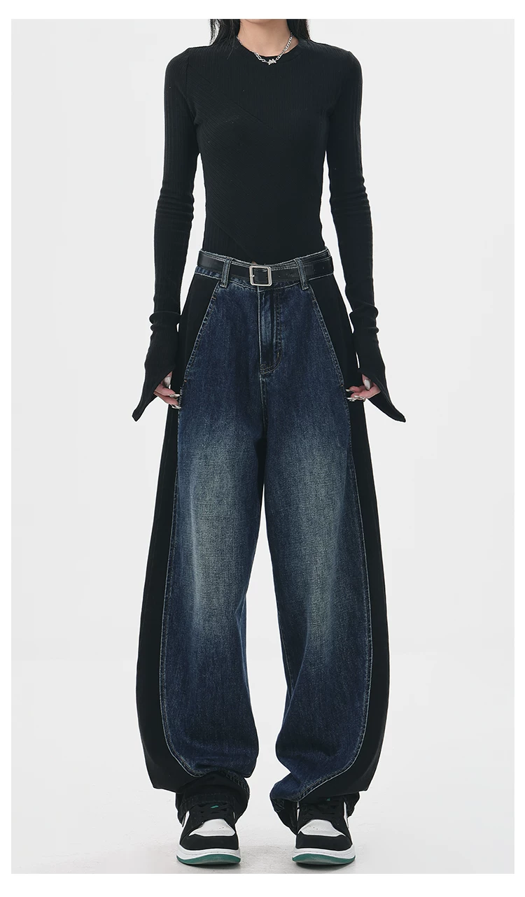 - KEN STUDIO quần jean phối màu chắp vá mùa thu đông mới dành cho nữ, quần ống rộng dáng rộng sành điệu, quần chuối