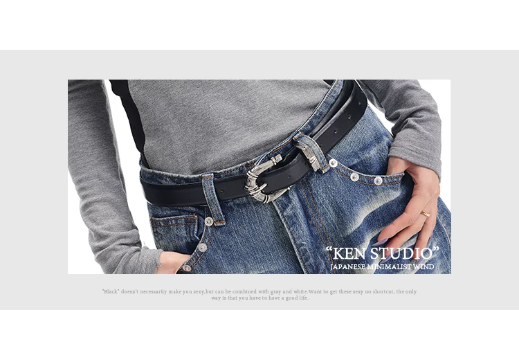 KEN STUDIO quần jean xanh có râu phong cách retro mới mùa thu đông dành cho nữ, quần ống rộng đa năng giảm béo ba chiều