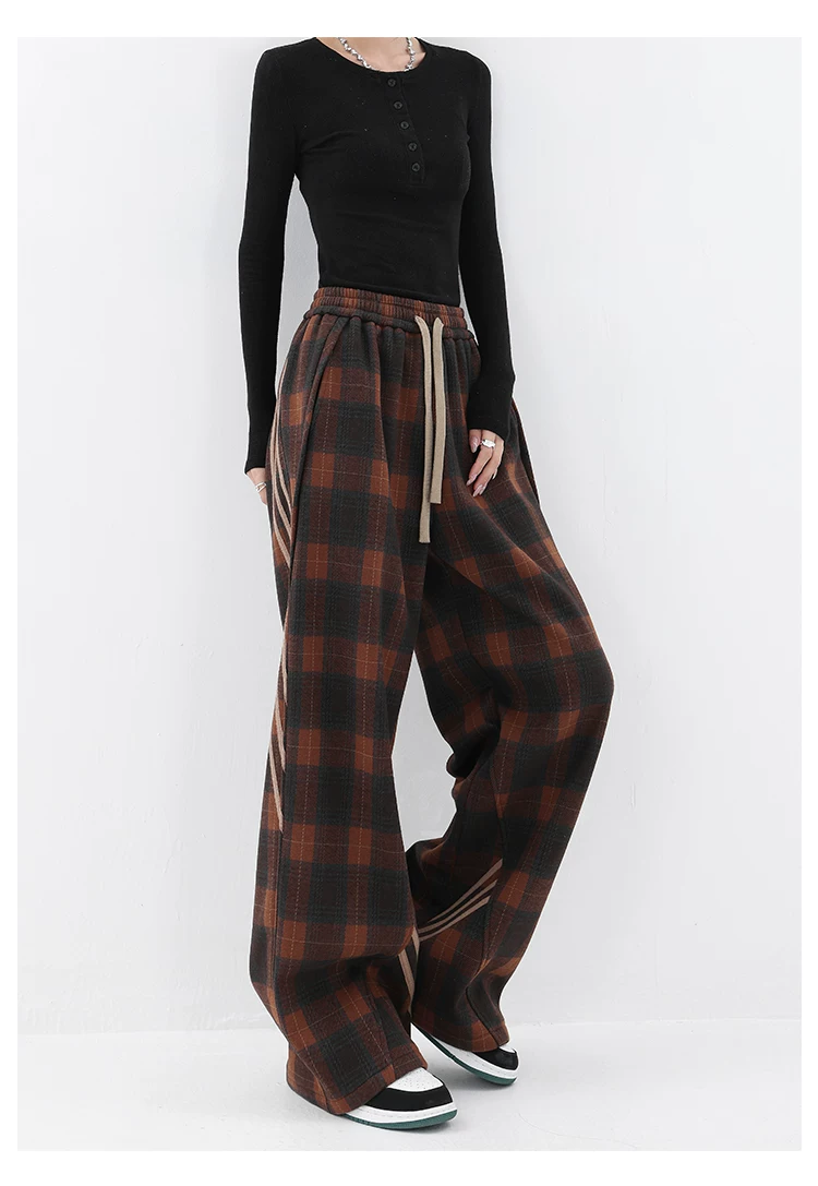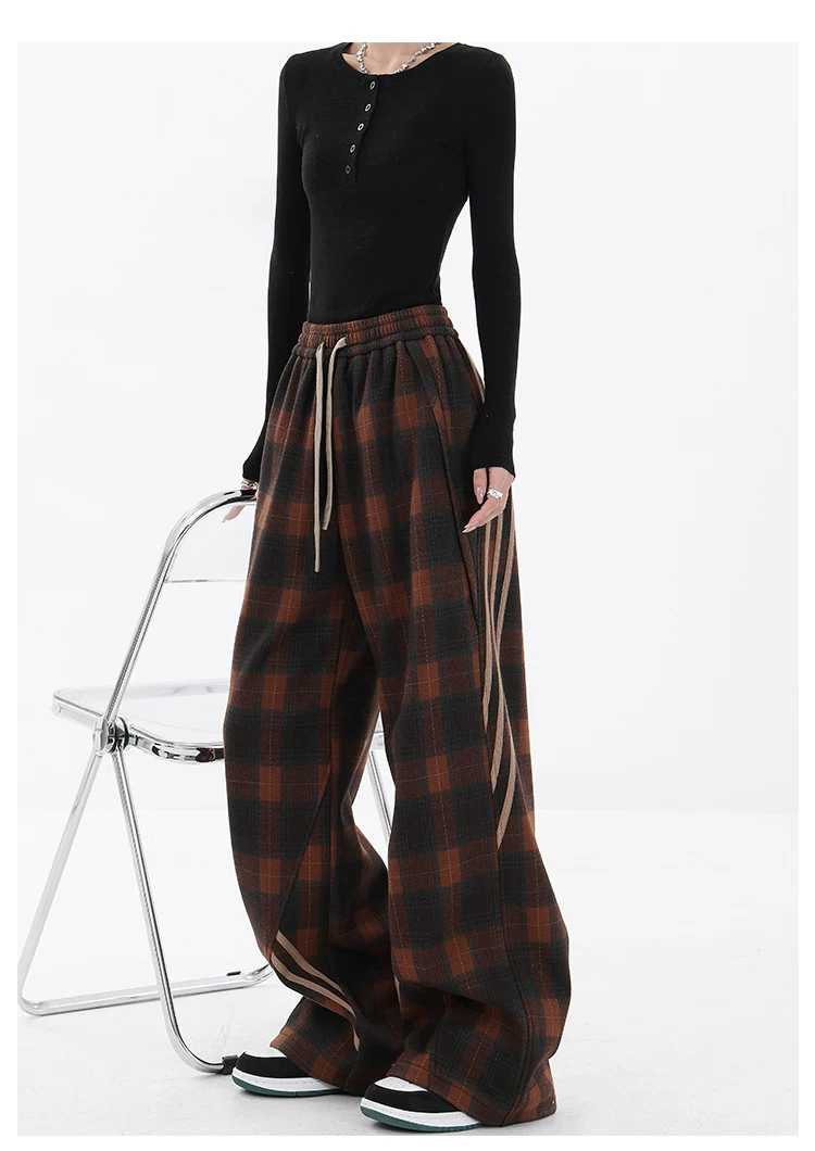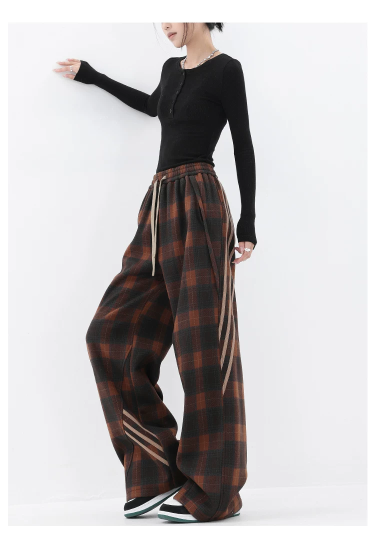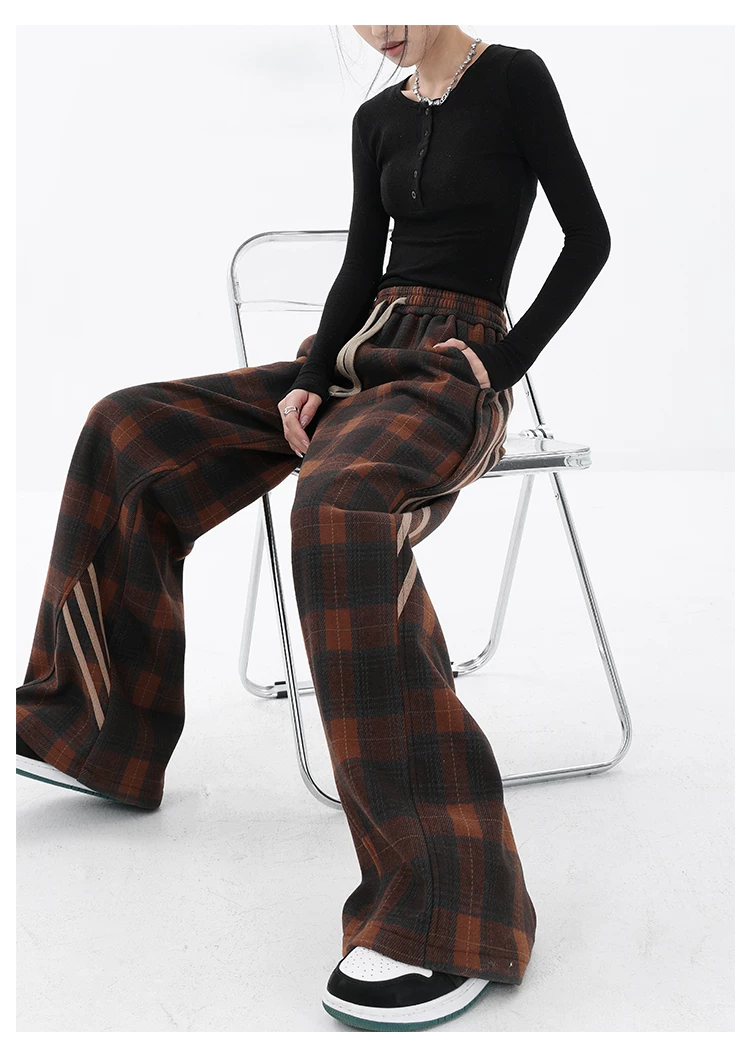 - KEN STUDIO quần kẻ sọc giản dị theo phong cách retro mới mùa thu đông dành cho nữ với thiết kế màu sắc tương phản quần ống rộng thẳng