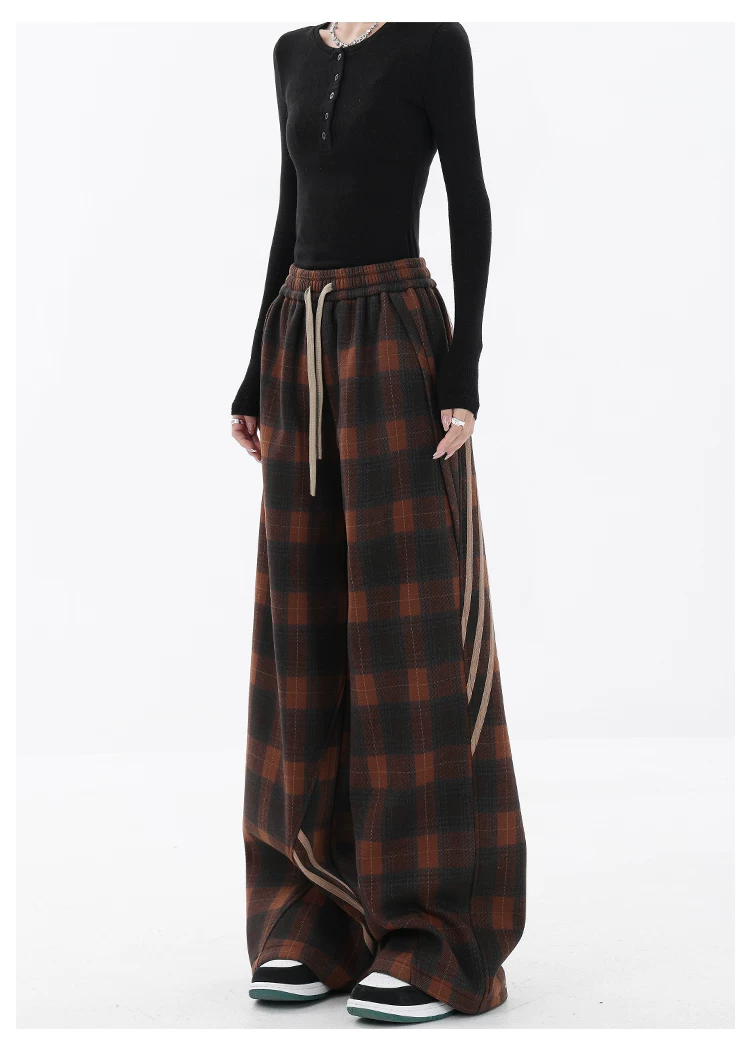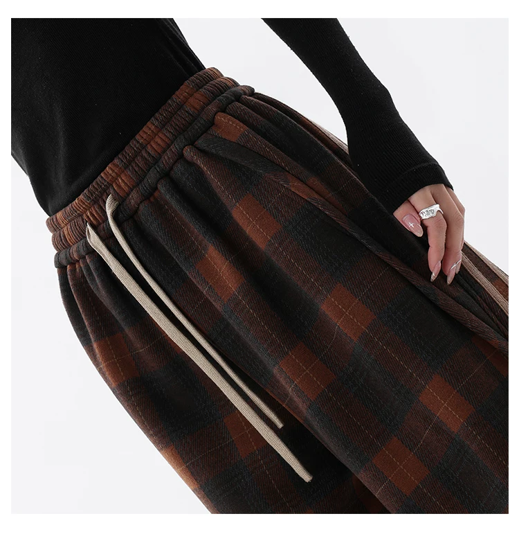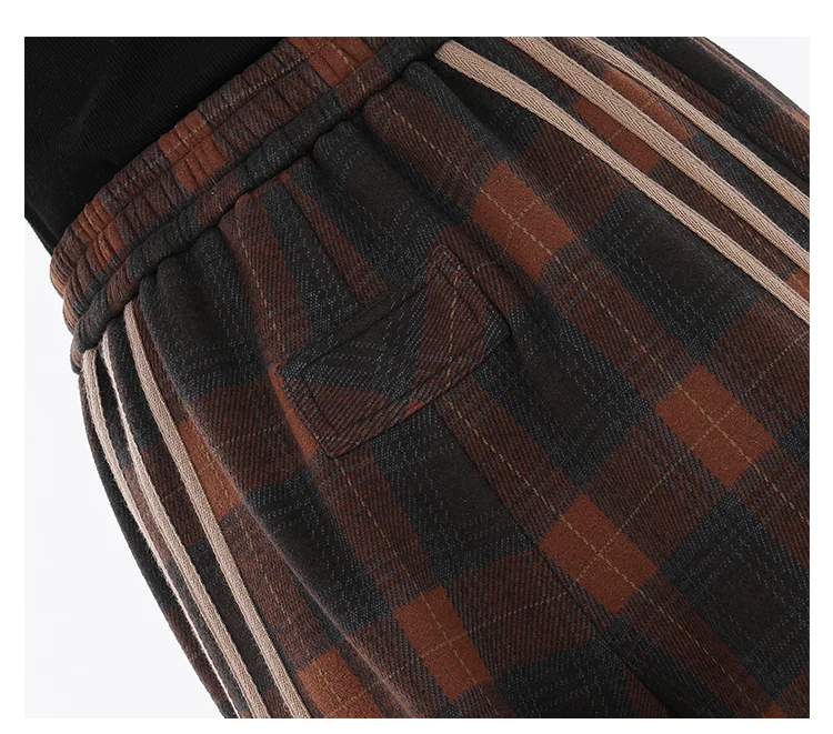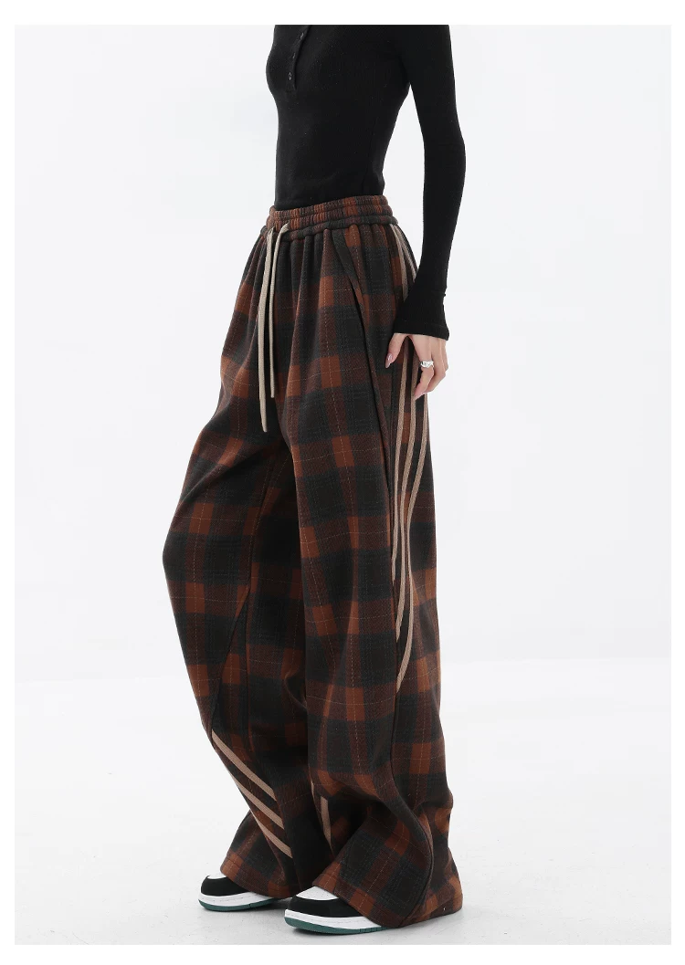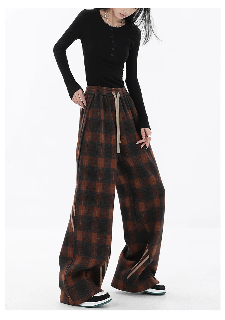- KEN STUDIO quần kẻ sọc giản dị theo phong cách retro mới mùa thu đông dành cho nữ với thiết kế màu sắc tương phản quần ống rộng thẳng