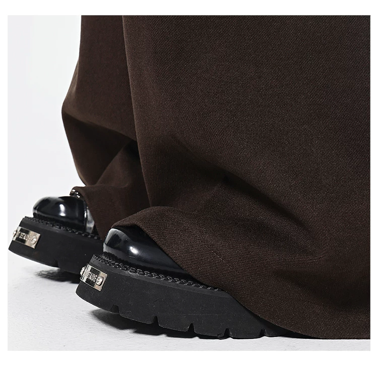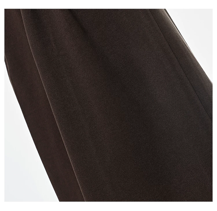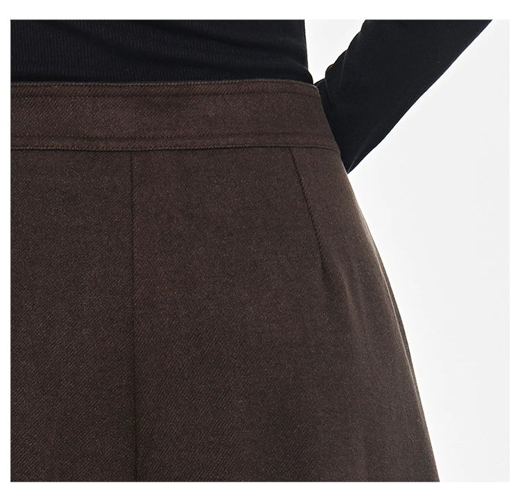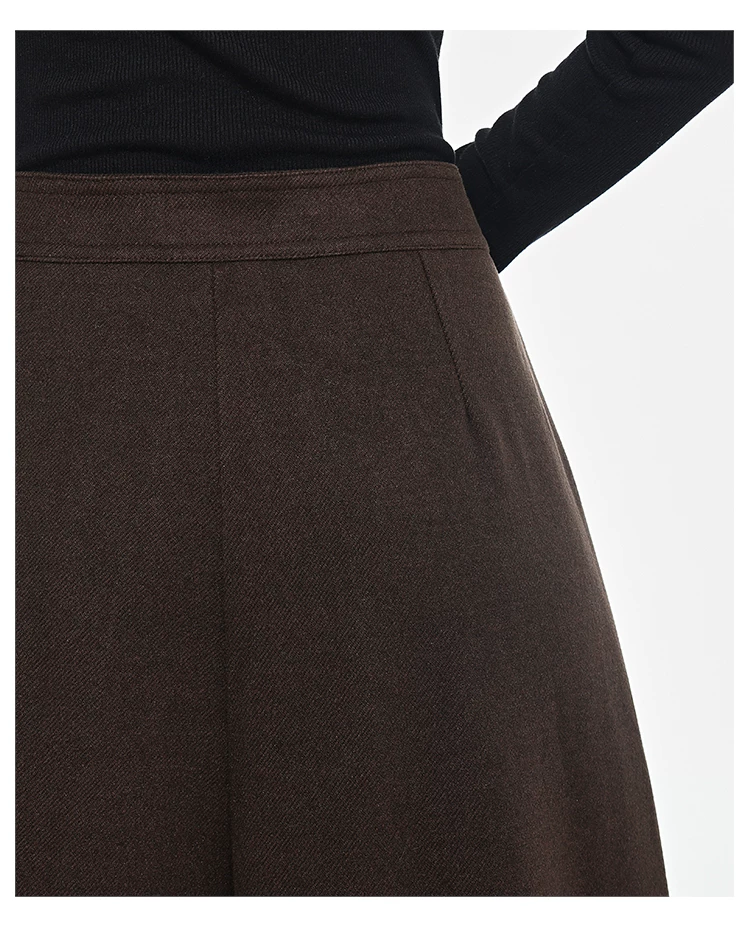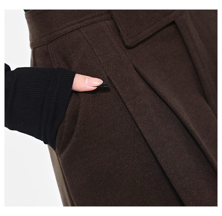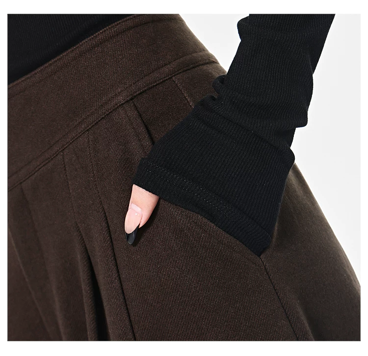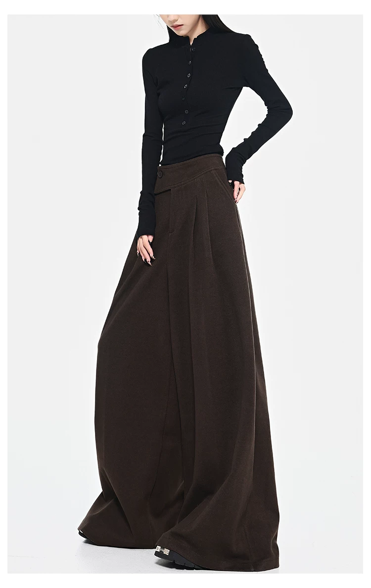 - KEN STUDIO Quần len dày màu cà phê mới dành cho nữ mùa thu đông, quần ống rộng thiết kế nút chéo phong cách Melard