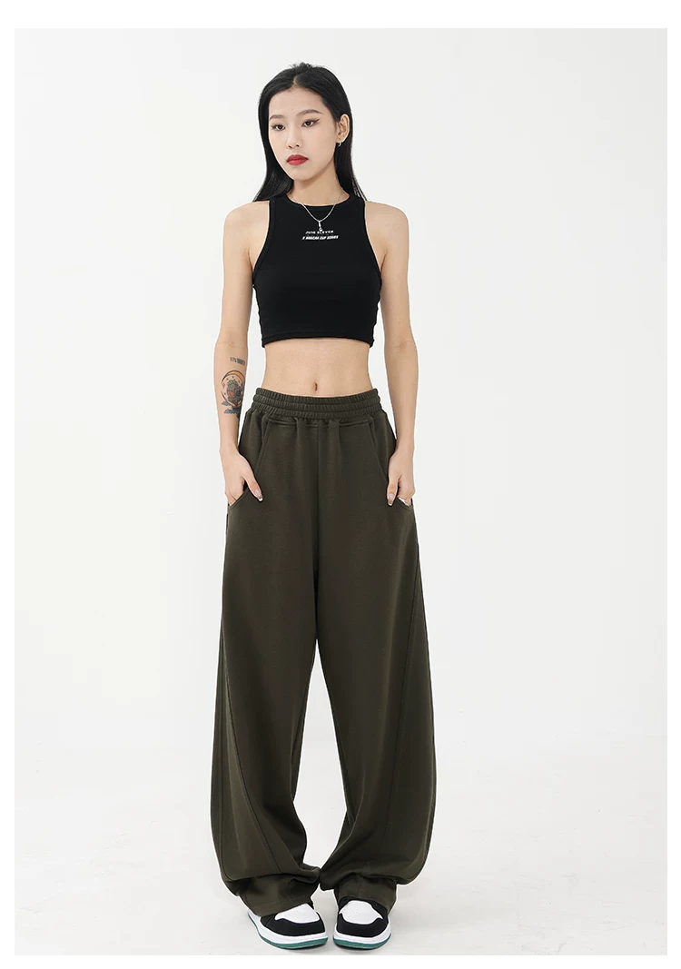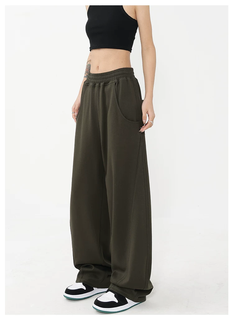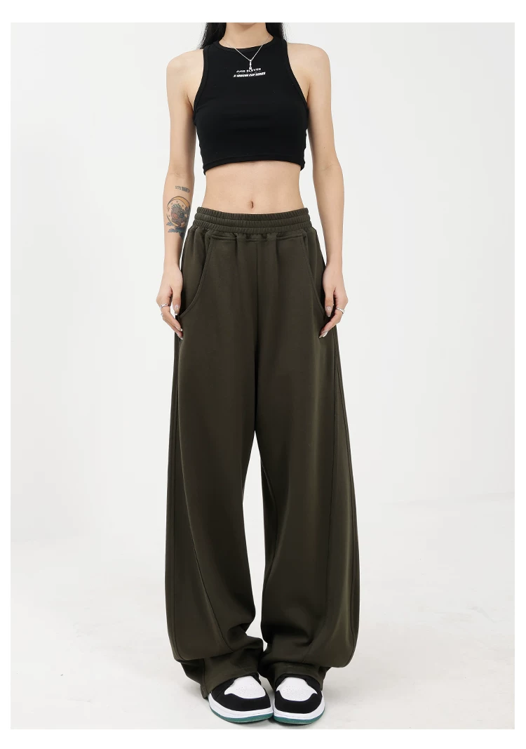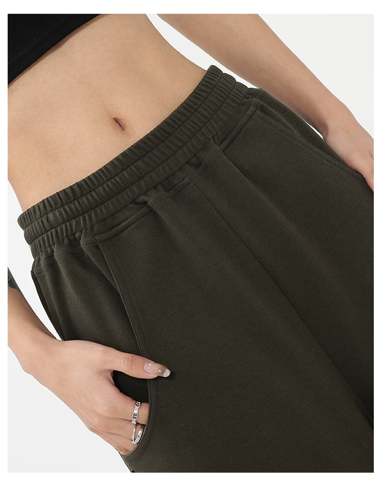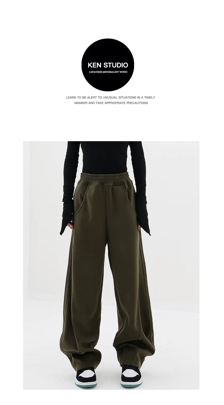 - KEN STUDIO quần mùa thu đông dày dặn kiểu dáng lưỡi liềm quần thể thao nữ giữ ấm quần thể thao ống rộng quần thường ngày