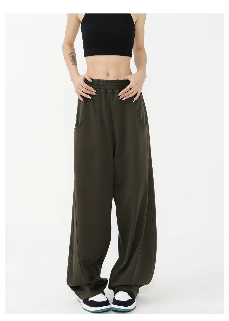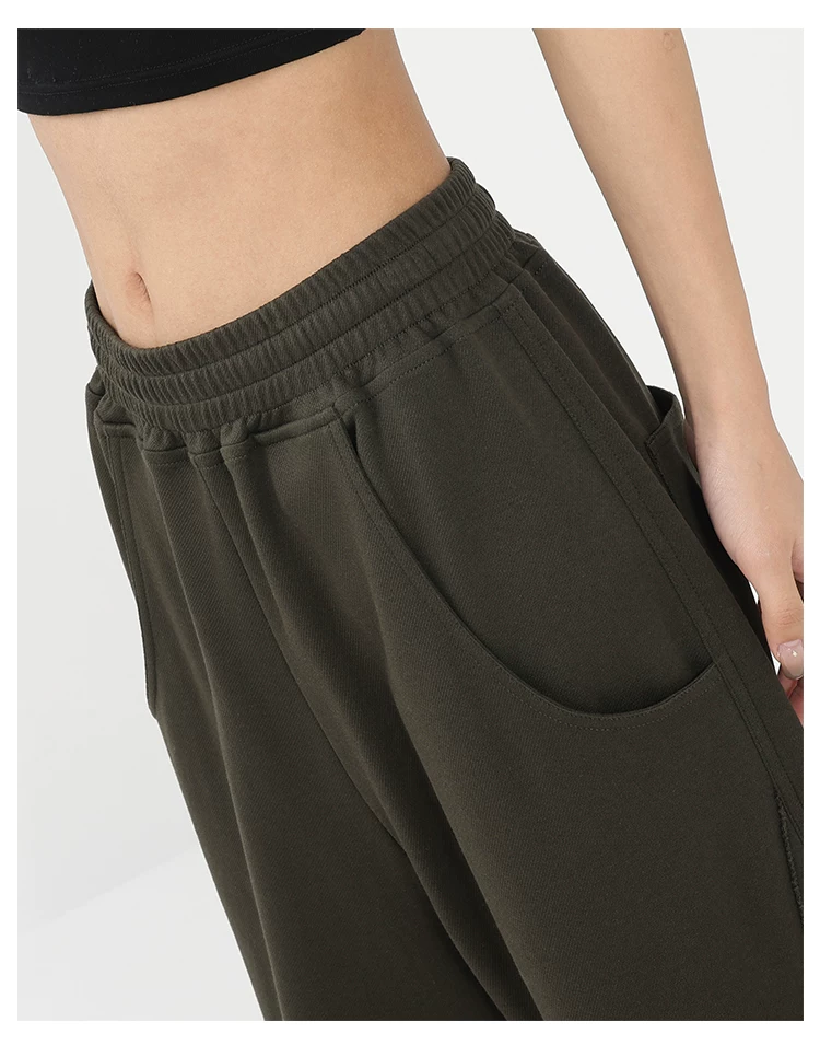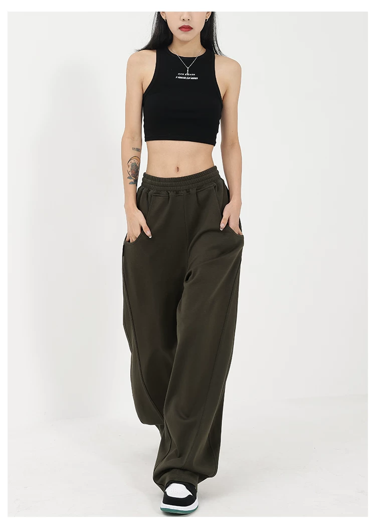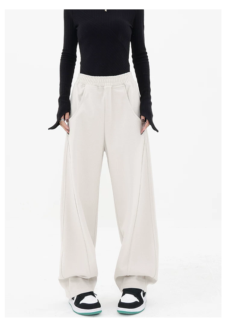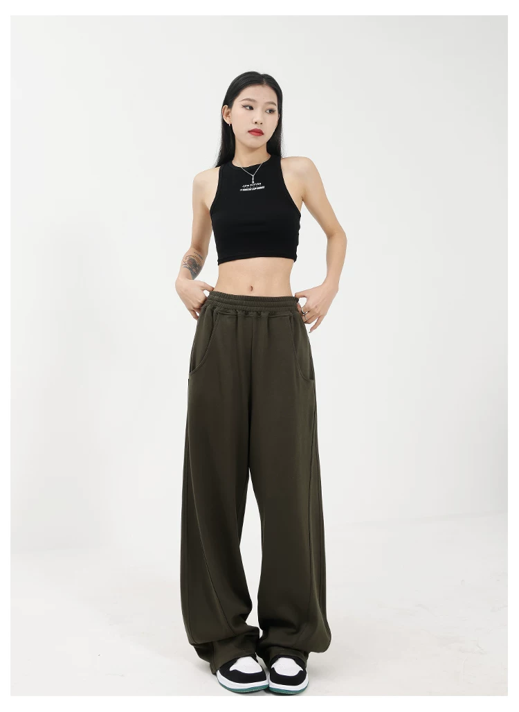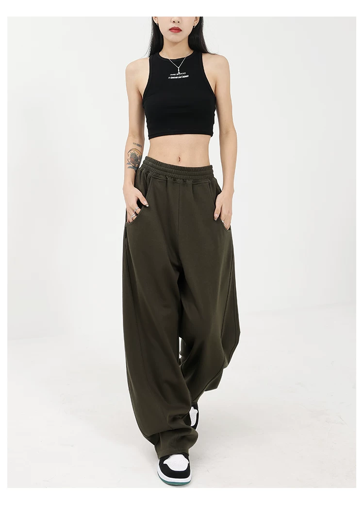 - KEN STUDIO quần mùa thu đông dày dặn kiểu dáng lưỡi liềm quần thể thao nữ giữ ấm quần thể thao ống rộng quần thường ngày