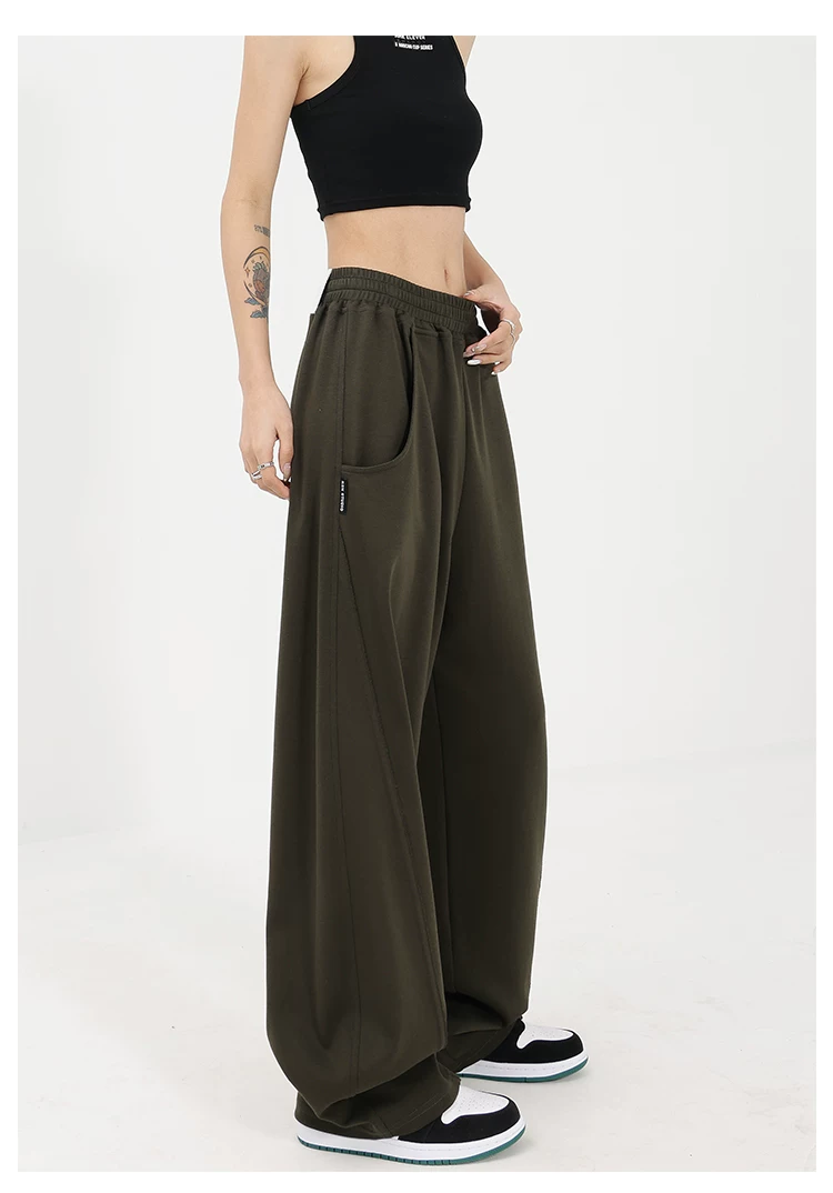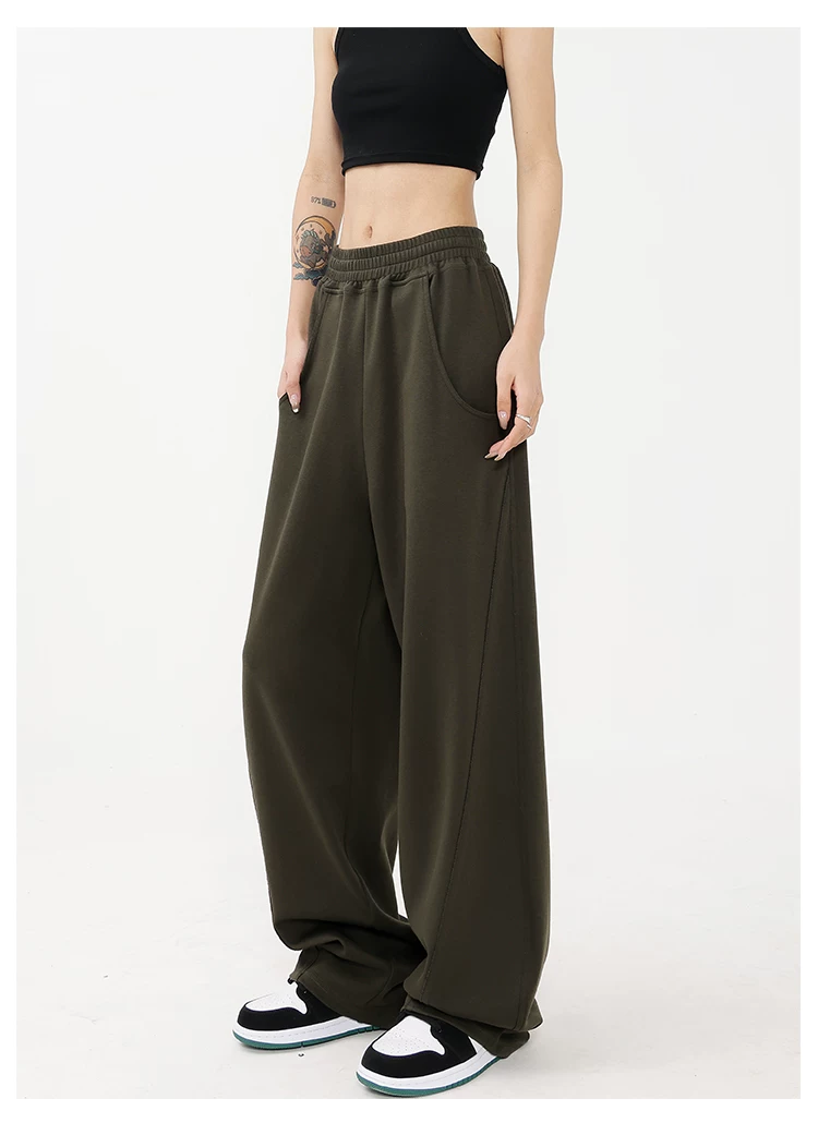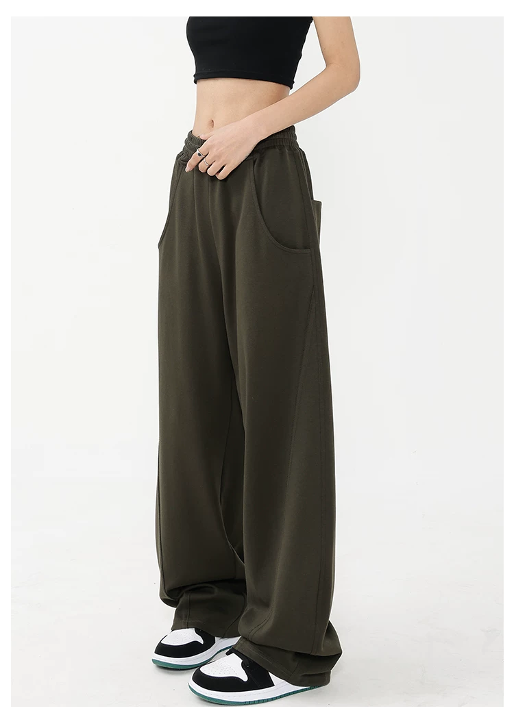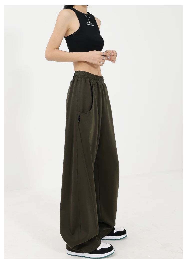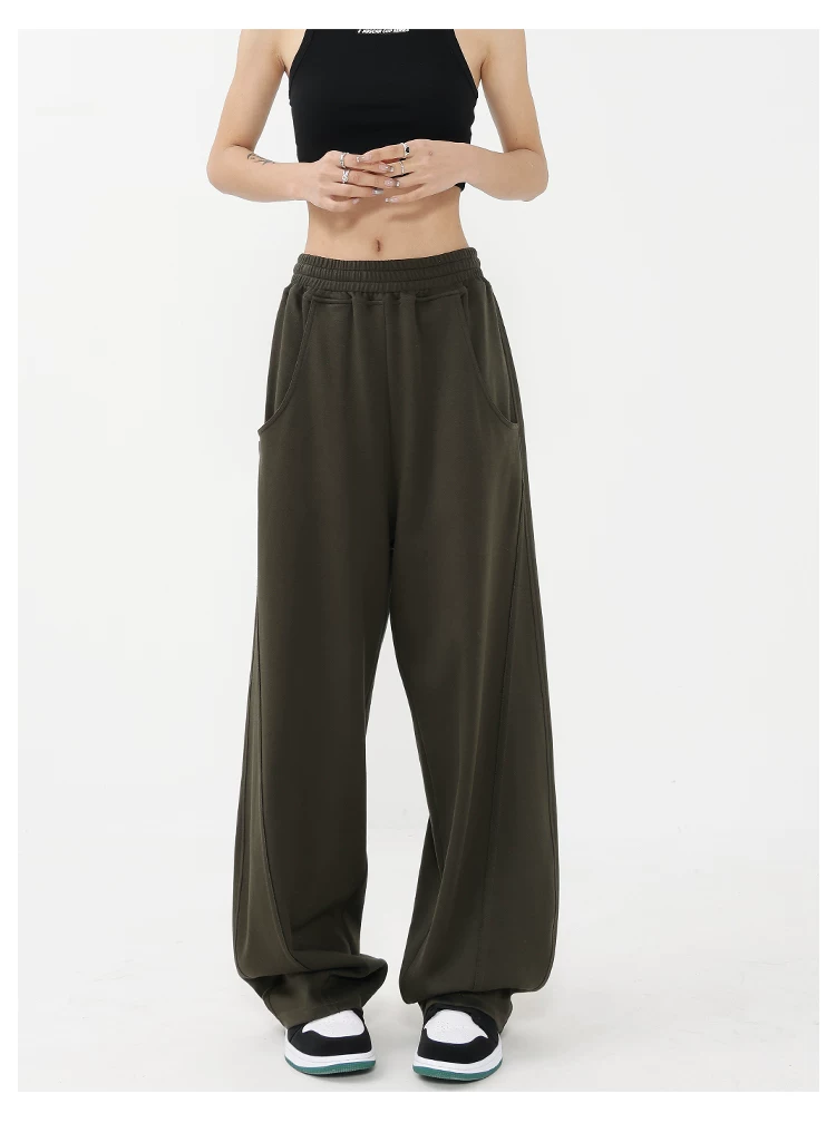 - KEN STUDIO quần mùa thu đông dày dặn kiểu dáng lưỡi liềm quần thể thao nữ giữ ấm quần thể thao ống rộng quần thường ngày