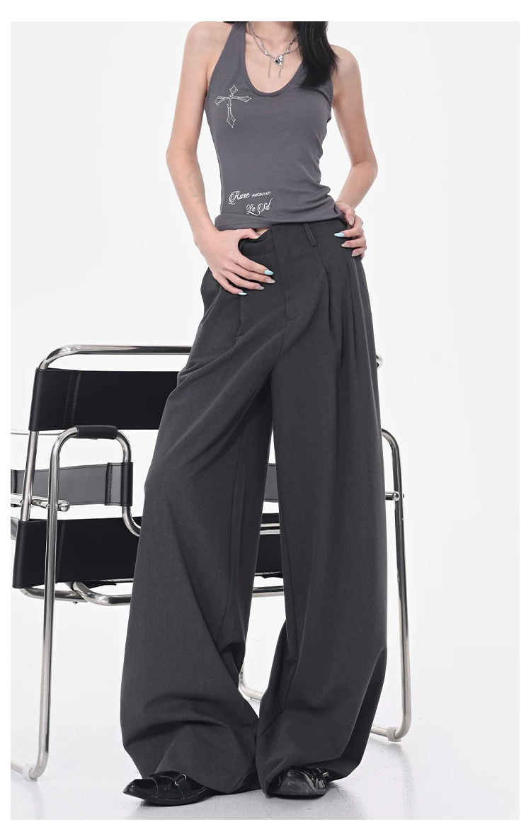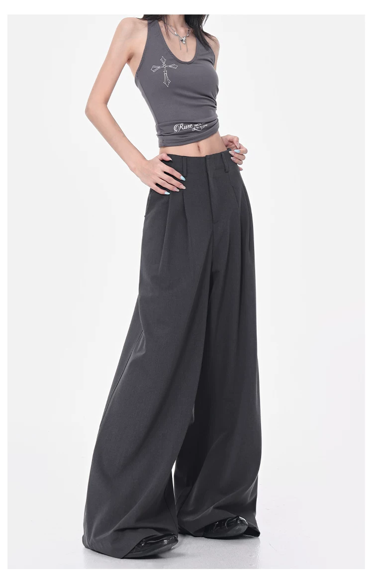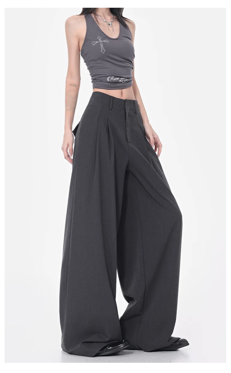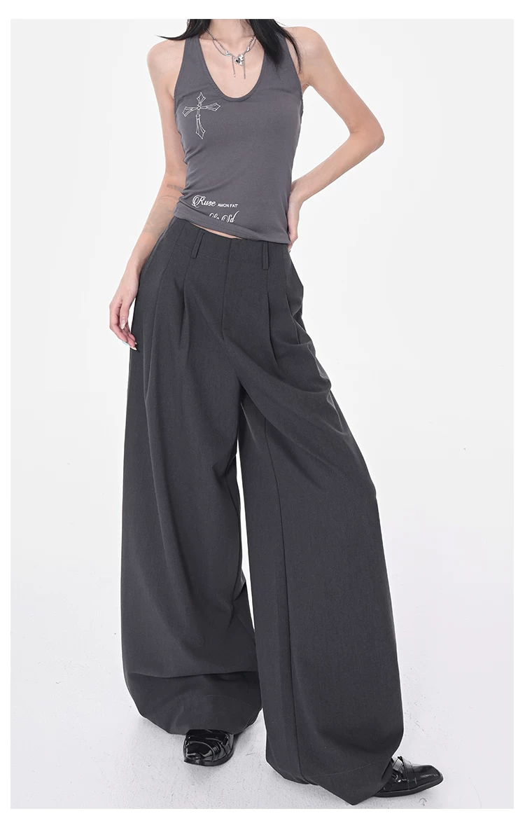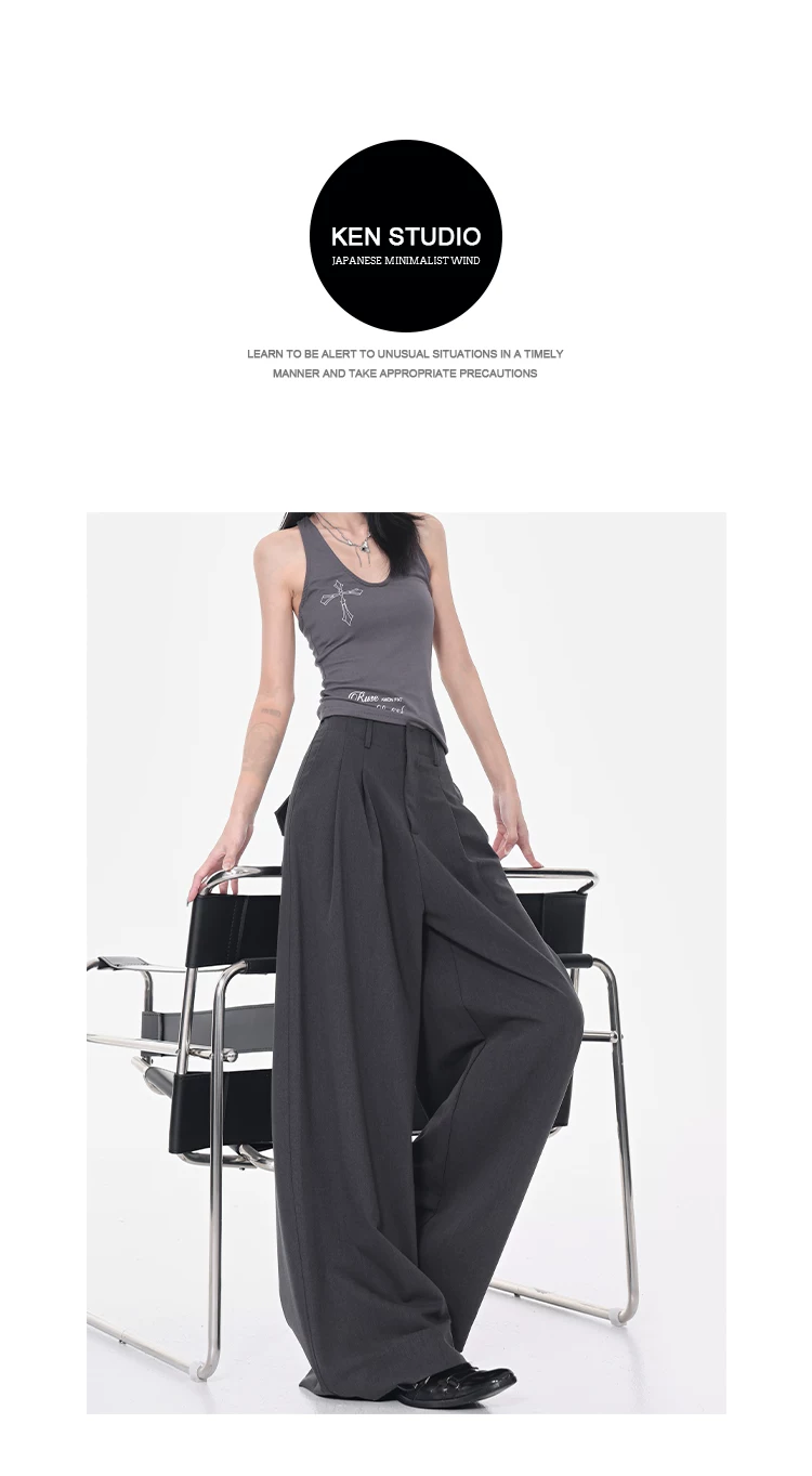 - KEN STUDIO quần ống rộng đa năng đầu thu dành cho nữ, quần xếp ly dáng rộng, quần thường ngày