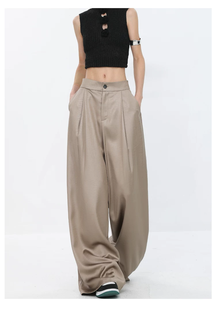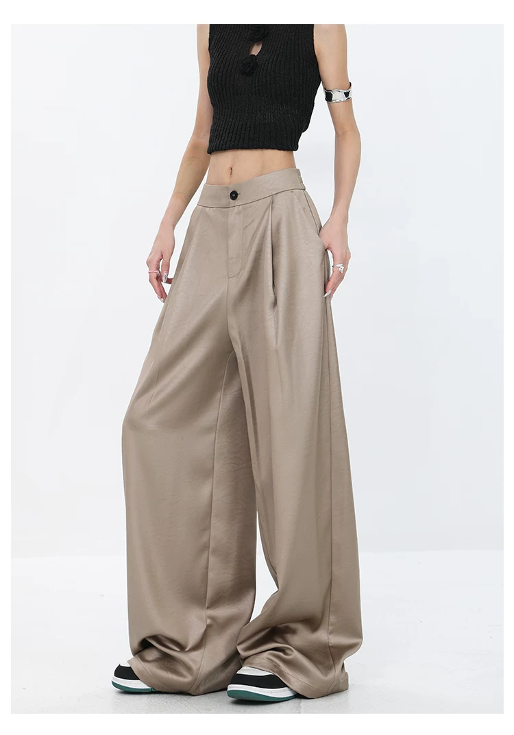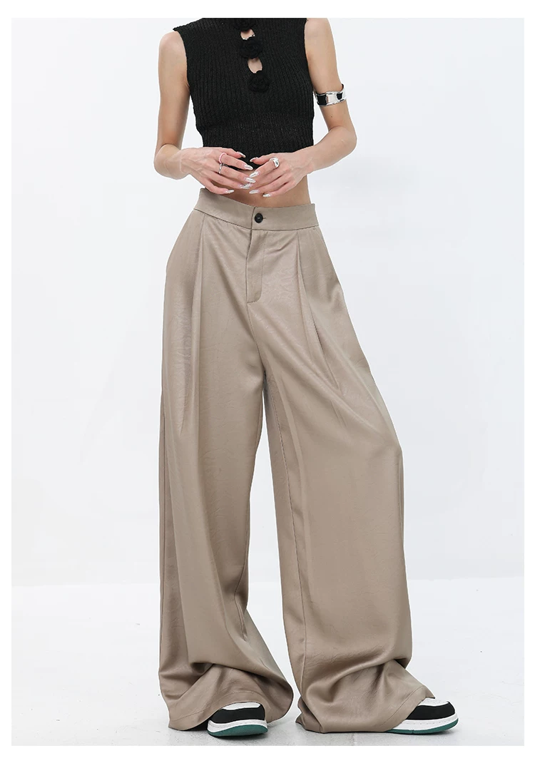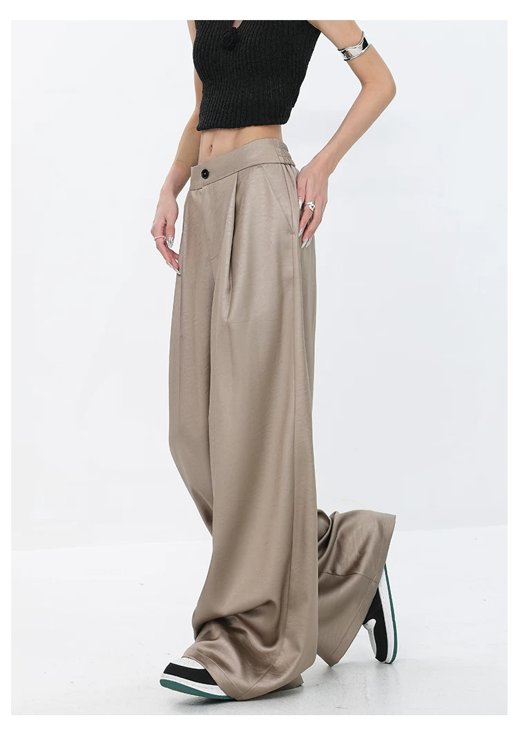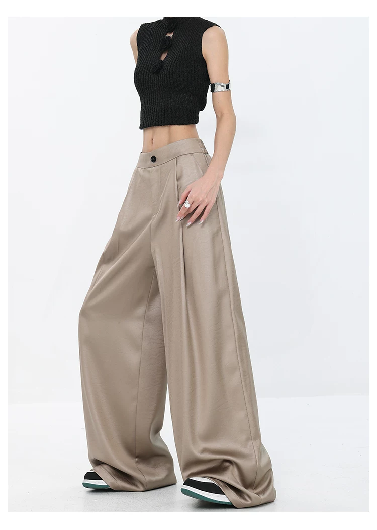KEN STUDIO quần ống rộng dáng rộng màu sâm panh mới mùa hè dành cho nữ, quần thường ngày đa năng giúp giảm béo