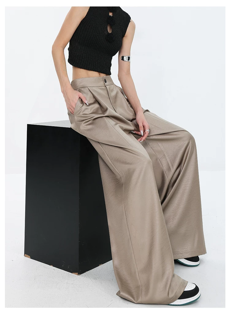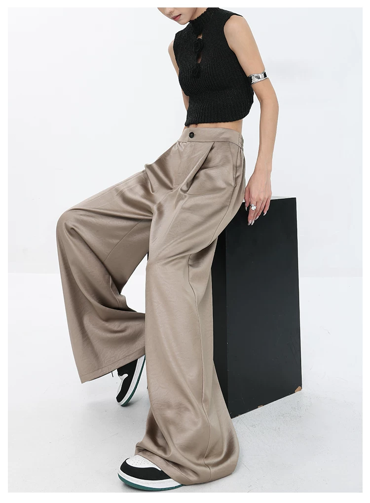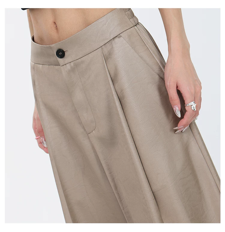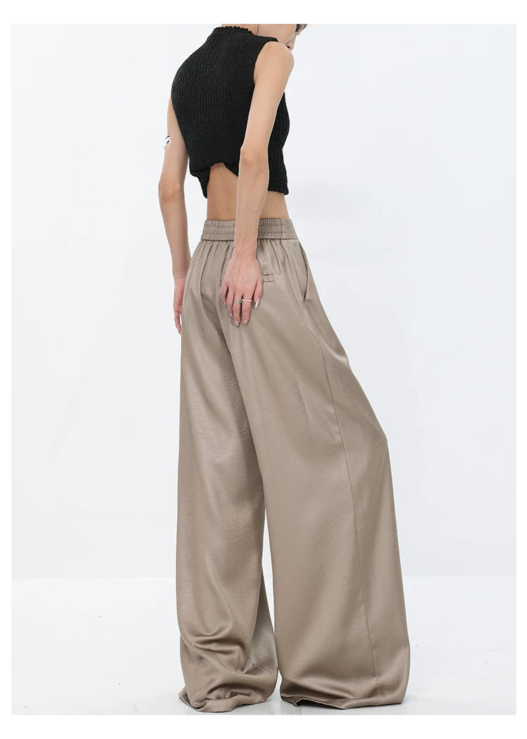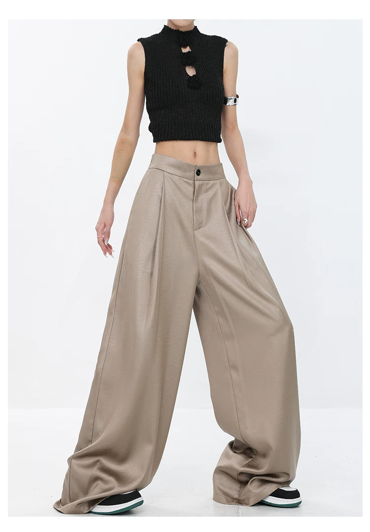 KEN STUDIO quần ống rộng dáng rộng màu sâm panh mới mùa hè dành cho nữ, quần thường ngày đa năng giúp giảm béo