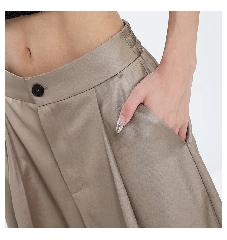 - KEN STUDIO quần ống rộng dáng rộng màu sâm panh mới mùa hè dành cho nữ, quần thường ngày đa năng giúp giảm béo