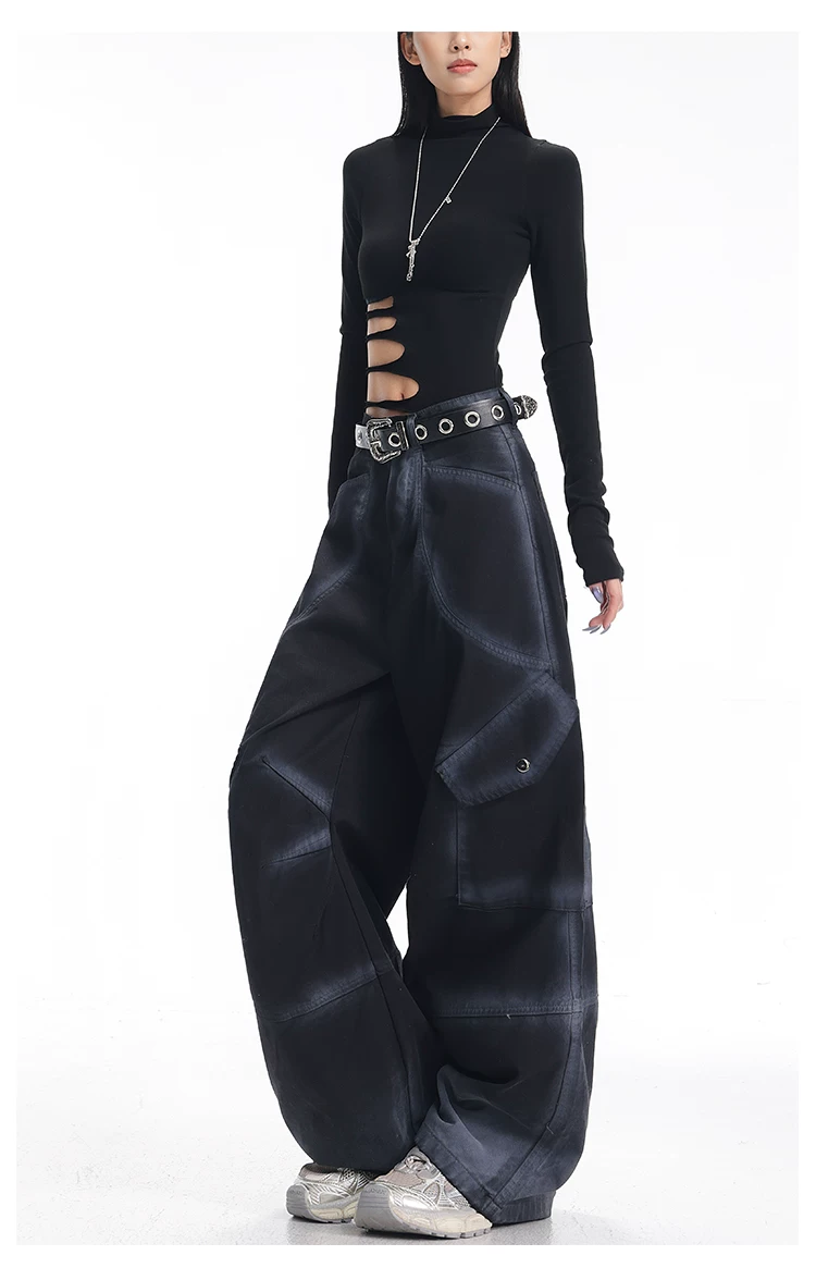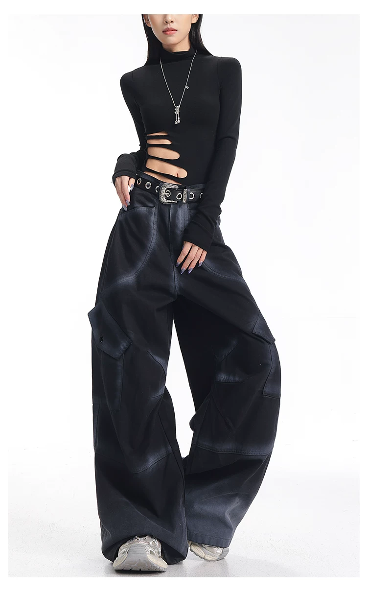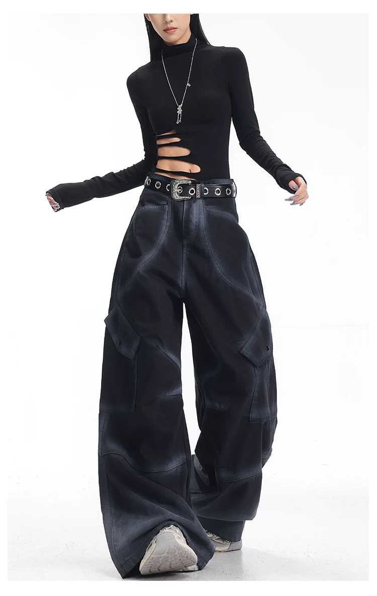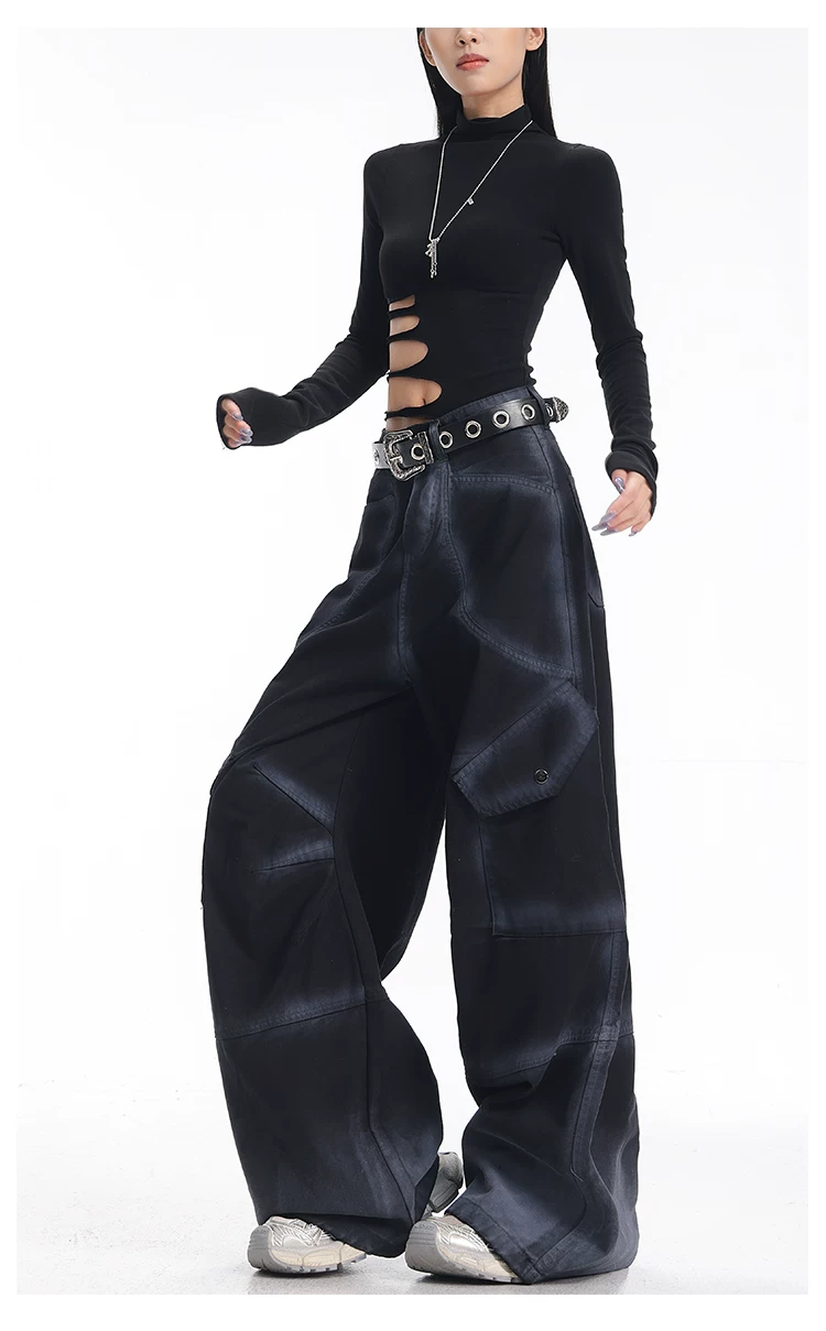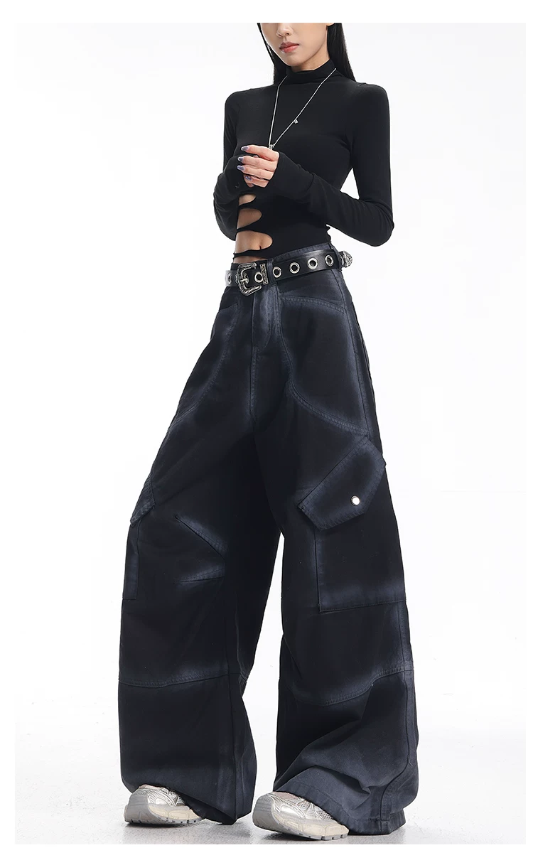 - KEN STUDIO Quần ống rộng màu đen phong cách Mỹ mới thu đông dành cho nữ với thiết kế chuyển màu Quần dài đa năng