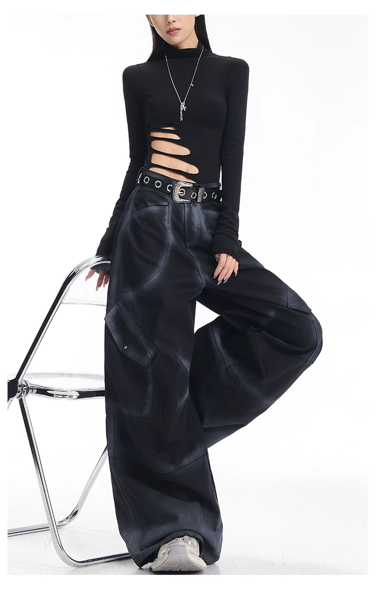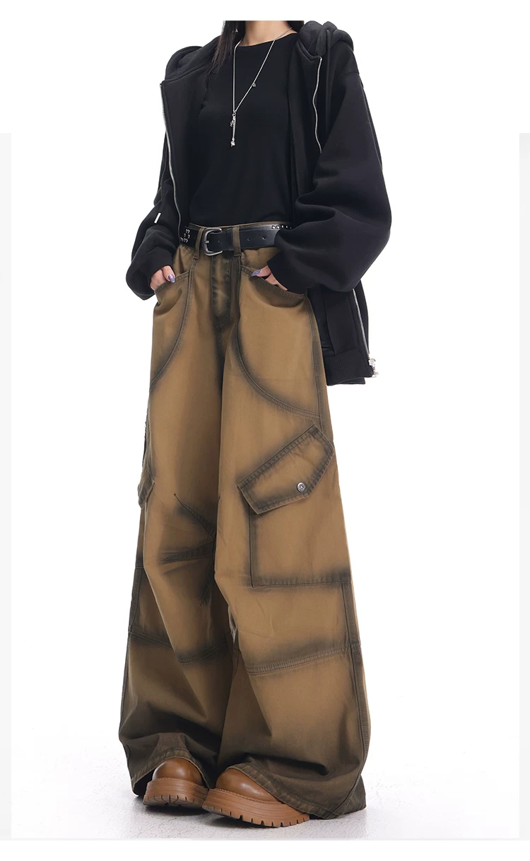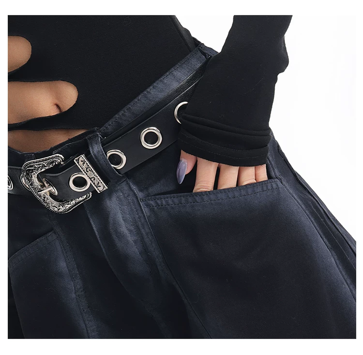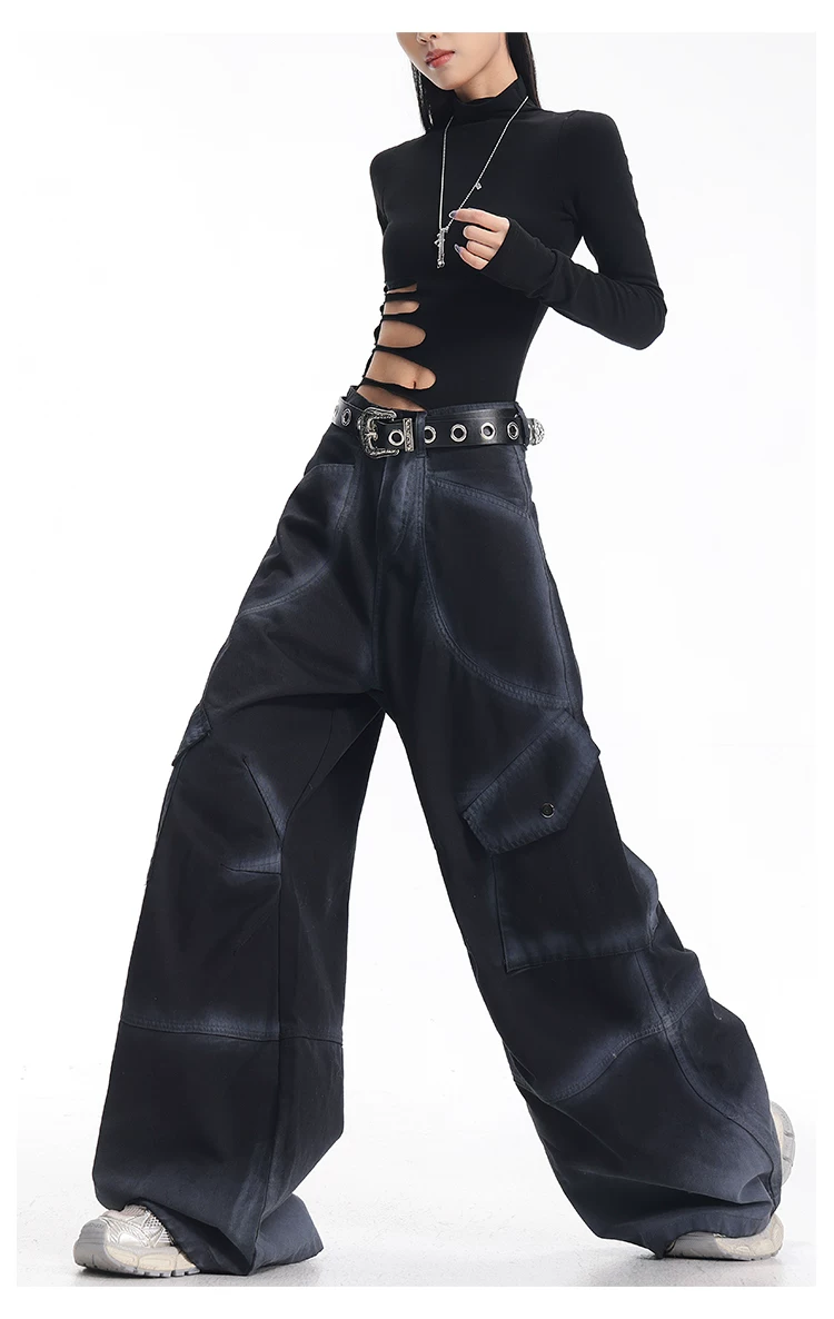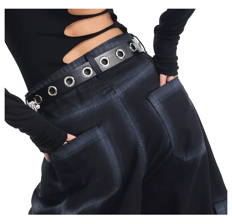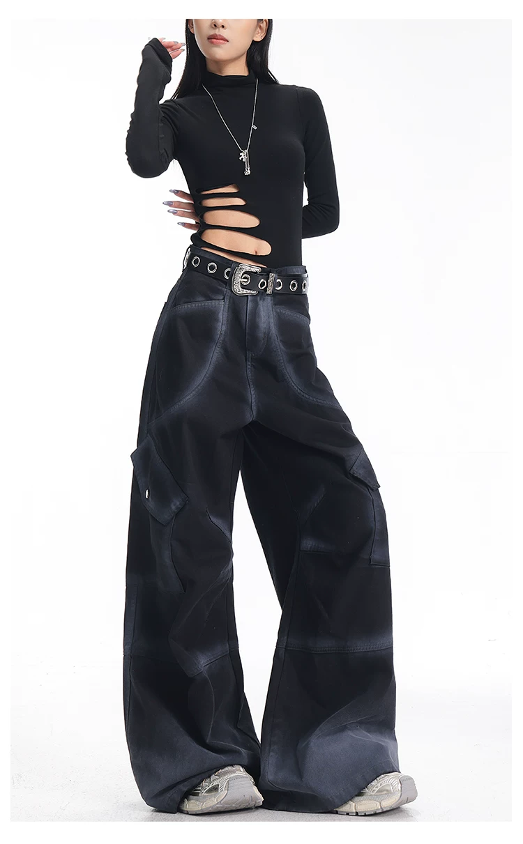 - KEN STUDIO Quần ống rộng màu đen phong cách Mỹ mới thu đông dành cho nữ với thiết kế chuyển màu Quần dài đa năng