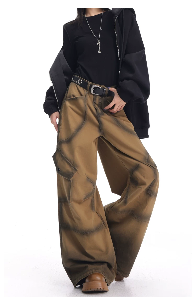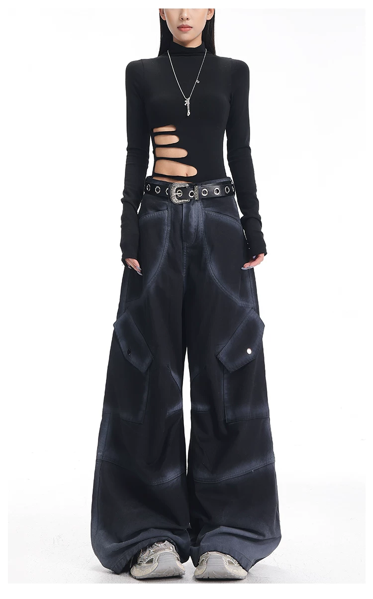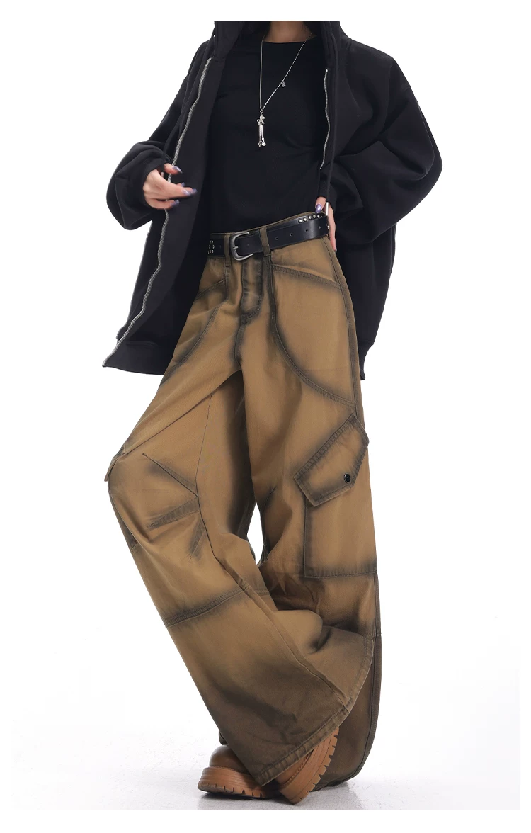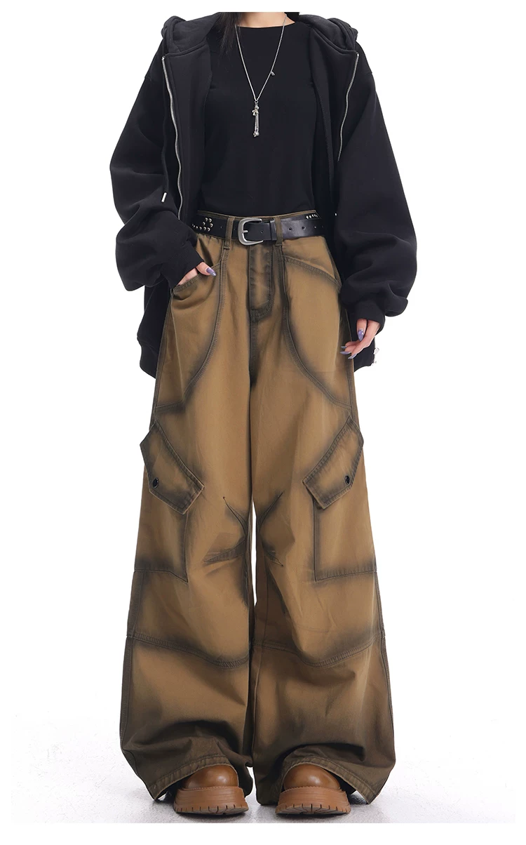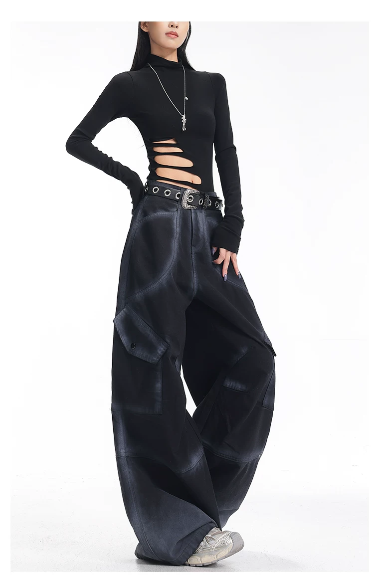 - KEN STUDIO Quần ống rộng màu đen phong cách Mỹ mới thu đông dành cho nữ với thiết kế chuyển màu Quần dài đa năng