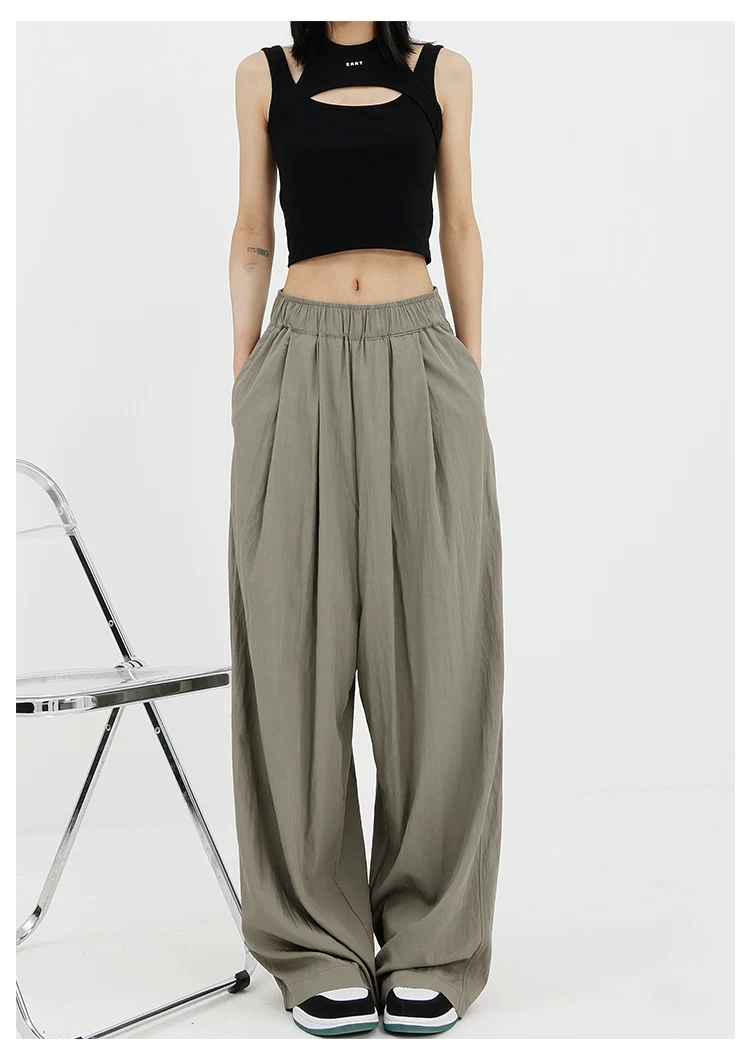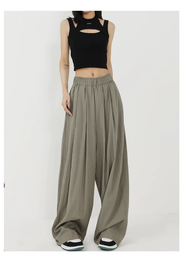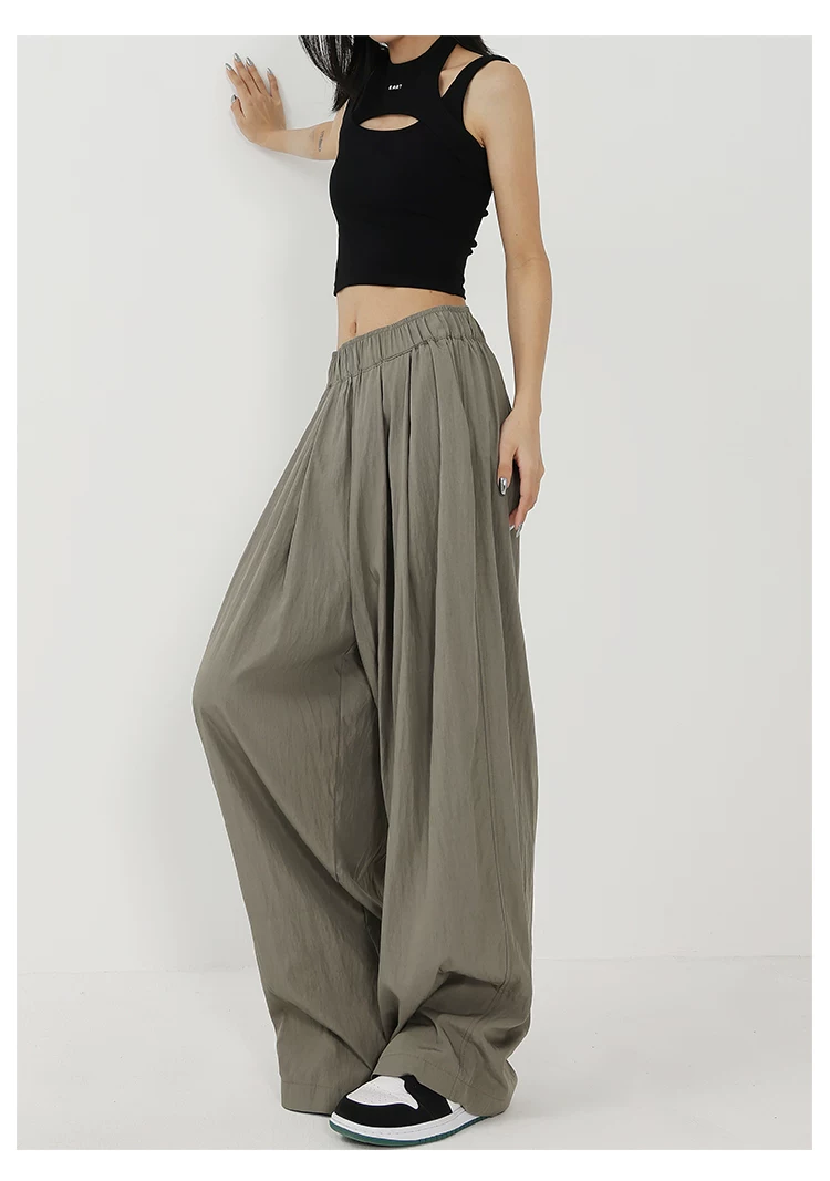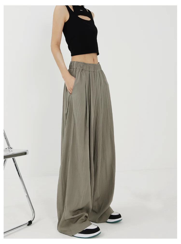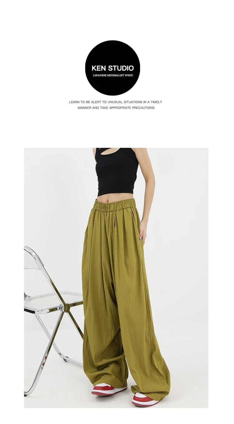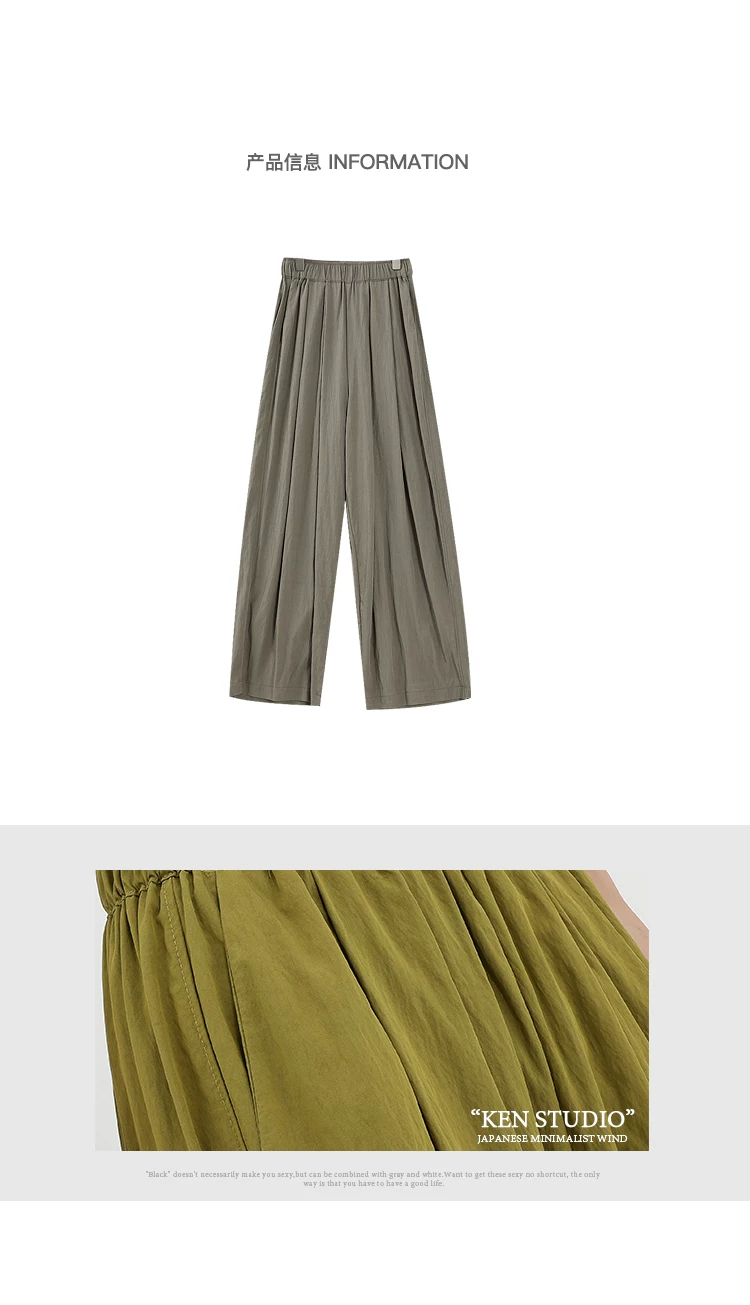 - KEN STUDIO quần ống rộng màu xám mới mùa hè dành cho nữ, quần Yamamoto dài xếp ly, dáng rộng, đa năng, dài đến sàn