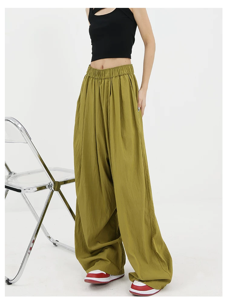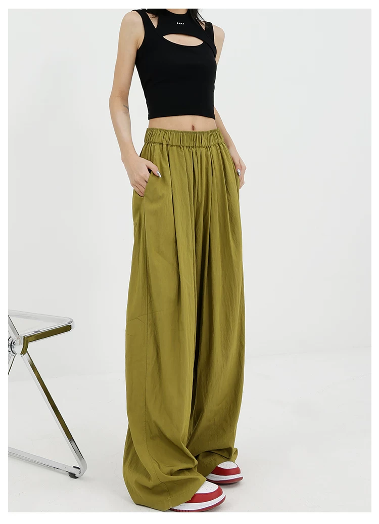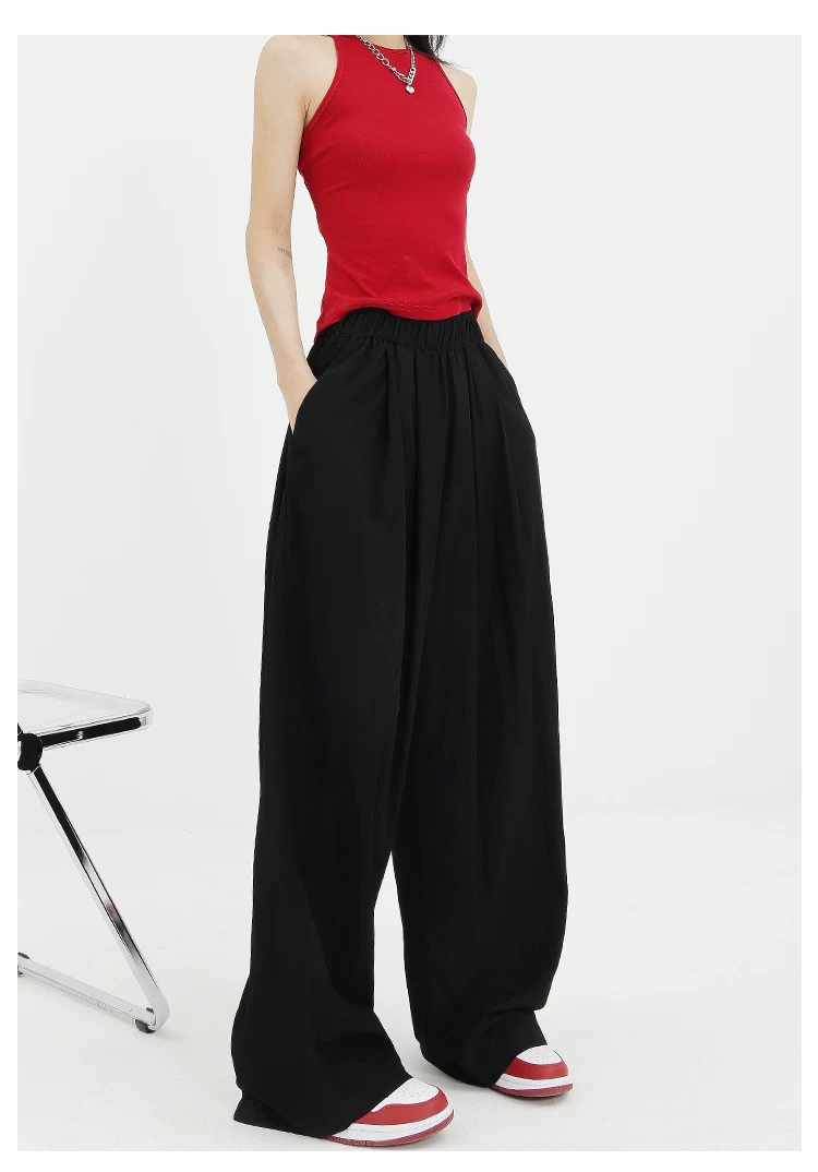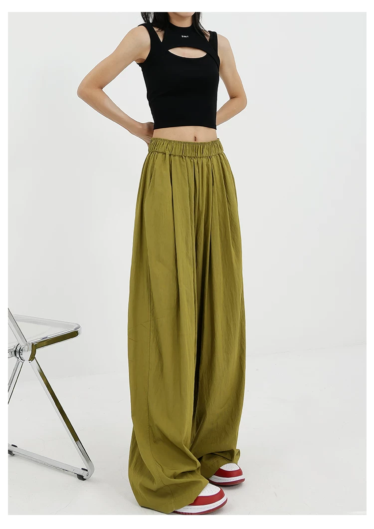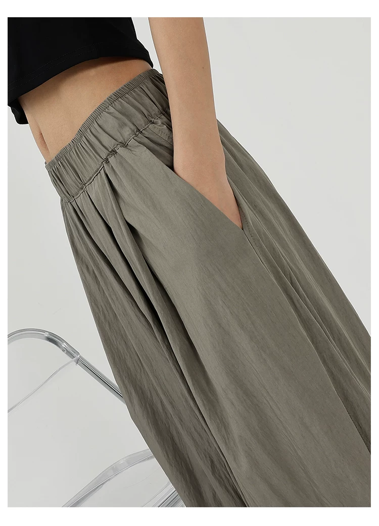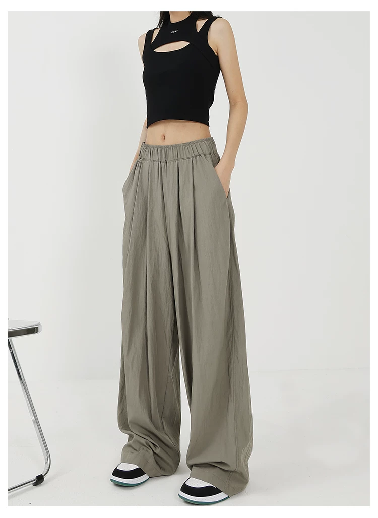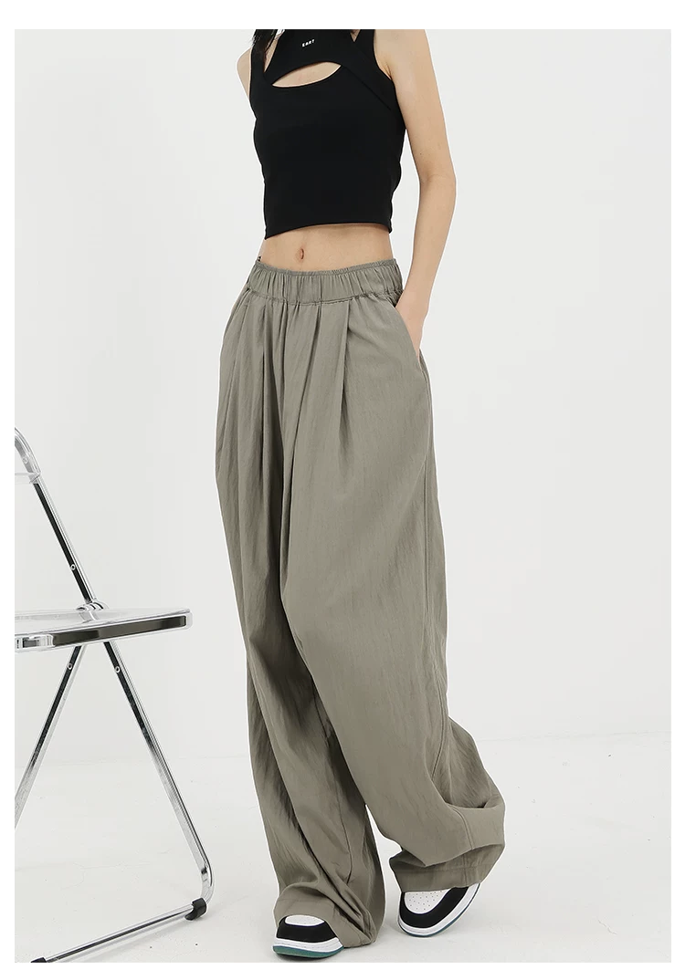 - KEN STUDIO quần ống rộng màu xám mới mùa hè dành cho nữ, quần Yamamoto dài xếp ly, dáng rộng, đa năng, dài đến sàn