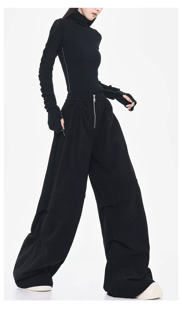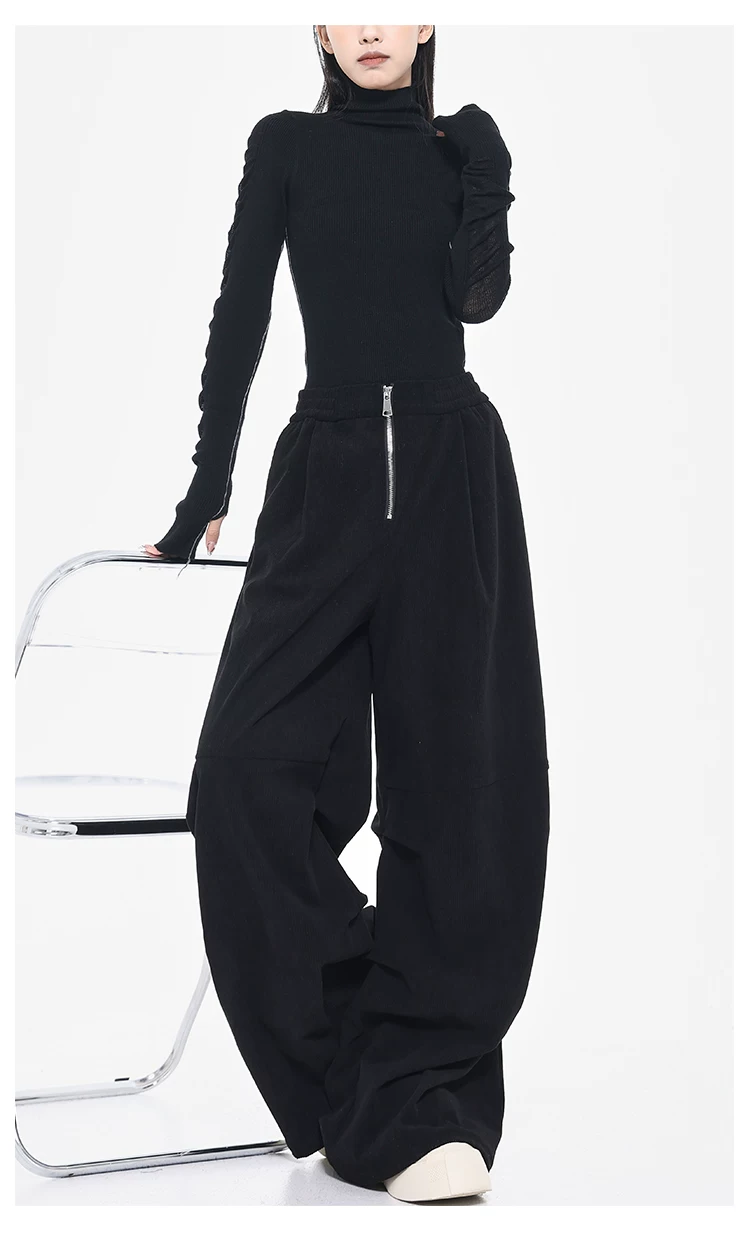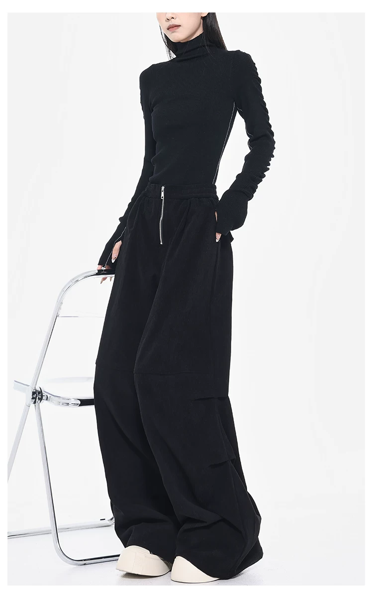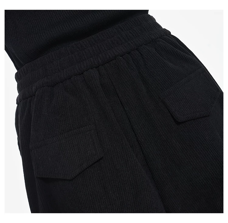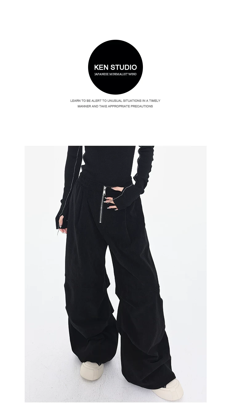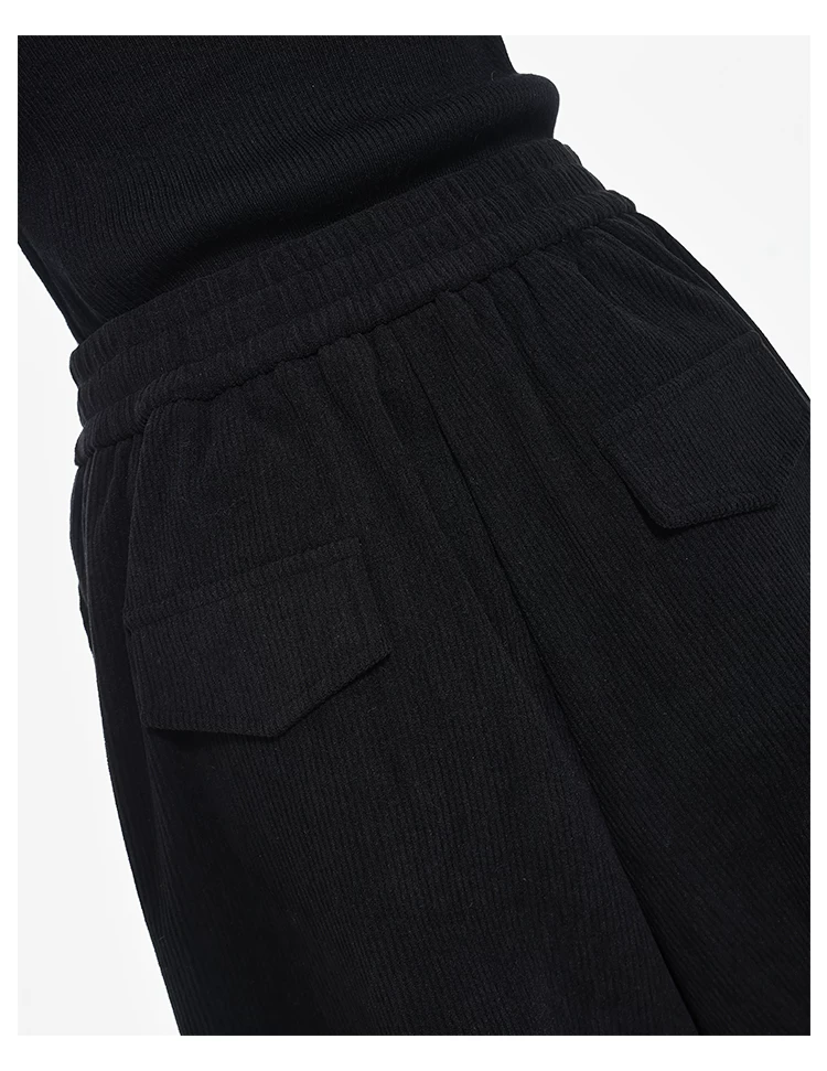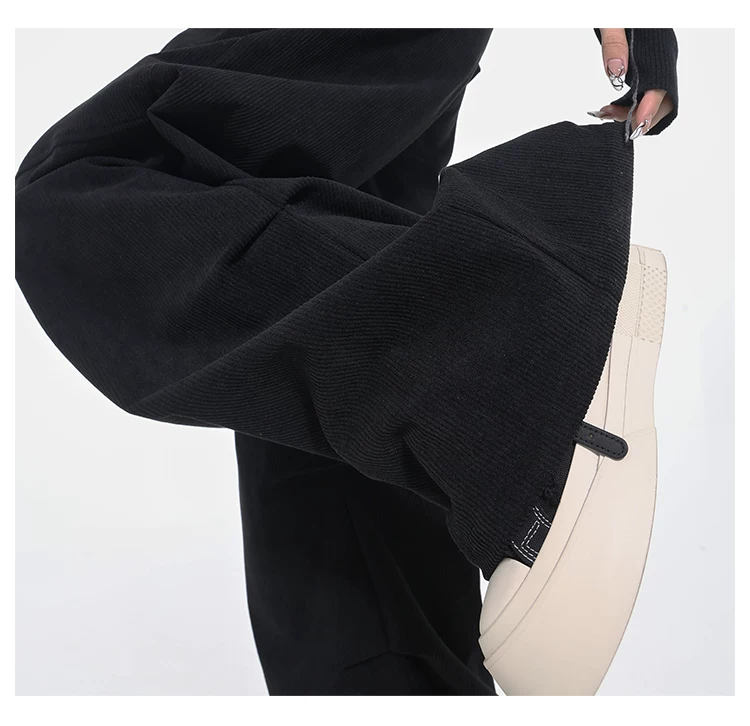 - KEN STUDIO Quần ống rộng vải nhung dày màu đen thu đông mới dành cho nữ, quần cạp cao, giảm béo, quần rộng rãi thường ngày