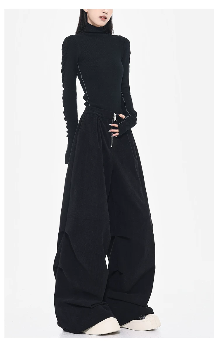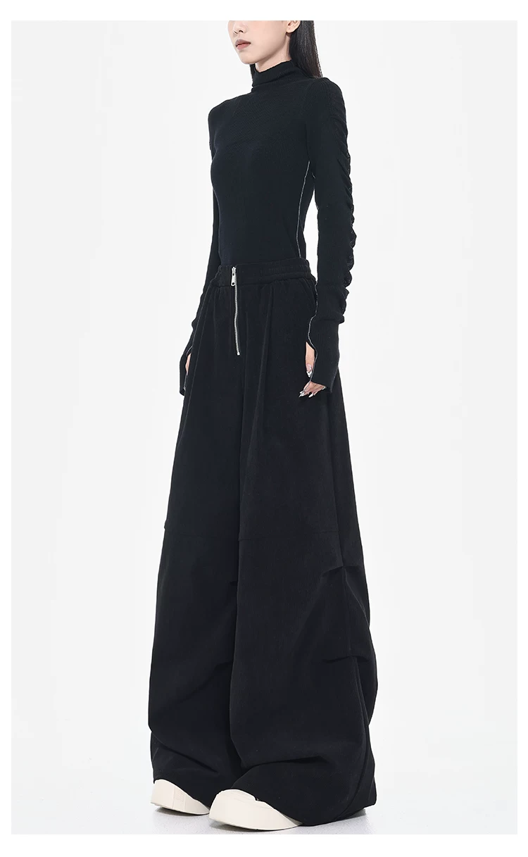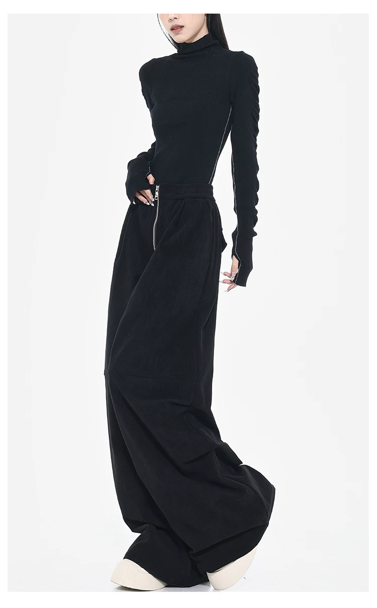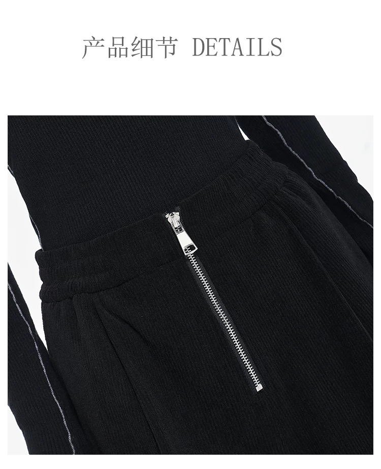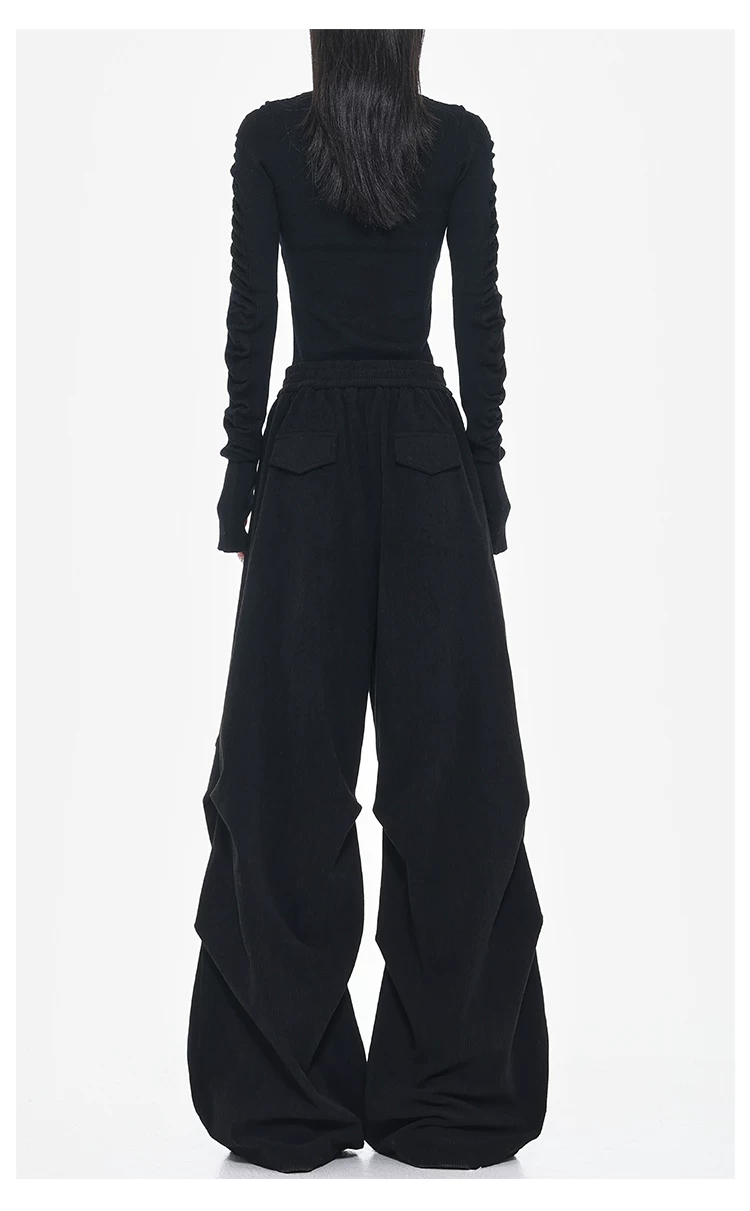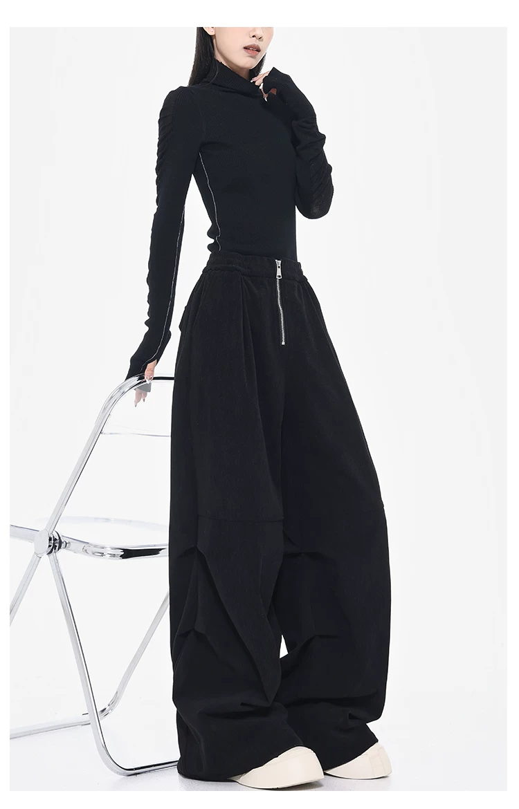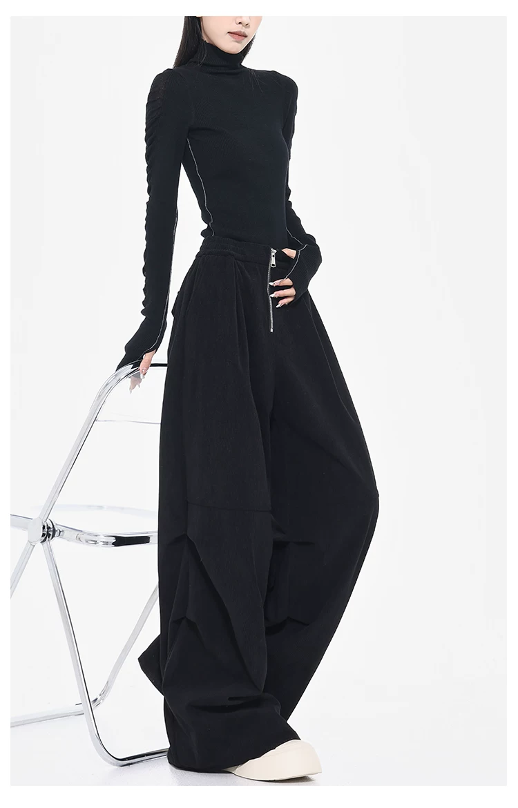 - KEN STUDIO Quần ống rộng vải nhung dày màu đen thu đông mới dành cho nữ, quần cạp cao, giảm béo, quần rộng rãi thường ngày