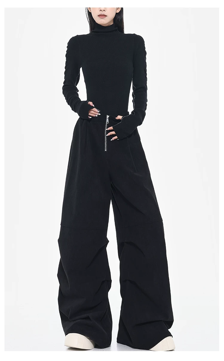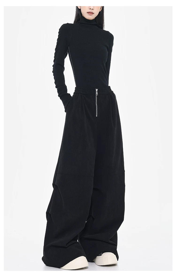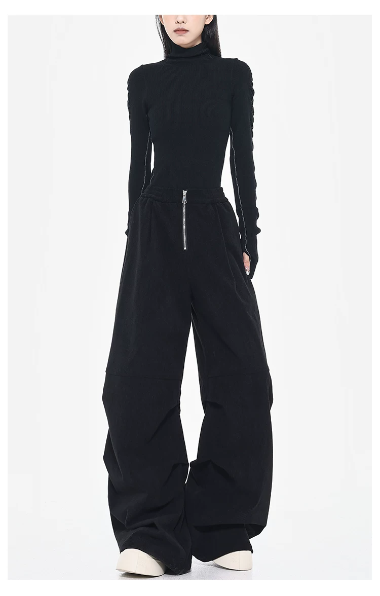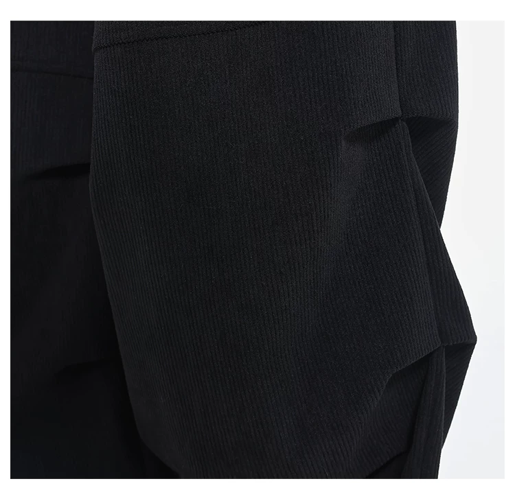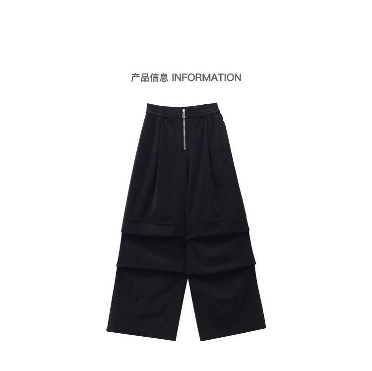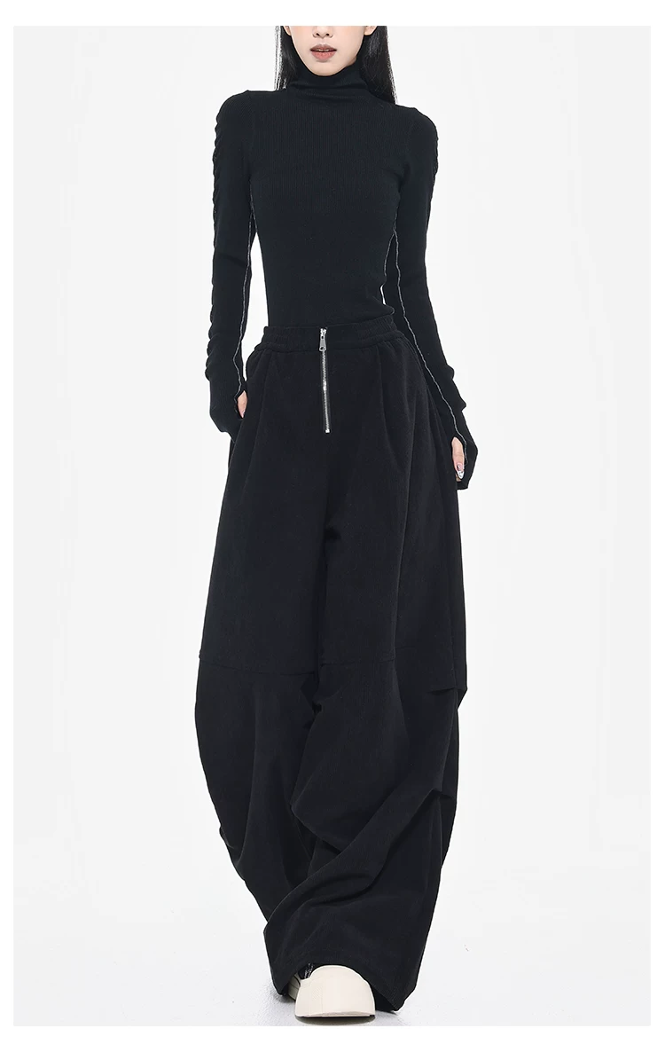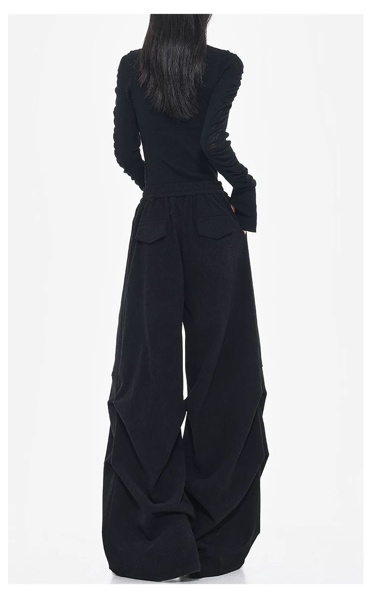 - KEN STUDIO Quần ống rộng vải nhung dày màu đen thu đông mới dành cho nữ, quần cạp cao, giảm béo, quần rộng rãi thường ngày