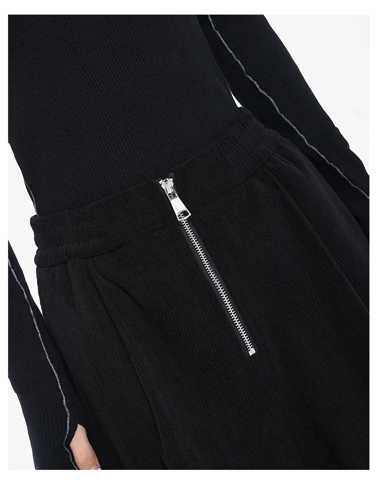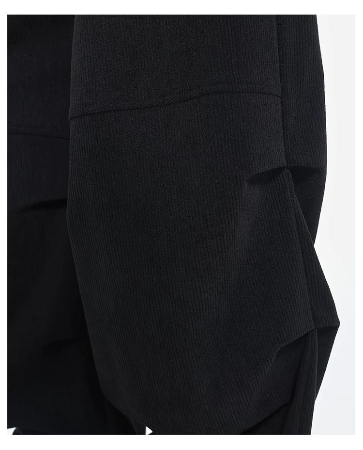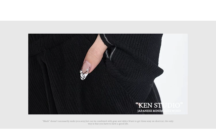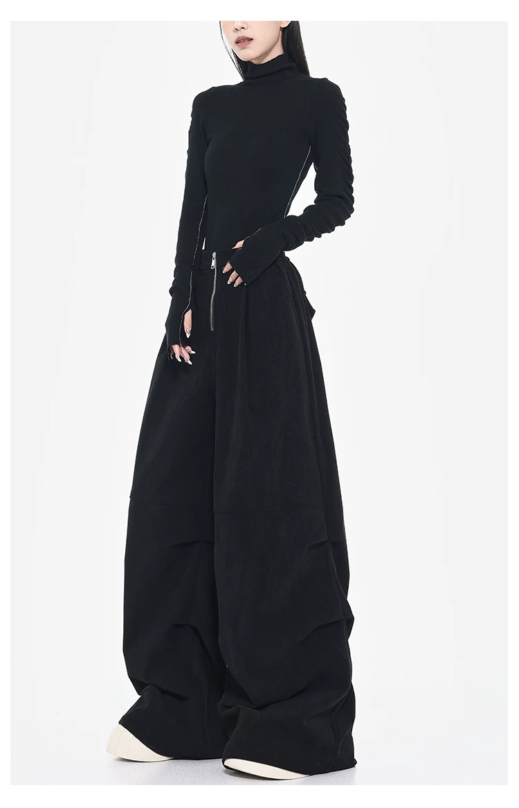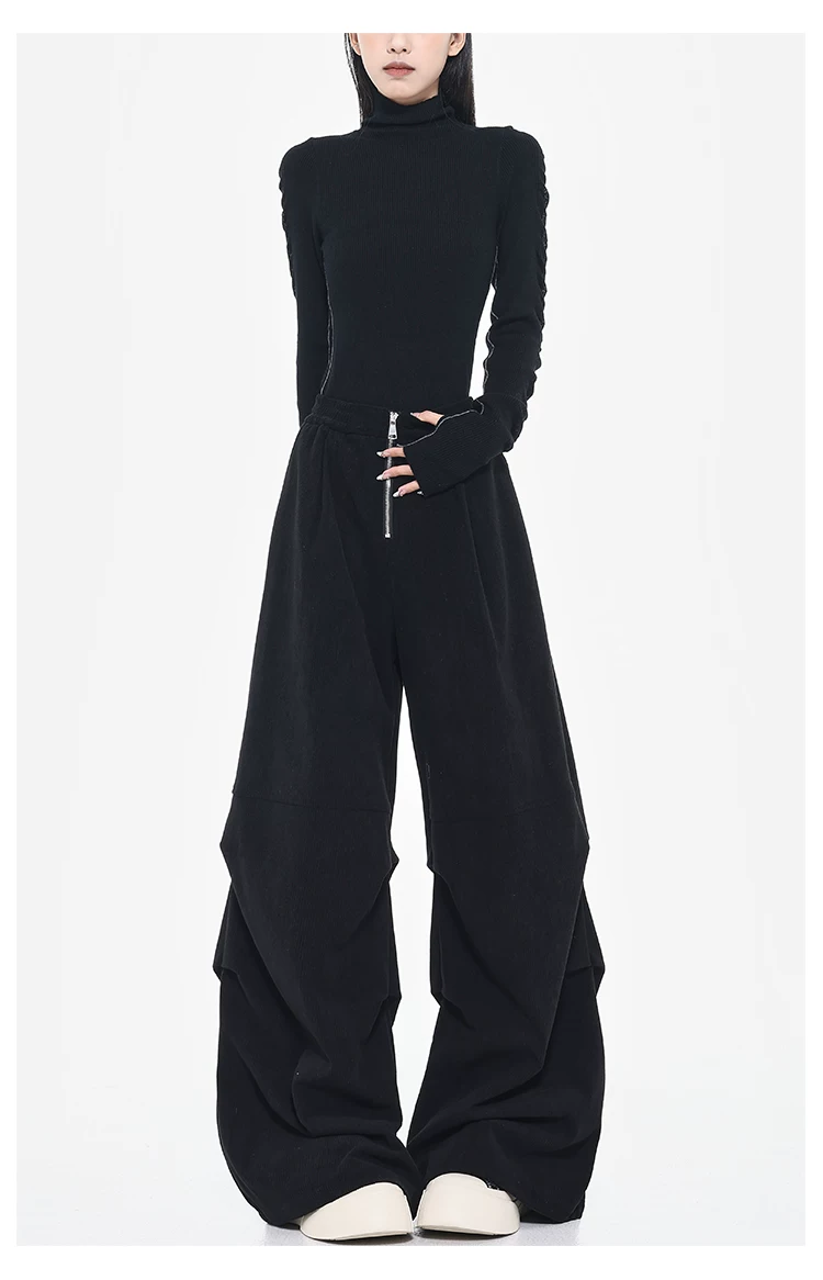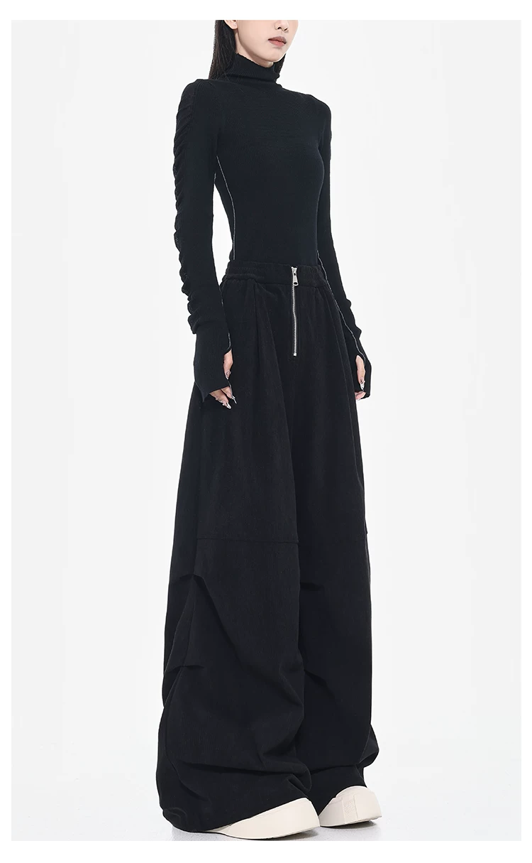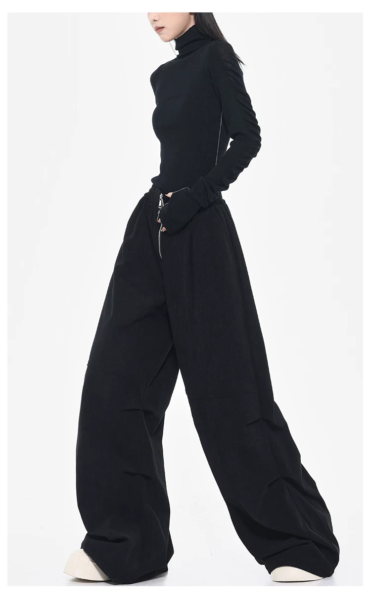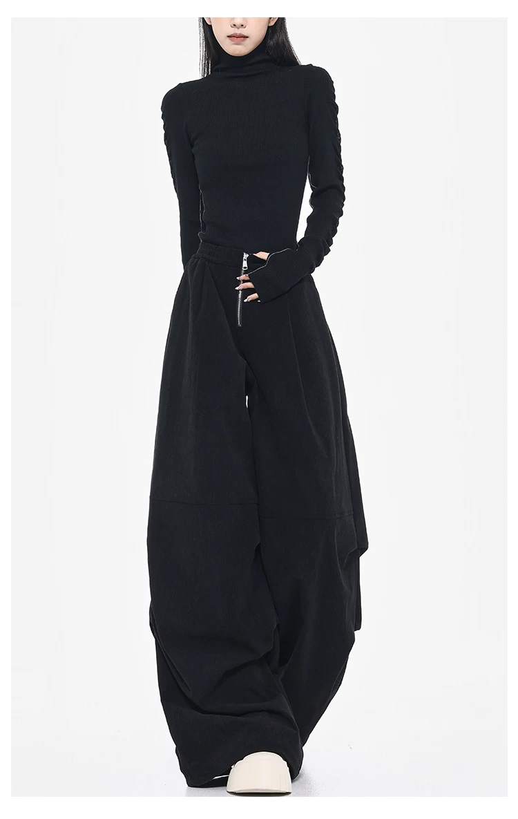 - KEN STUDIO Quần ống rộng vải nhung dày màu đen thu đông mới dành cho nữ, quần cạp cao, giảm béo, quần rộng rãi thường ngày