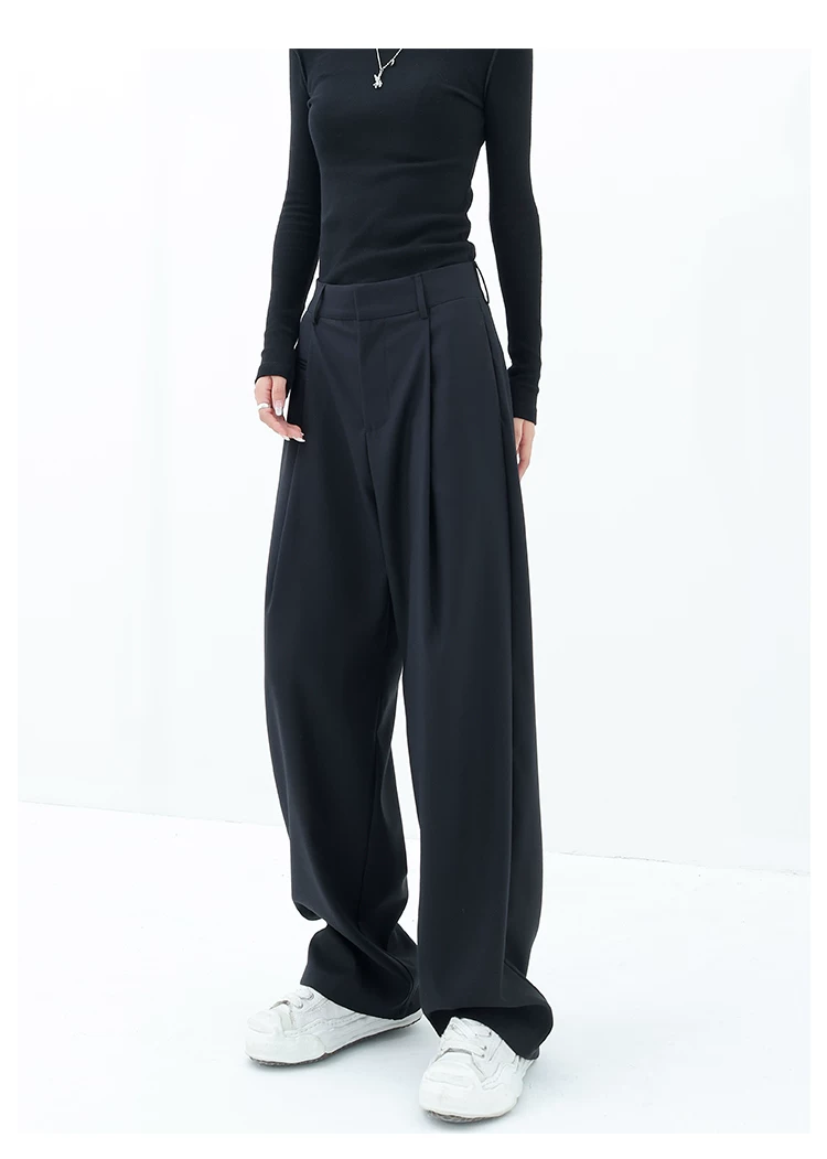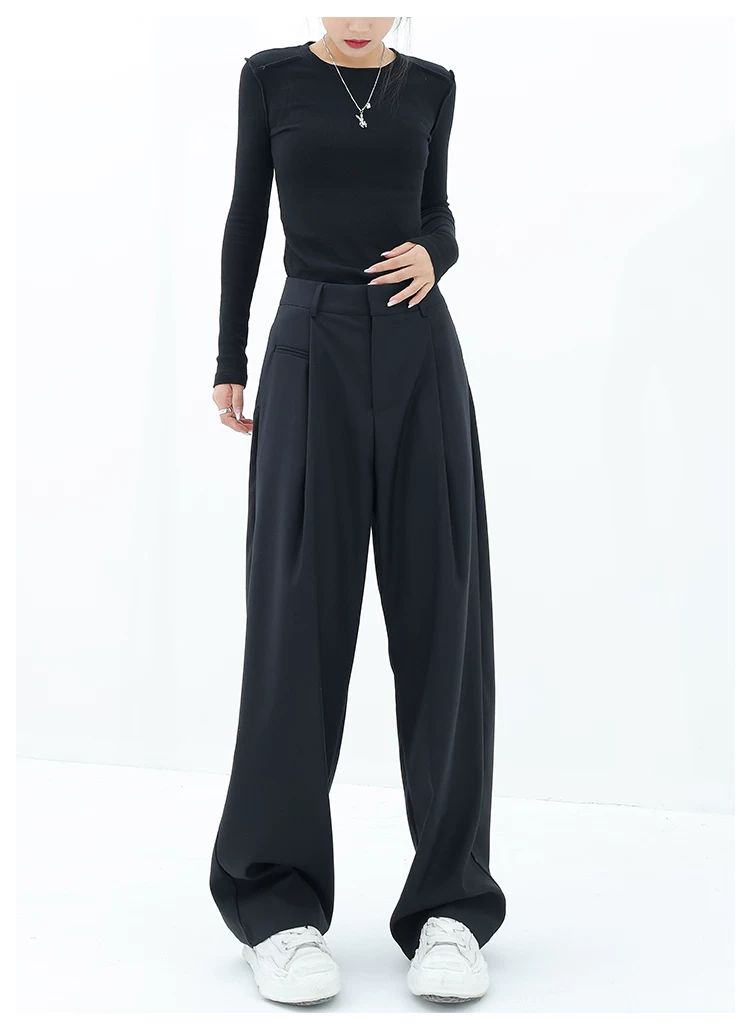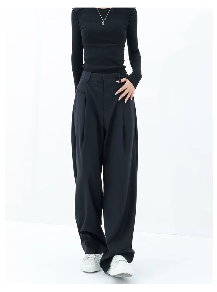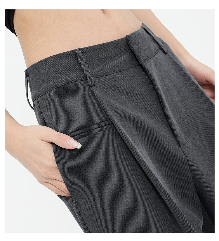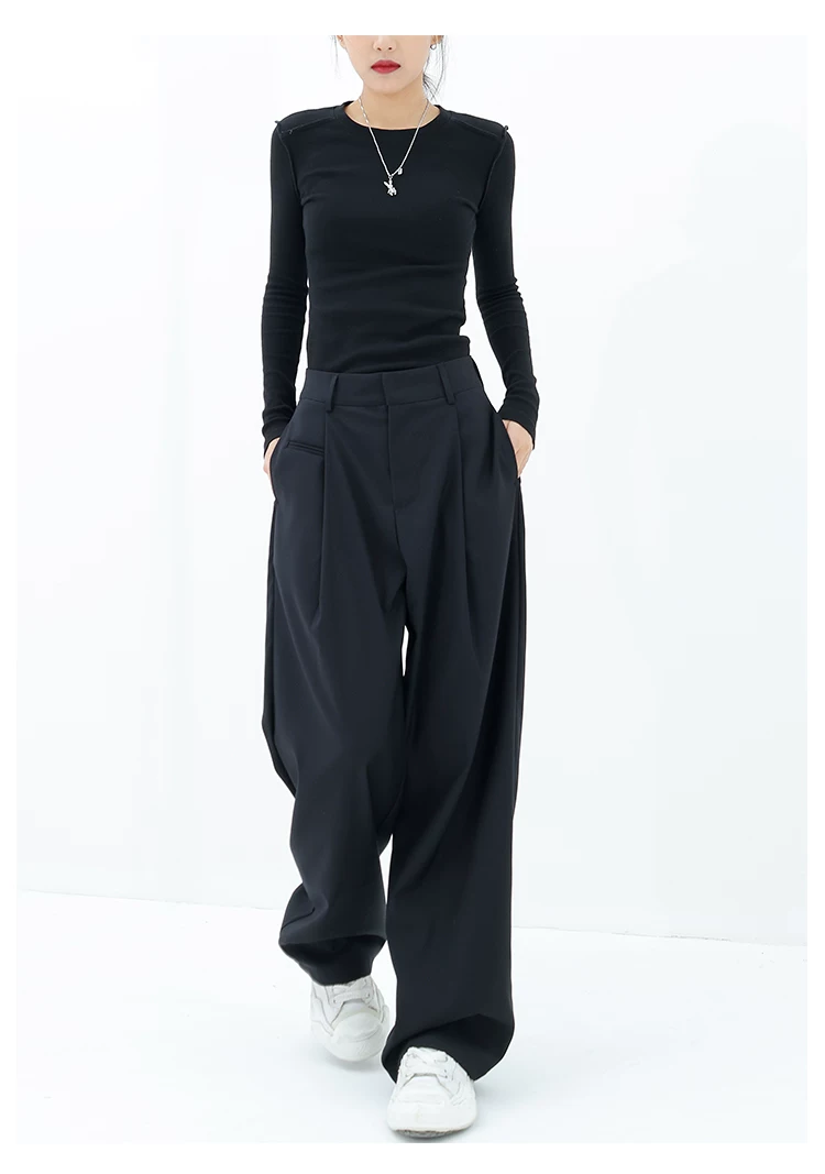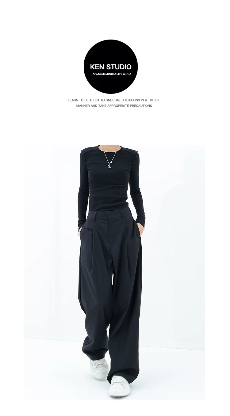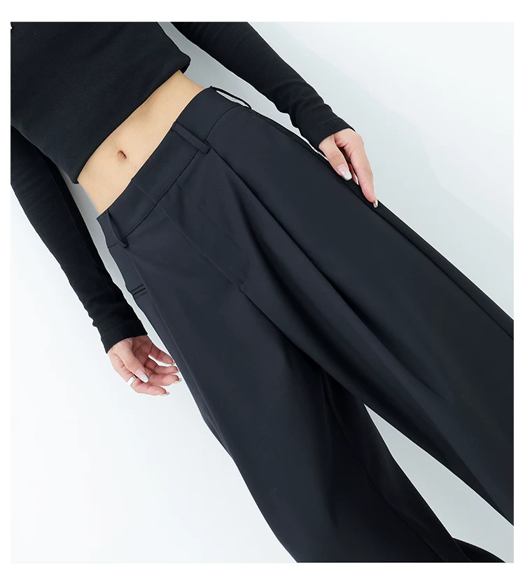 - KEN STUDIO quần tây dày màu đen thu đông dành cho nữ, quần dáng suông, quần thường ngày, quần ống thẳng, quần công sở.