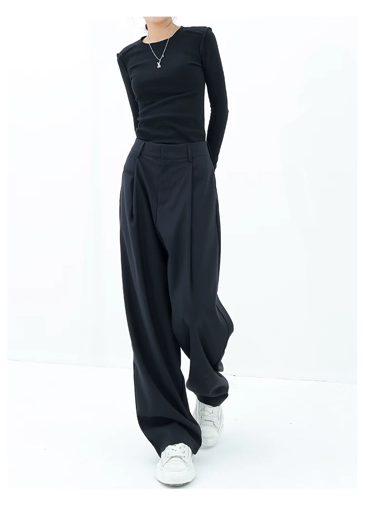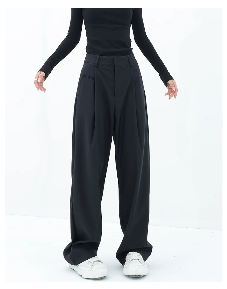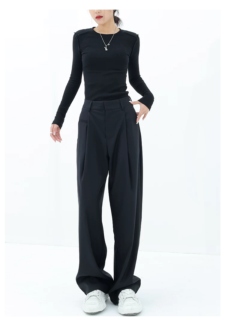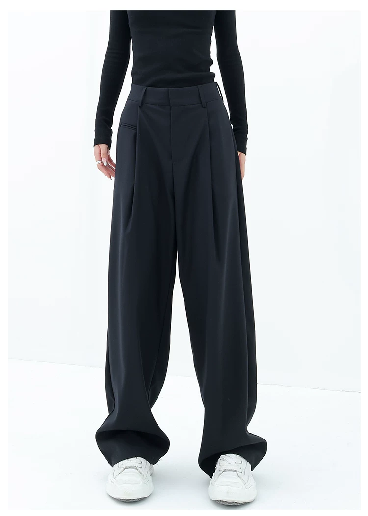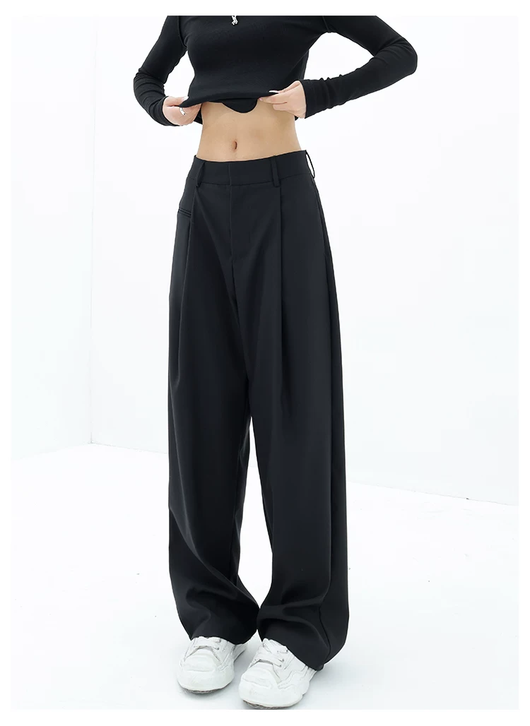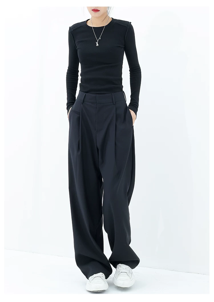 - KEN STUDIO quần tây dày màu đen thu đông dành cho nữ, quần dáng suông, quần thường ngày, quần ống thẳng, quần công sở.
