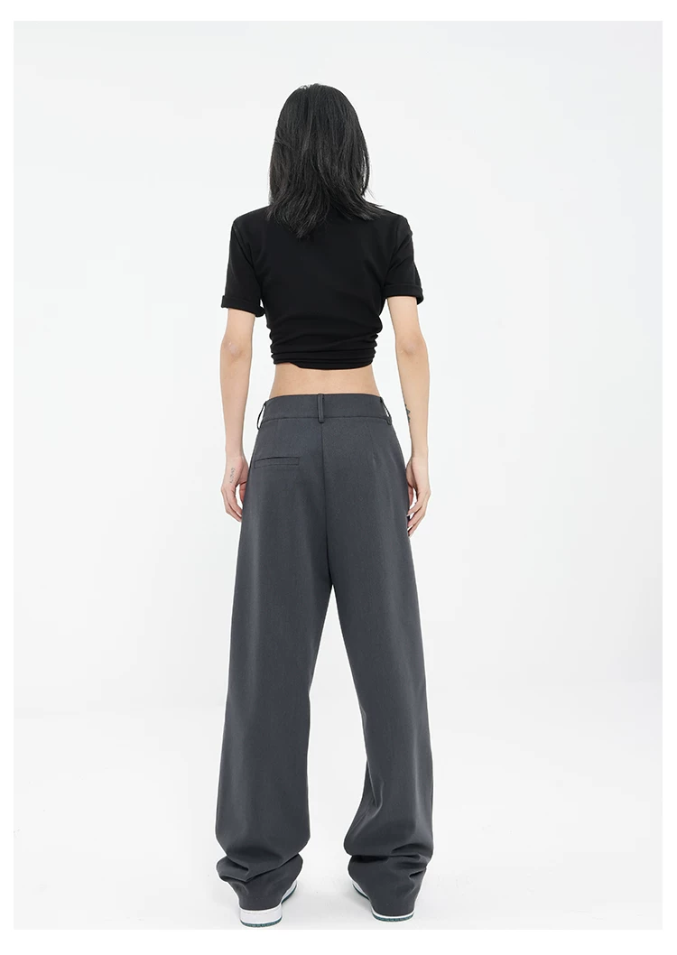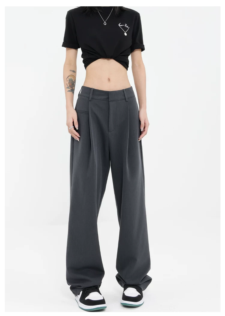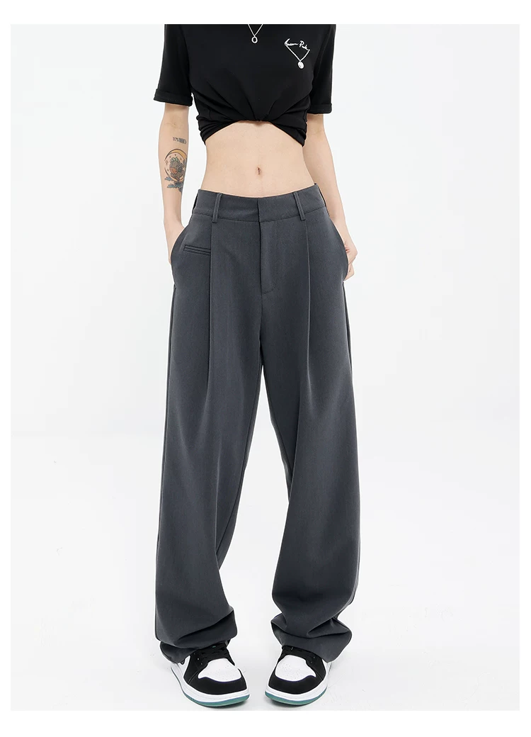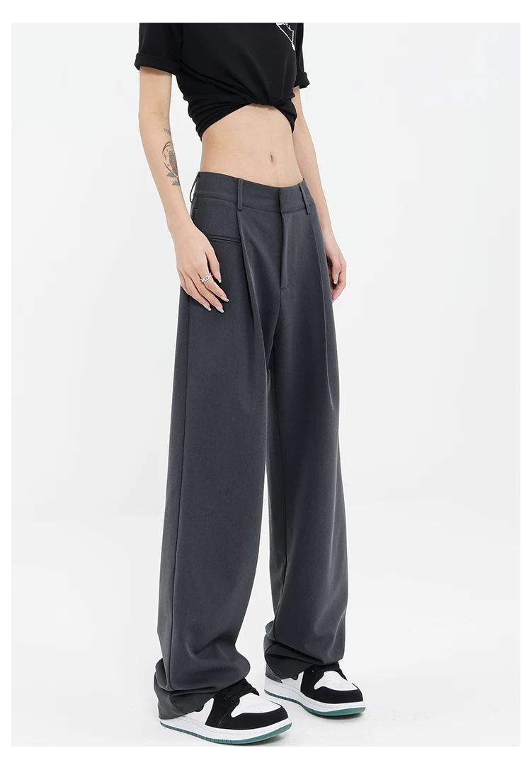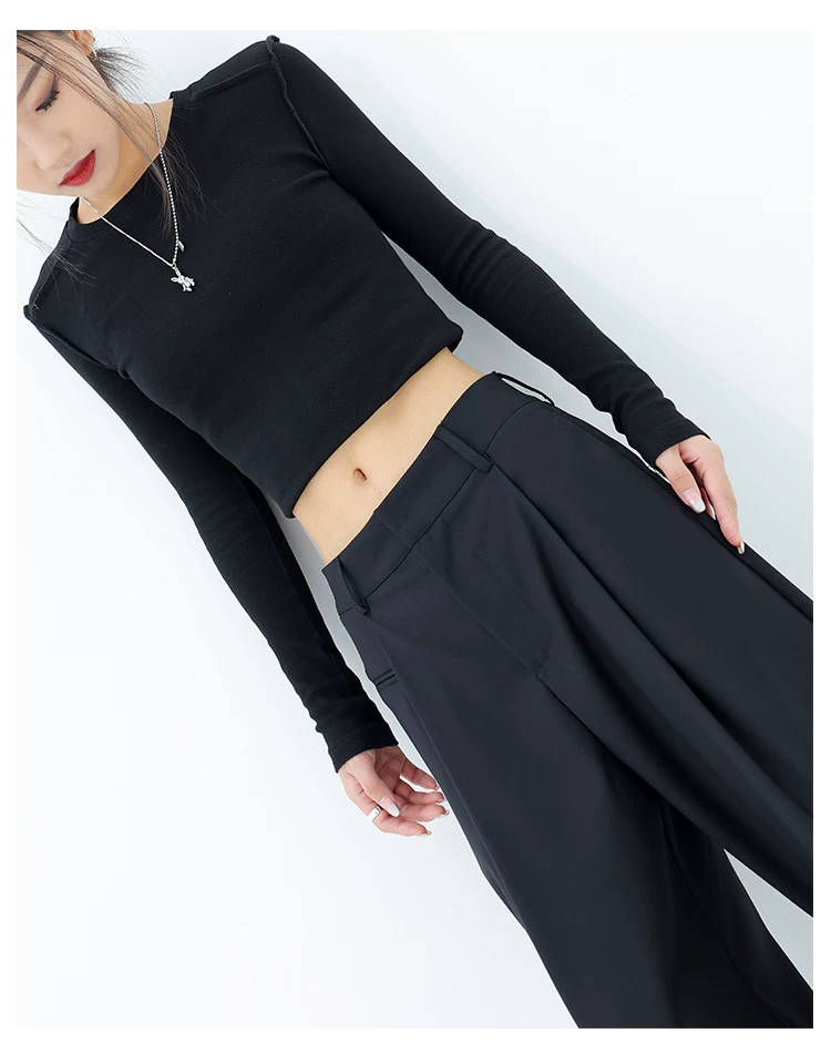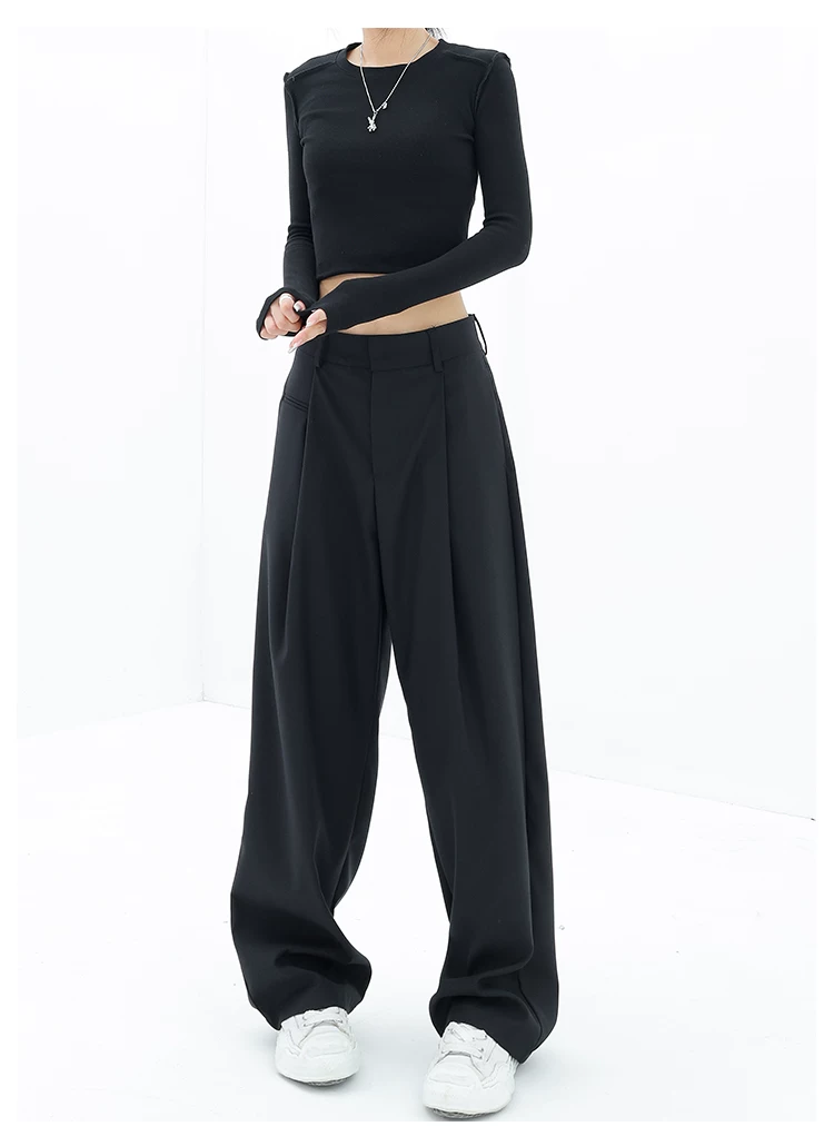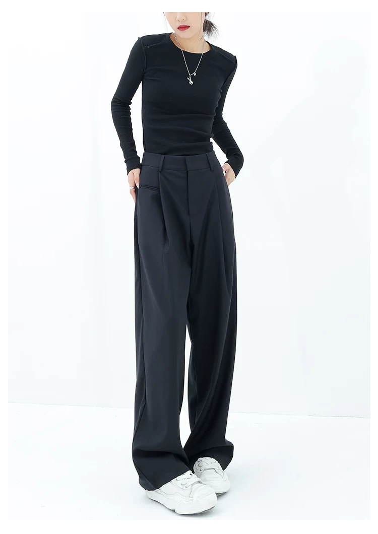 - KEN STUDIO quần tây dày màu đen thu đông dành cho nữ, quần dáng suông, quần thường ngày, quần ống thẳng, quần công sở.